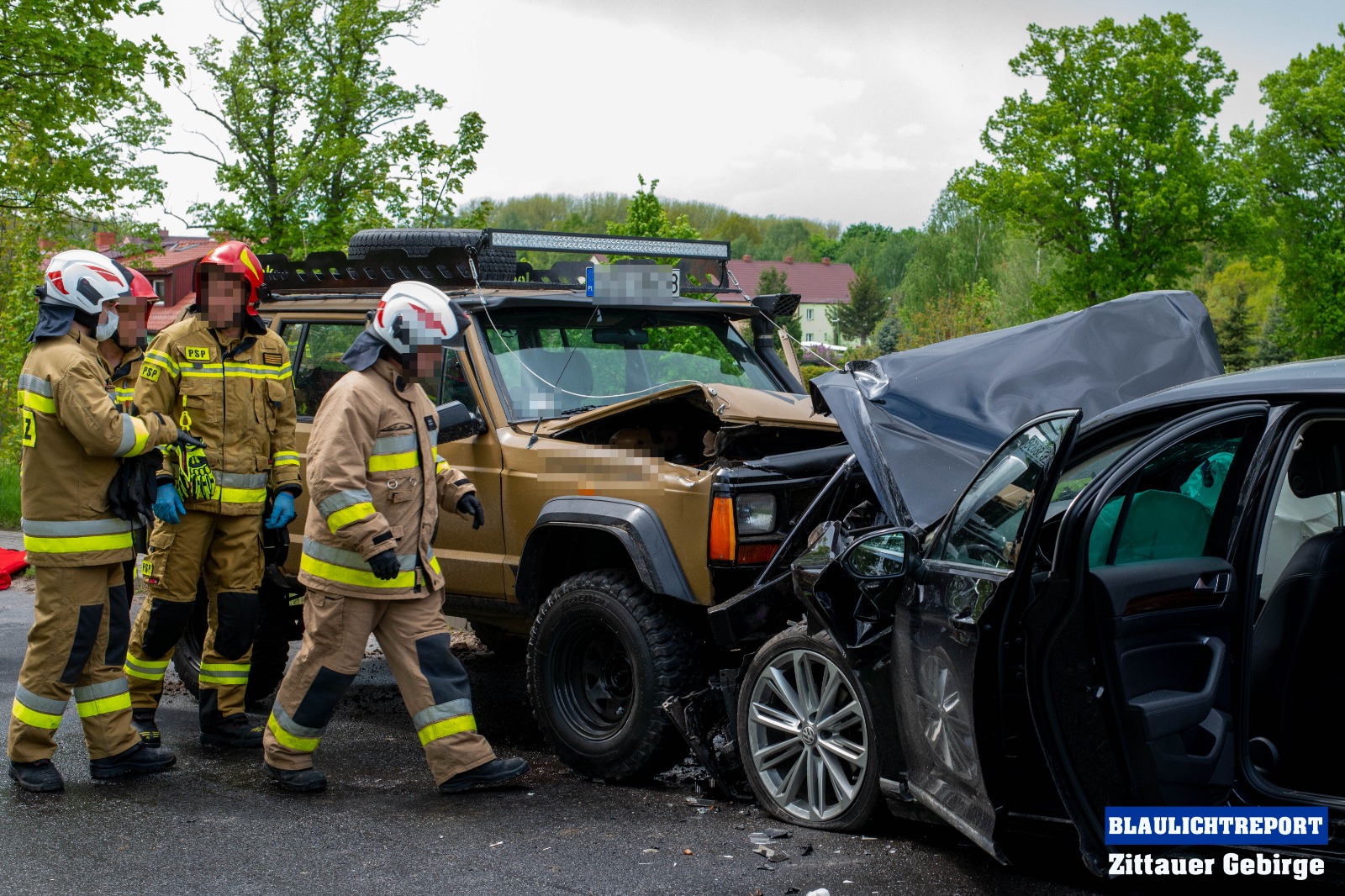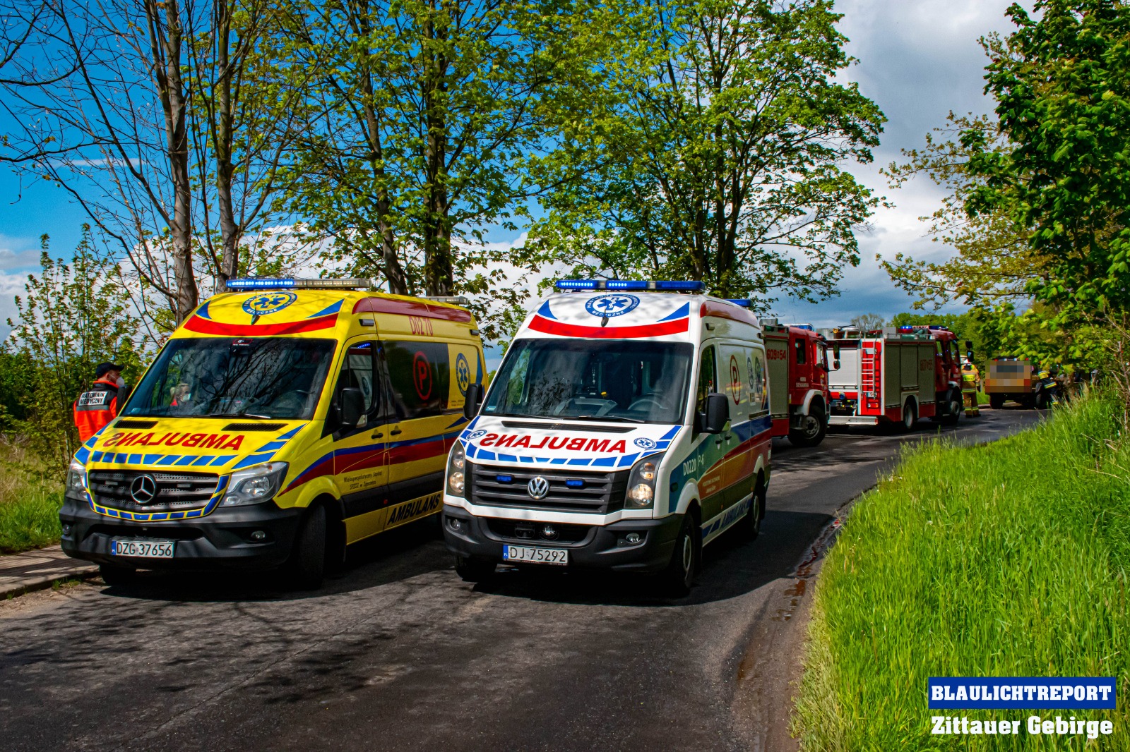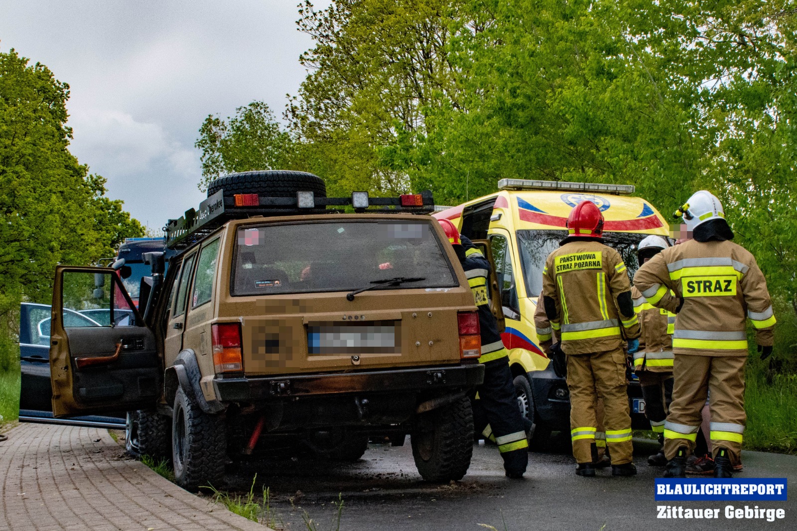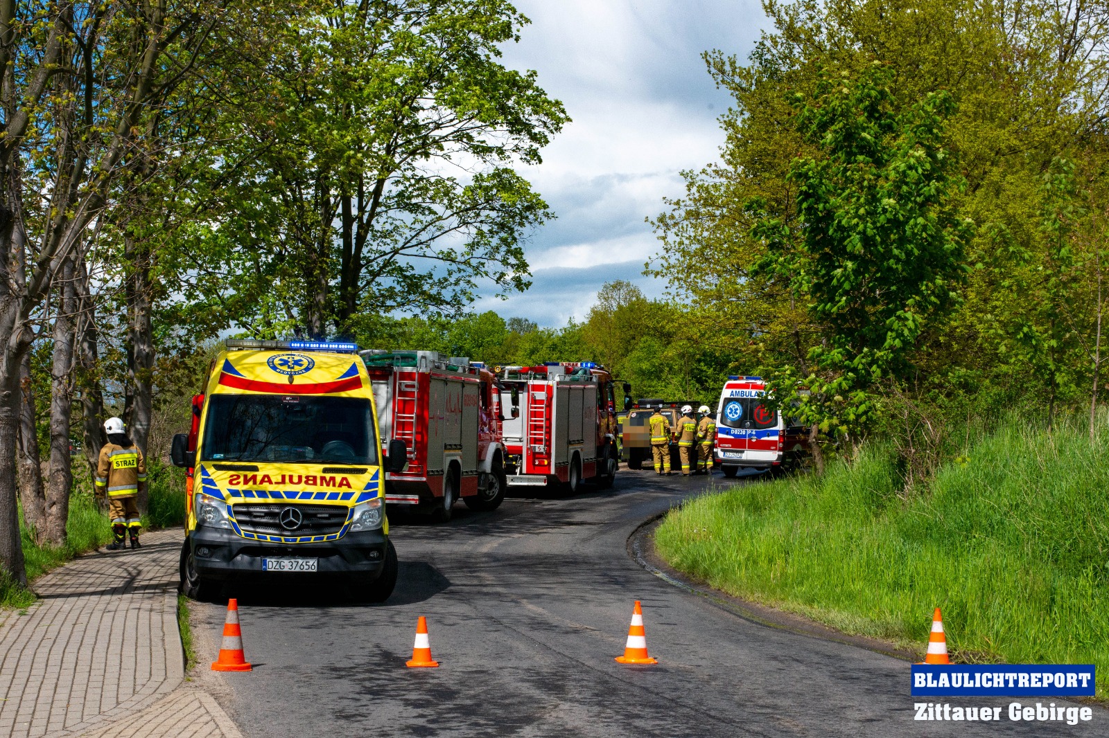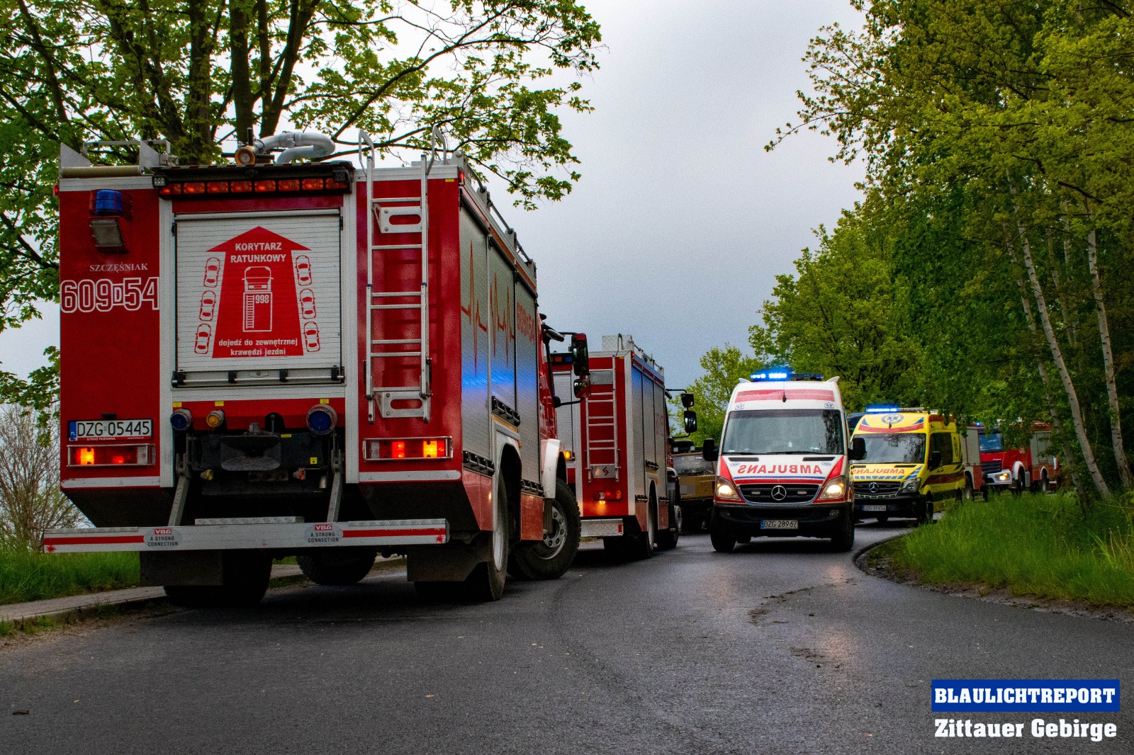 Am Sonntagnachmittag ereignete sich auf der Ortsverbindungsstraße zwischen Porajów (PL) und Sieniawka (PL), nahe der deutschen Grenze, ein Verkehrsunfall mit mehreren Verletzten Personen. Aus bislang ungeklärter Ursache geriet ein Jeep auf die Gegenfahrbahn und stieß dort mit einem entgegenkommenden VW Passat frontal zusammen. Ersten Erkenntnissen nach wurden drei Personen durch den Zusammenstoß verletzt. Rettungskräfte fuhren die Verletzten in nahegelegene Krankenhäuser. Nachdem beide Pkw von Abschleppfahrzeugen abtransportiert wurden, wurde die Straße gereinigt und im Anschluss wieder freigegeben. Die Vollsperrung der Ortsverbindungsstraße zog sich bis in die späten Nachmittagsstunden hin.