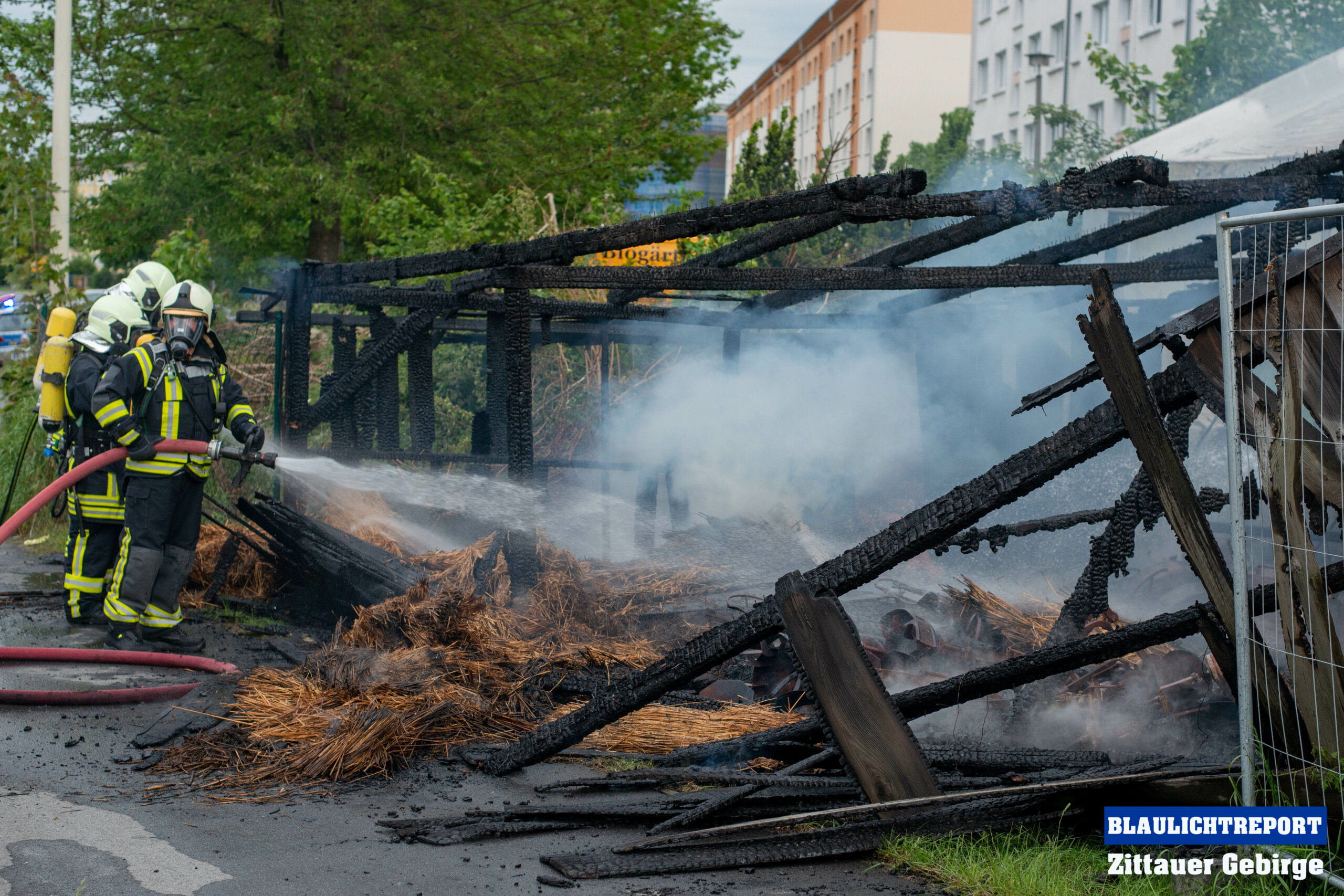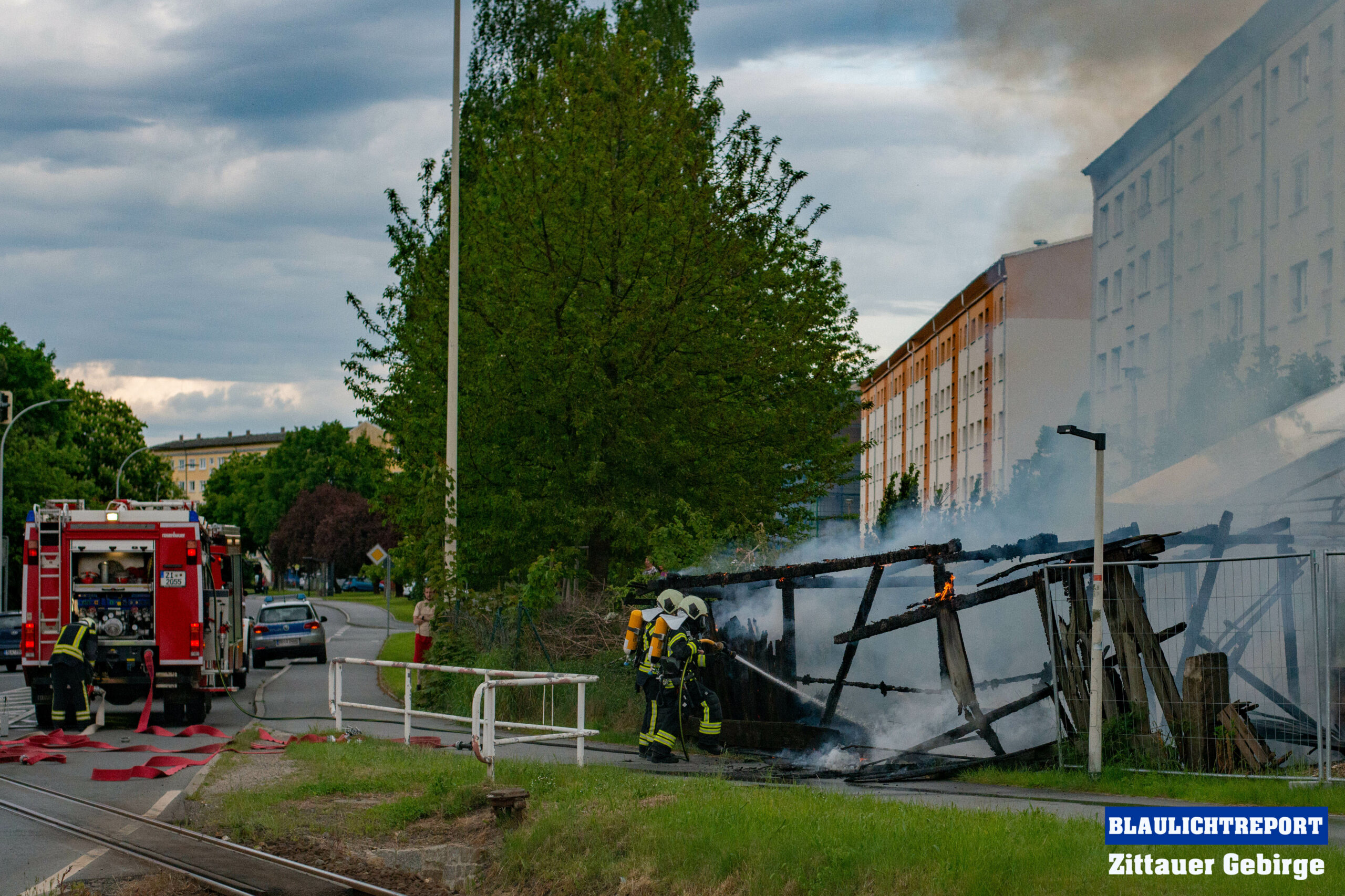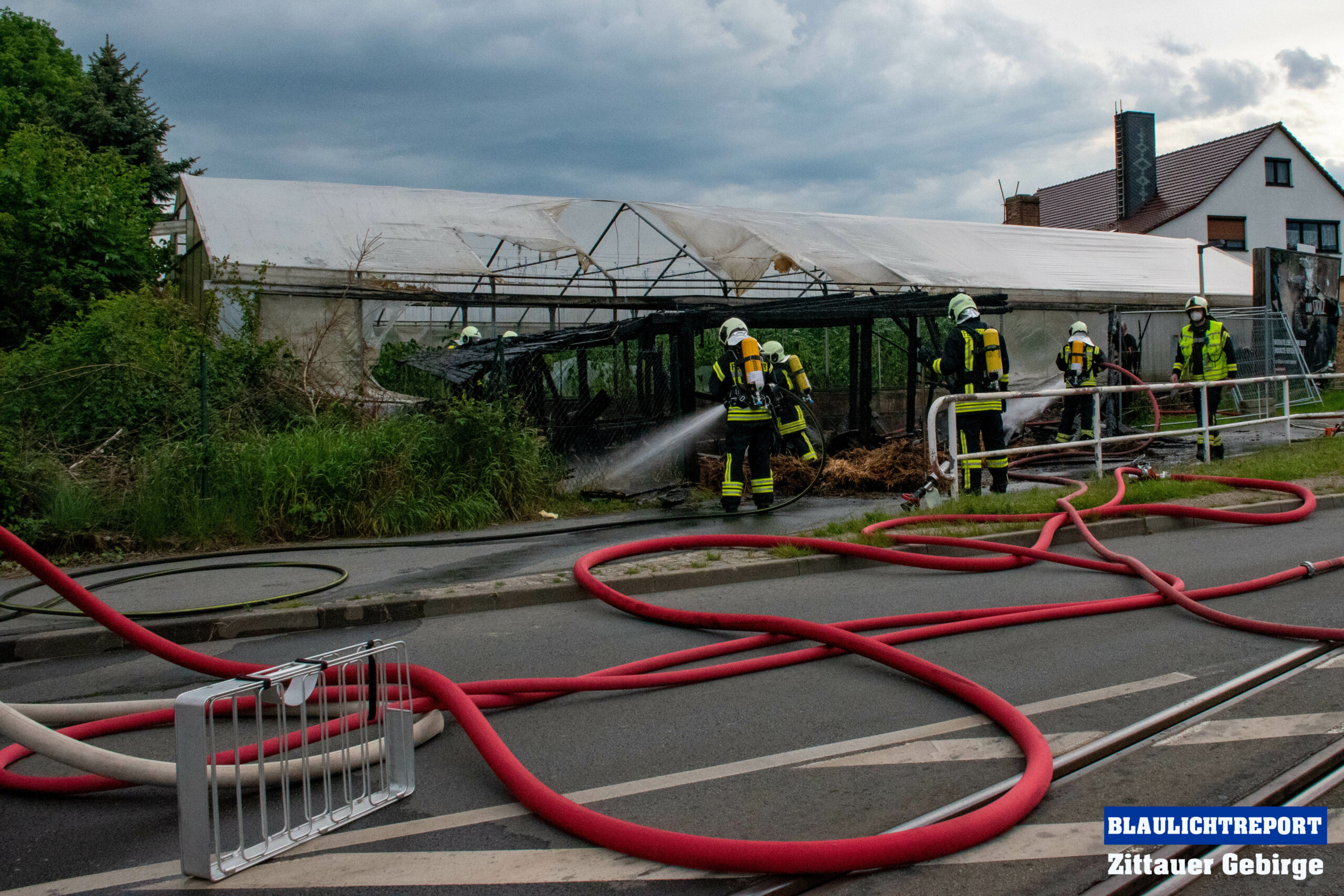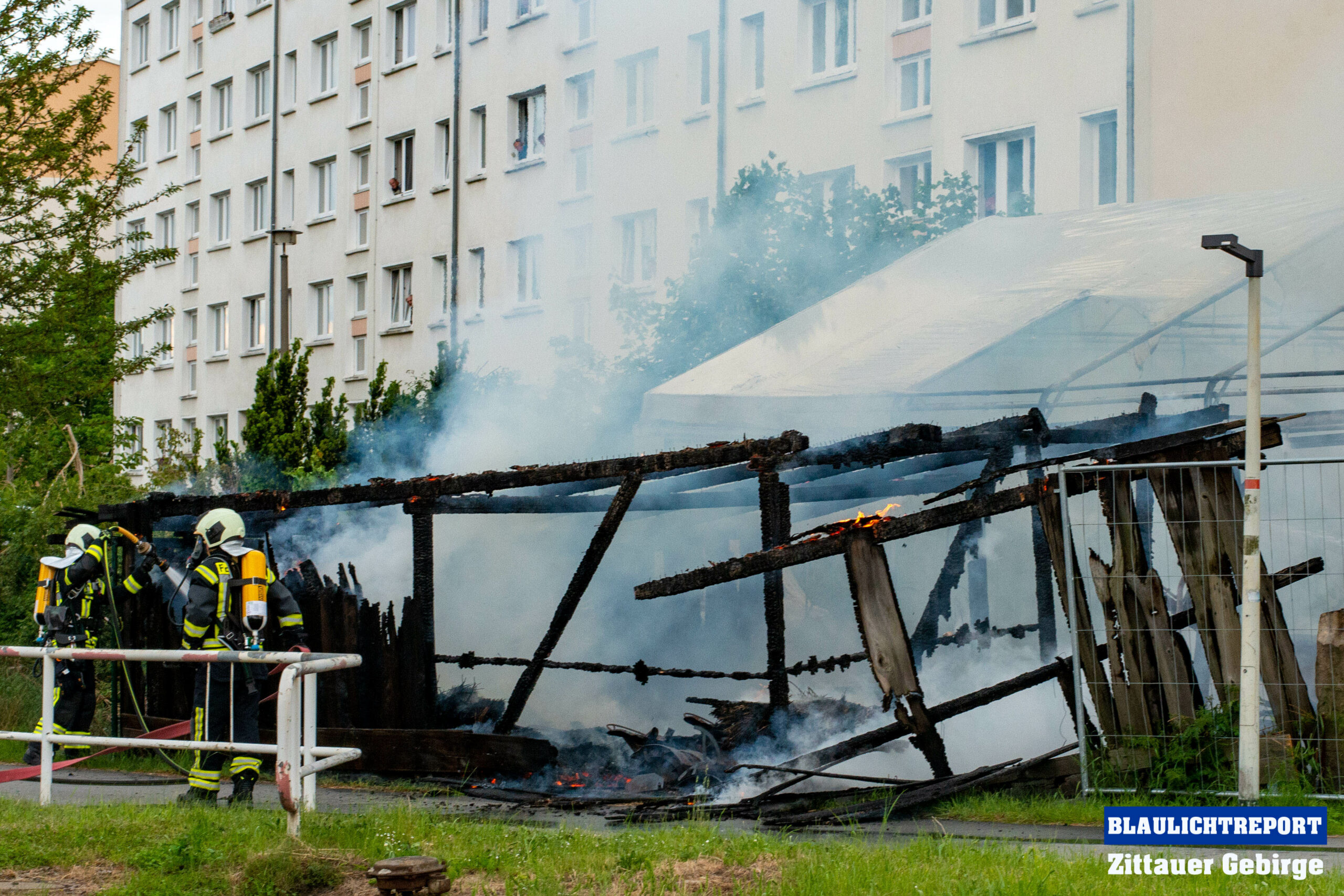 Zittau– Bei einem Brand wurde ein Holzschuppen auf dem Gelände einer Gärtnerei völlig zerstört.