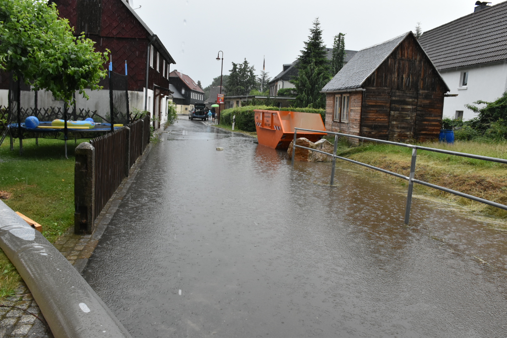 Oderwitz– Innerhalb kürzester Zeit überflutete Starkregen mehrere Straßen um Oderwitz. Auch die B96 in Eibau war betroffen.