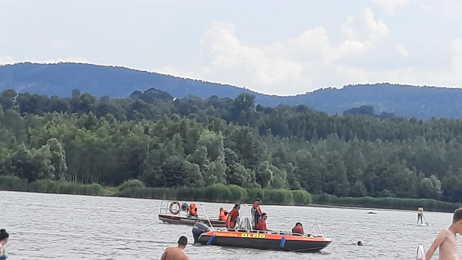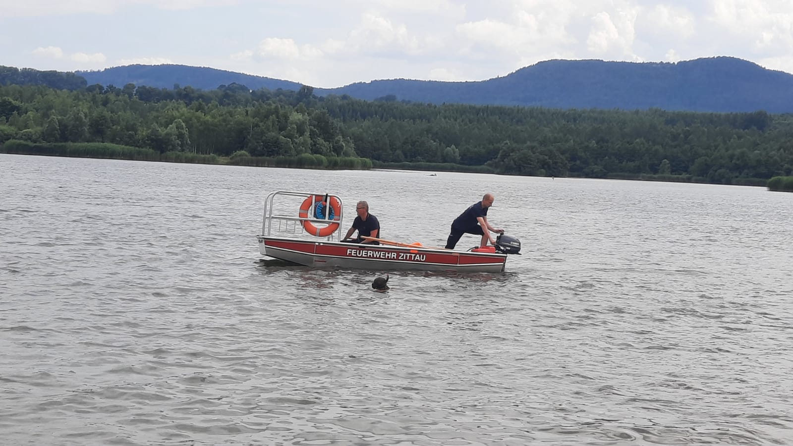Badegäste informierten gegen 13:50 Uhr die Regionalleitstelle Ostsachsen über einen Schwan, der am Hals blutverschmiert war und offensichtlich in einen Drillingshaken gebissen hatte. Mit HLF einem GW-N und einem Mehrzweckboot ging es für die hauptamtlichen Kräfte der Feuerwehr Zittau zum Olersdorfer See. Dort war eine Schwanenfamilie unterwegs, wobei sich bei dem männlichen Schwan die Lage bestätigte. Da sich der Schwan in Richtung Wasser bewegte, und die Feuerwehr mit einem Boot aufgrund der großen Fläche allein nicht viel ausrichten konnte, entschloss man sich die DLRG mit einem weiteren Boot anzufordern. Auch ein Tierarzt wurde für die Rettung hinzugezogen. Nachdem alle Einsatzkräfte einsatzbereit waren ging es aufs Wasser.