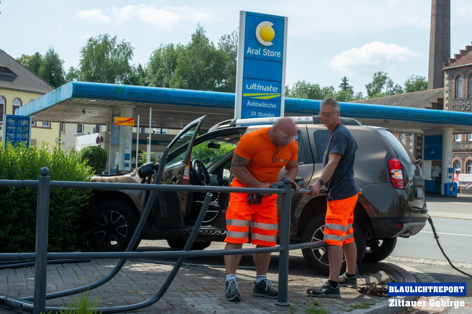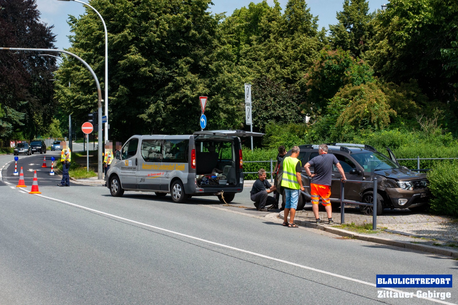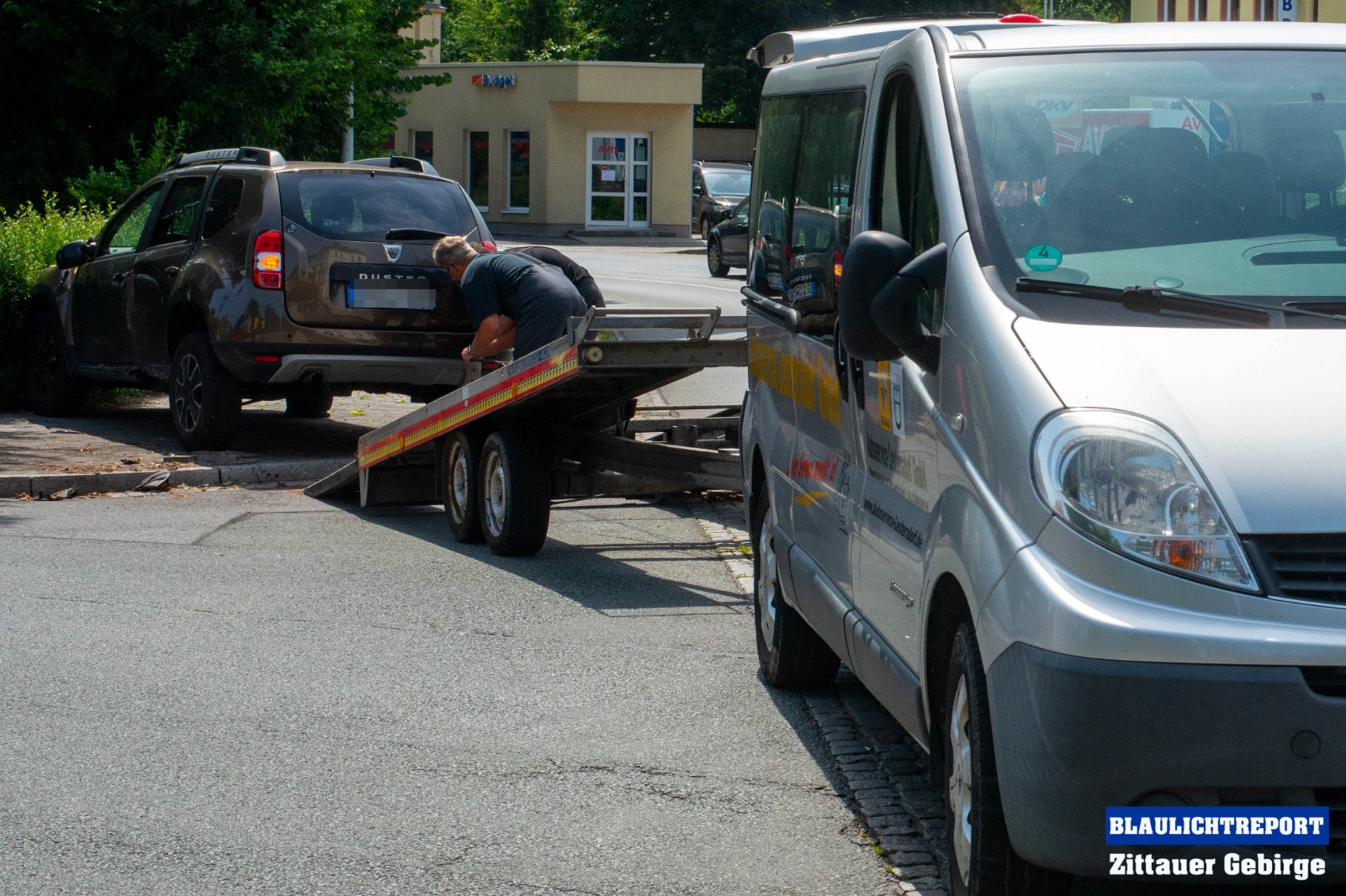 Während der Skoda nach der Unfallaufnahme seine Fahrt fortsetzen konnte, musste der Dacia abgeschleppt werden. Da sich das Fahrzeug im Geländer verkeilte, war die Entfernung desselbigen im Vorfeld erforderlich. Die Städtische Dienstleistungs GmbH Zittau (SDG) nahm sich der Sache an. Mit einem Trennschleifer wurde das Geländer durchtrennt und dann entfernt.