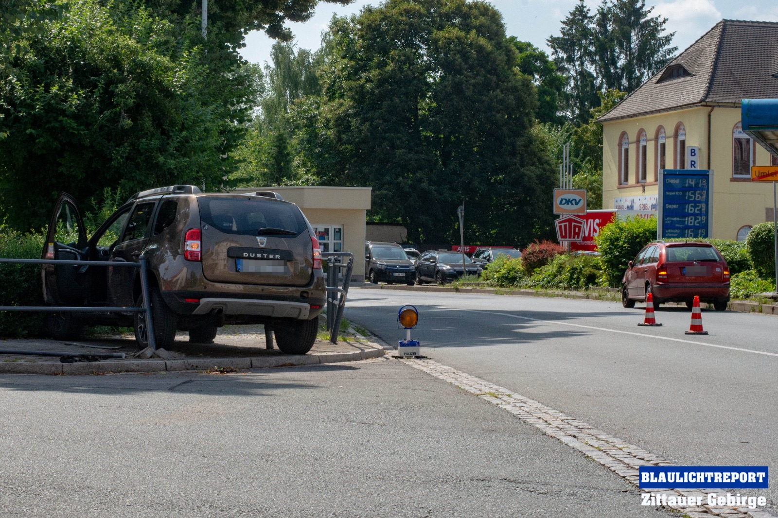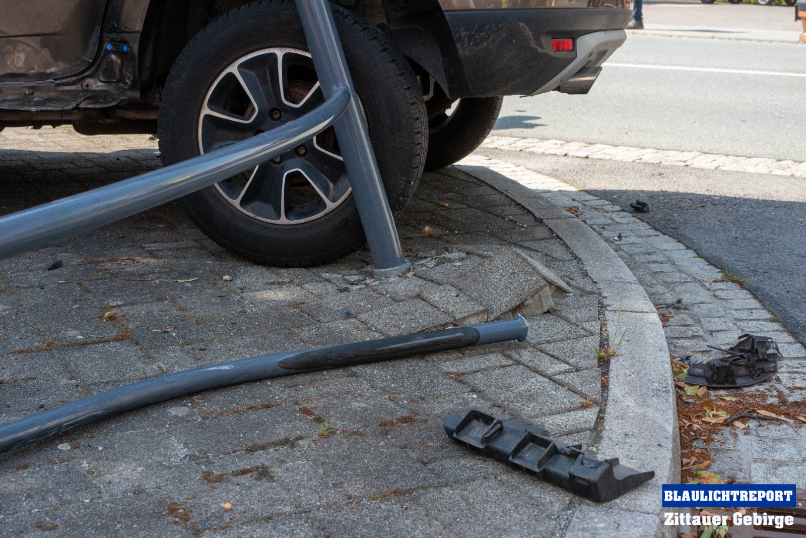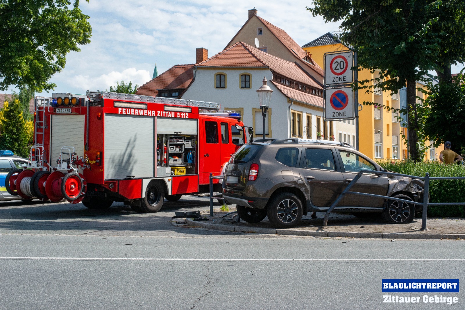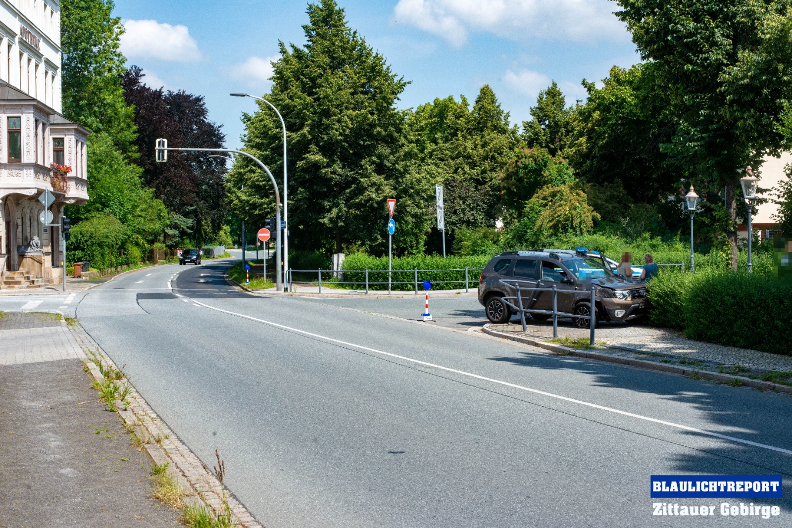 Wie die Polizei mitteilte, fuhr ein Skoda-Fahrer auf der rechten Spur der Theodor-Körner-Allee in Zittau. Da dieser im Verlauf nach links in die Breite Straße abbiegen wollte musste er die Spur wechseln. Beim Spurwechsel hatte er vermutlich den Dacia einer 58- jährigen auf der Neben-Fahrbahn übersehen und kollidierte im vorderen Bereich mit dem Fahrzeug. Durch die Wucht der Kollision wurde der Dacia nach links von der Fahrbahn abgedrängt, durchbrach ein Geländer bevor er schlussendlich vor einer Hecke zum Stehen kam. Ersten Erkenntnissen nach wurden bei dem Unfall keine Personen verletzt. Glücklicherweise befanden sich auch keine Fußgänger im Bereich der Unfallstelle.