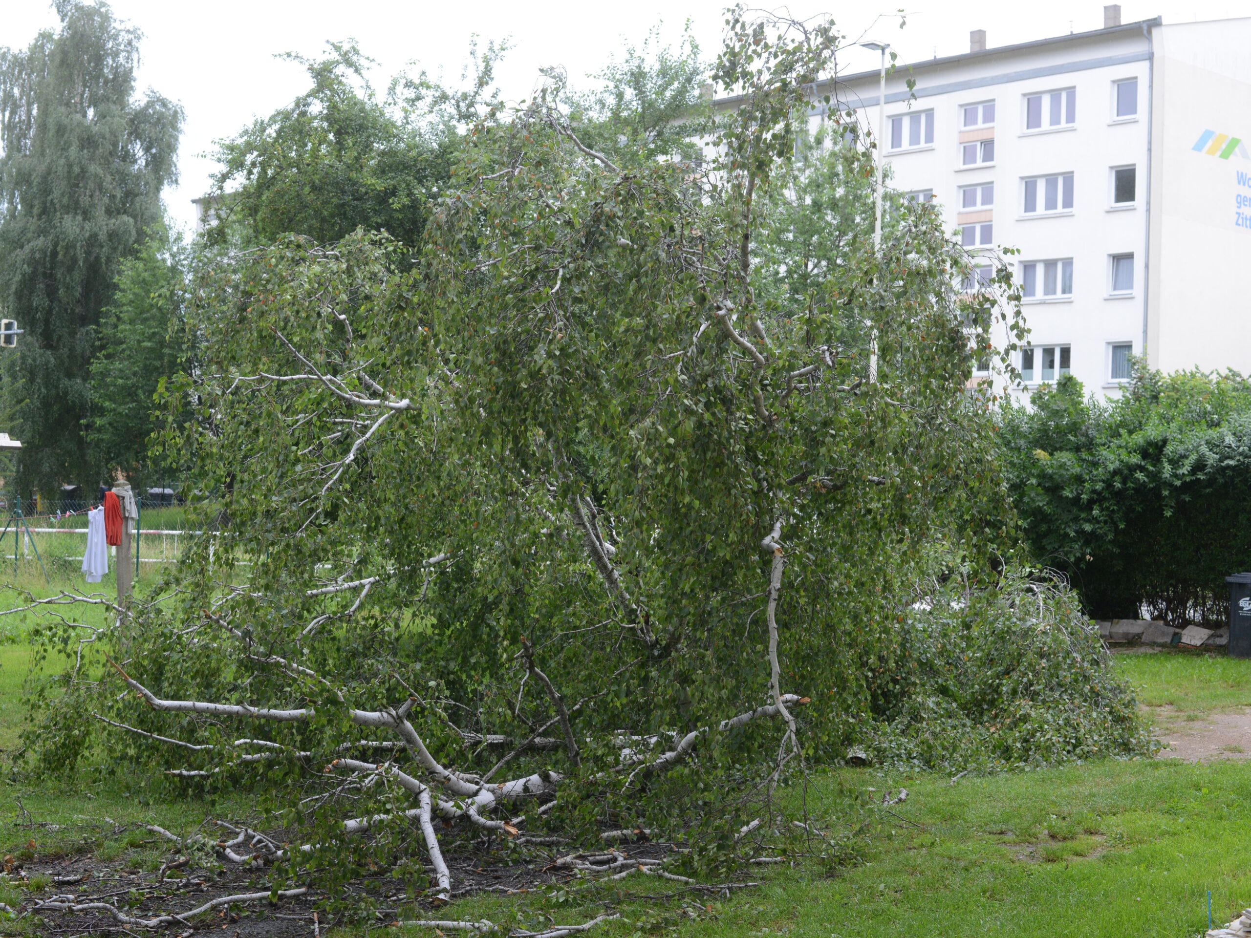 Zittau– An der Schrammstraße hat eine Birke den Windböen der vergangenen Nacht nicht standgehalten.