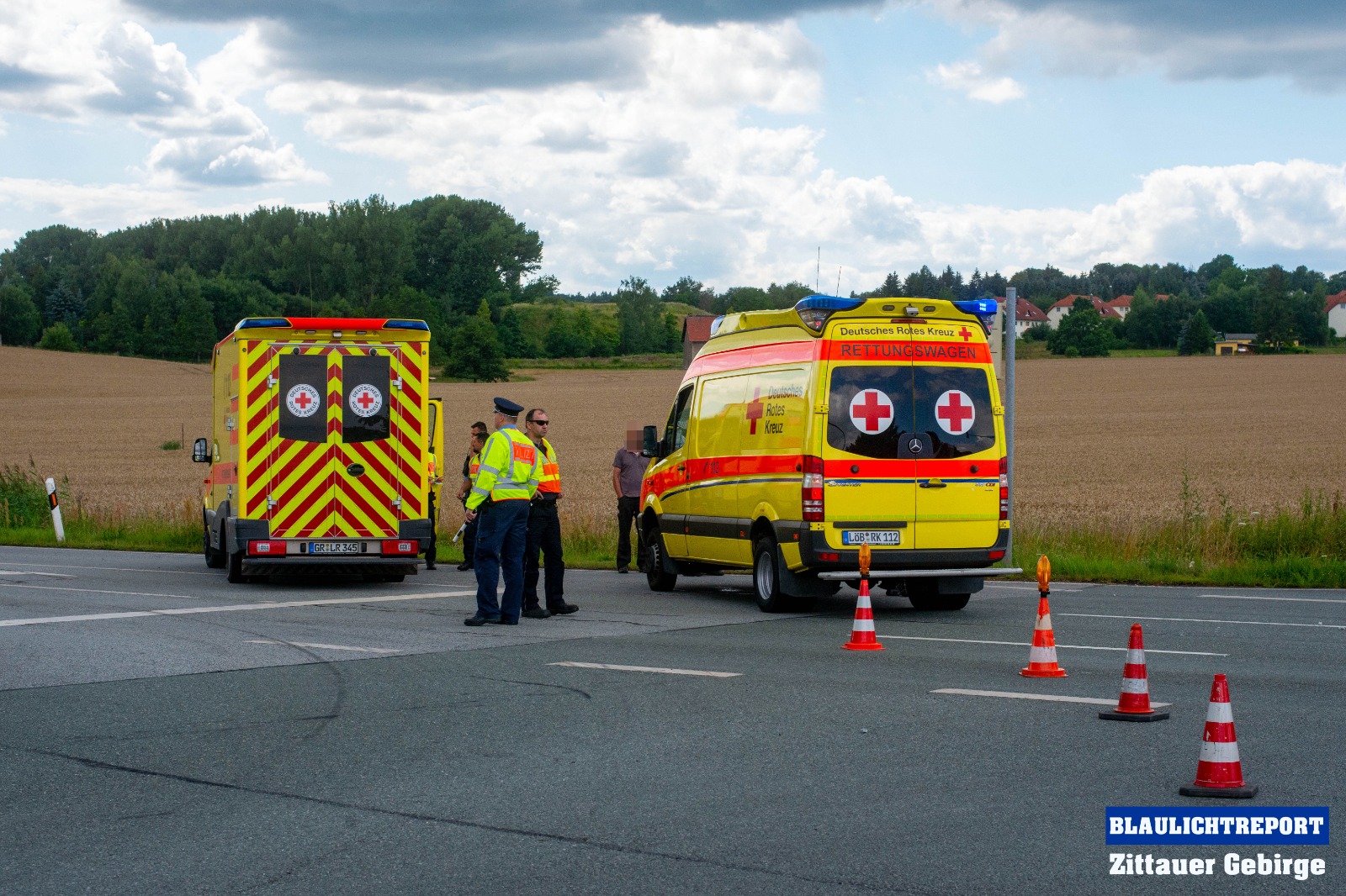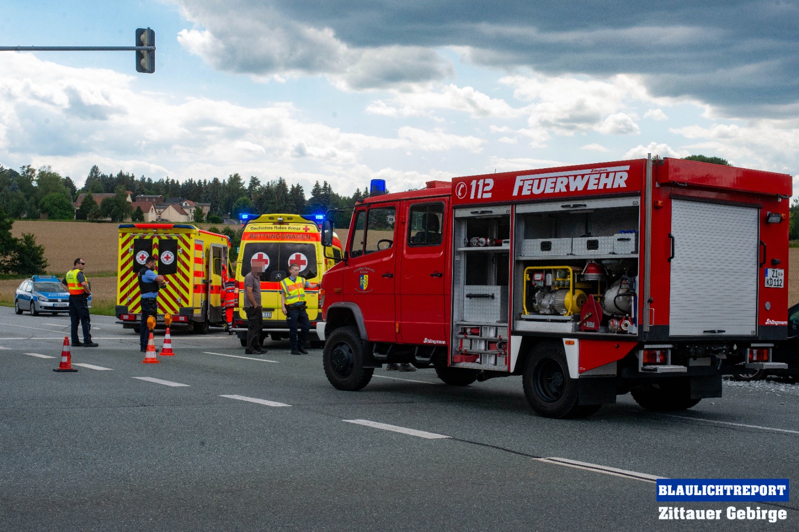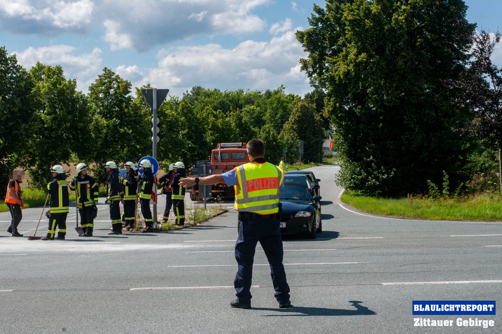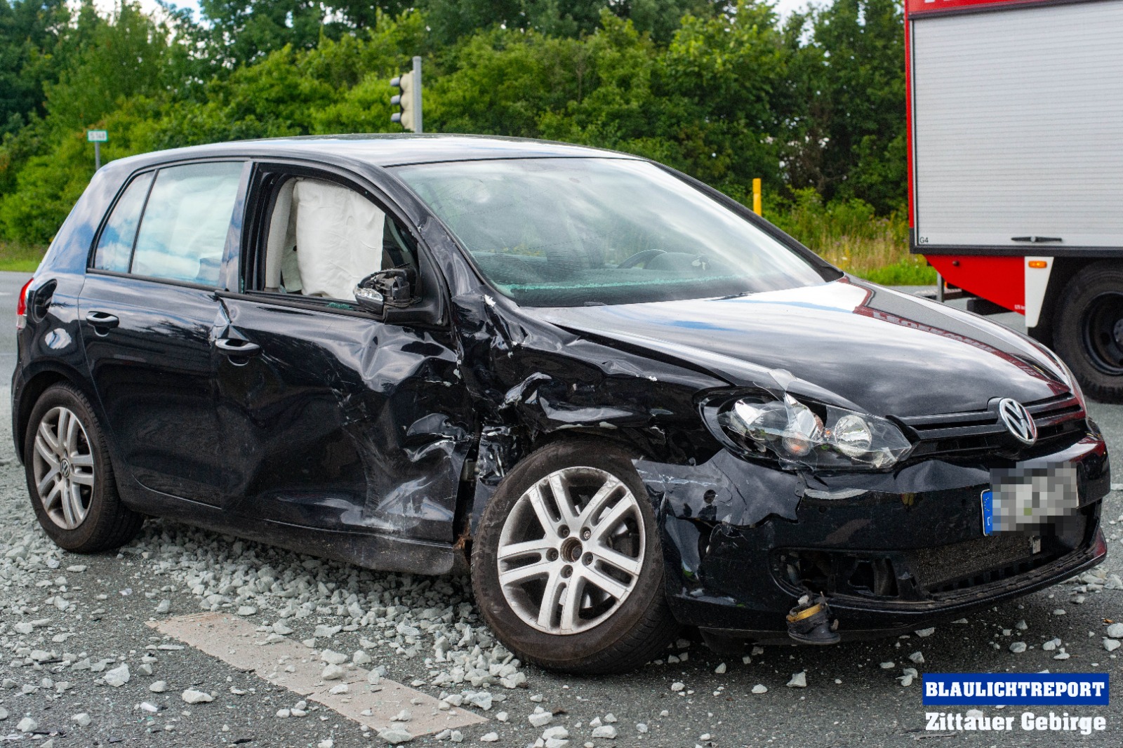 Ersten Erkenntnissen zufolge, befuhr eine 47-Jährige VW-Fahrerin die S142 in Richtung Neugersdorf und wollte die Kamerun-Kreuzung passieren. Offenbar, so die Polizei, übersah sie dabei, dass die Lichtzeichenanlage für ihre Richtung Rot anzeigte und fuhr in die Kreuzung ein. Ein, zur gleichen Zeit auf der S148 fahrender 63-jähriger, Nissan-Fahrer, mit einem mit Mineralgemisch beladenen Anhänger, konnte nicht mehr rechtzeitig reagieren und kollidierte in der Folge mit dem Volkswagen. Durch die Wucht der Kollision wurden beide Fahrzeuge stark beschädigt. Auch die Ladung machte sich selbstständig und flog zum Teil auf die Kreuzung.