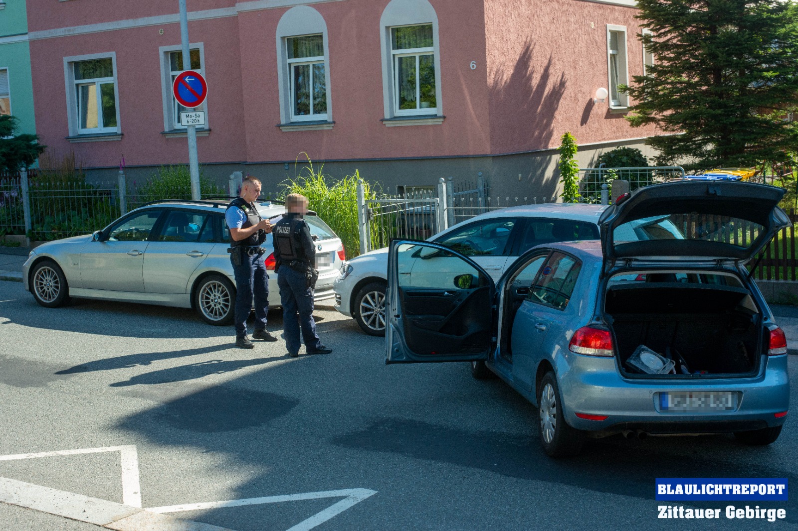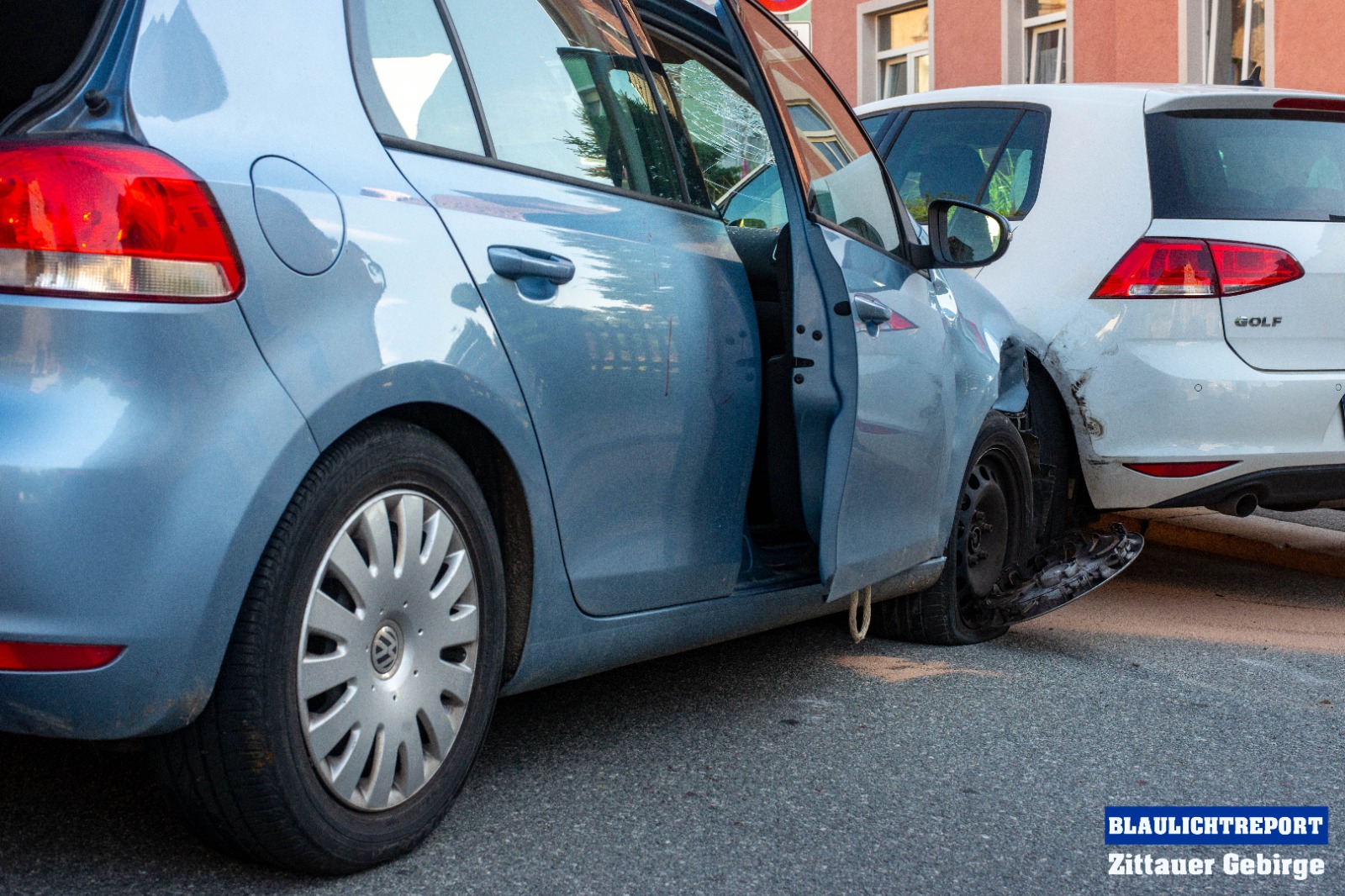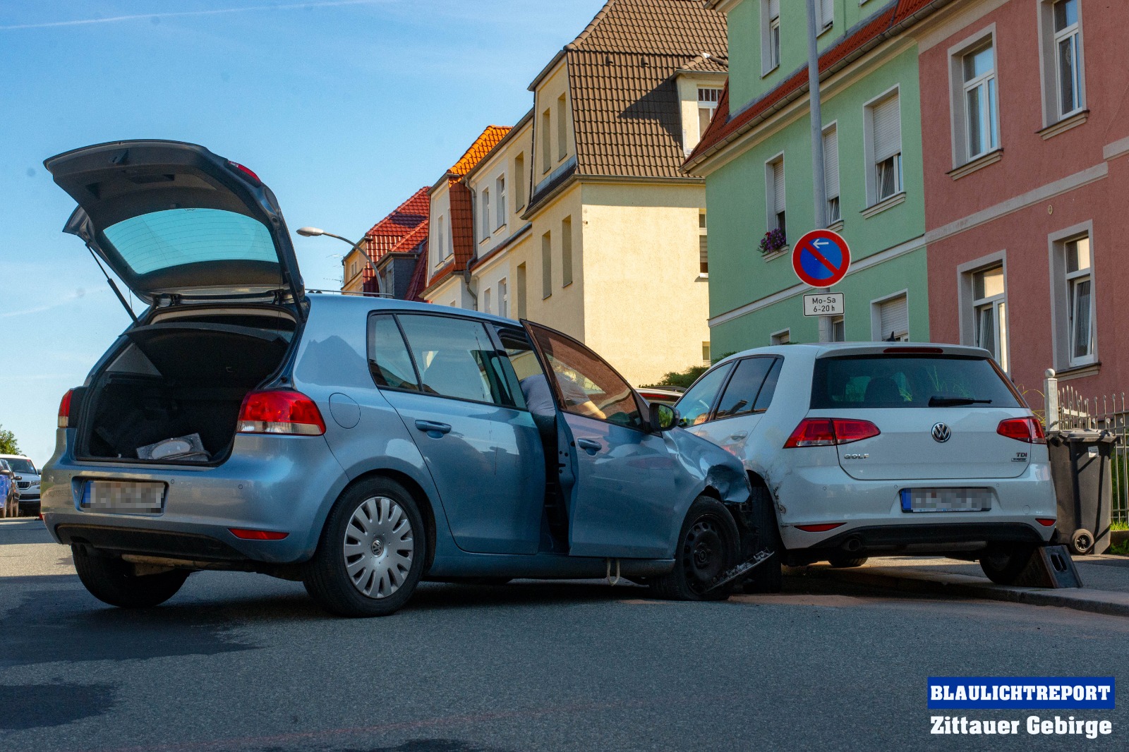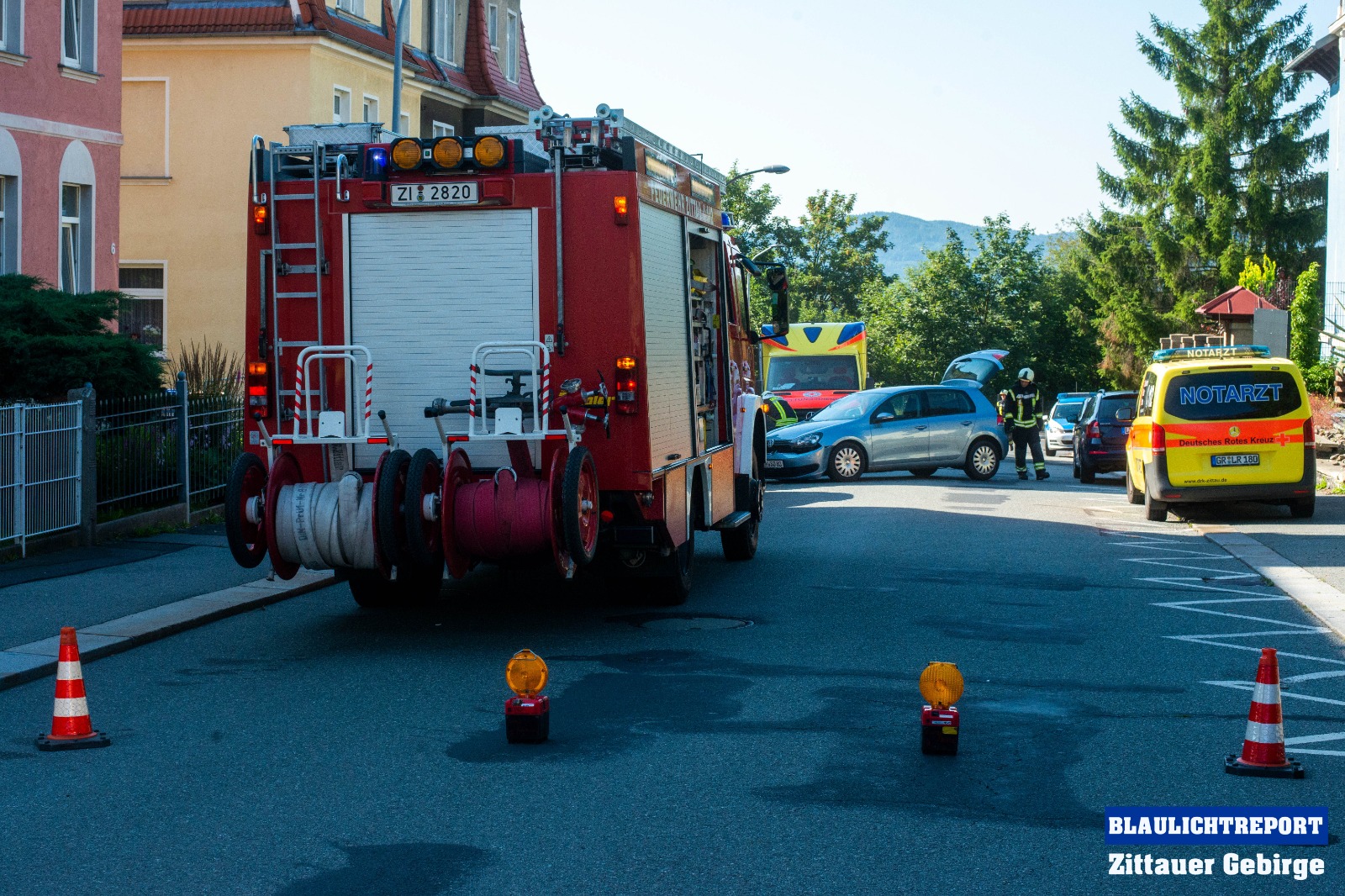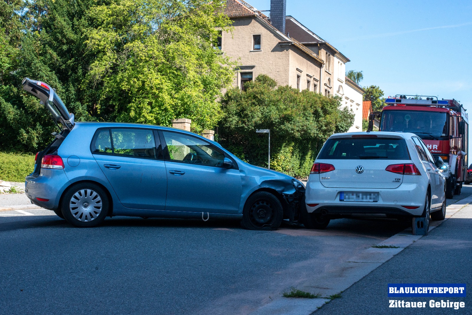 Am Freitagmorgen ereignete sich einen Unfall auf der Bergstraße in Zittau. Ein 55-jähriger VW-Fahrer befuhr die Bergstraße in Richtung Herwigsdorfer Straße. Aus bislang ungeklärter Ursache kam er nach rechts von der Fahrbahn ab und stieß gegen einen dort abgeparkten VW Golf. Der Golf wurde durch die Kollision auf einen weiteren BMW aufgeschoben. Neben dem Rettungsdienst und der Polizei kam auch die Feuerwehr zum Einsatz. Die Kameraden sicherten die Unfallstelle, nahmen die ausgelaufenen Betriebsstoffe aus und unterstützten den Abschleppdienst bei der Bergung des Fahrzeugs. Beide Insassen des Fahrzeugs mussten durch den Rettungsdienst in ein Klinikum gebracht werden.