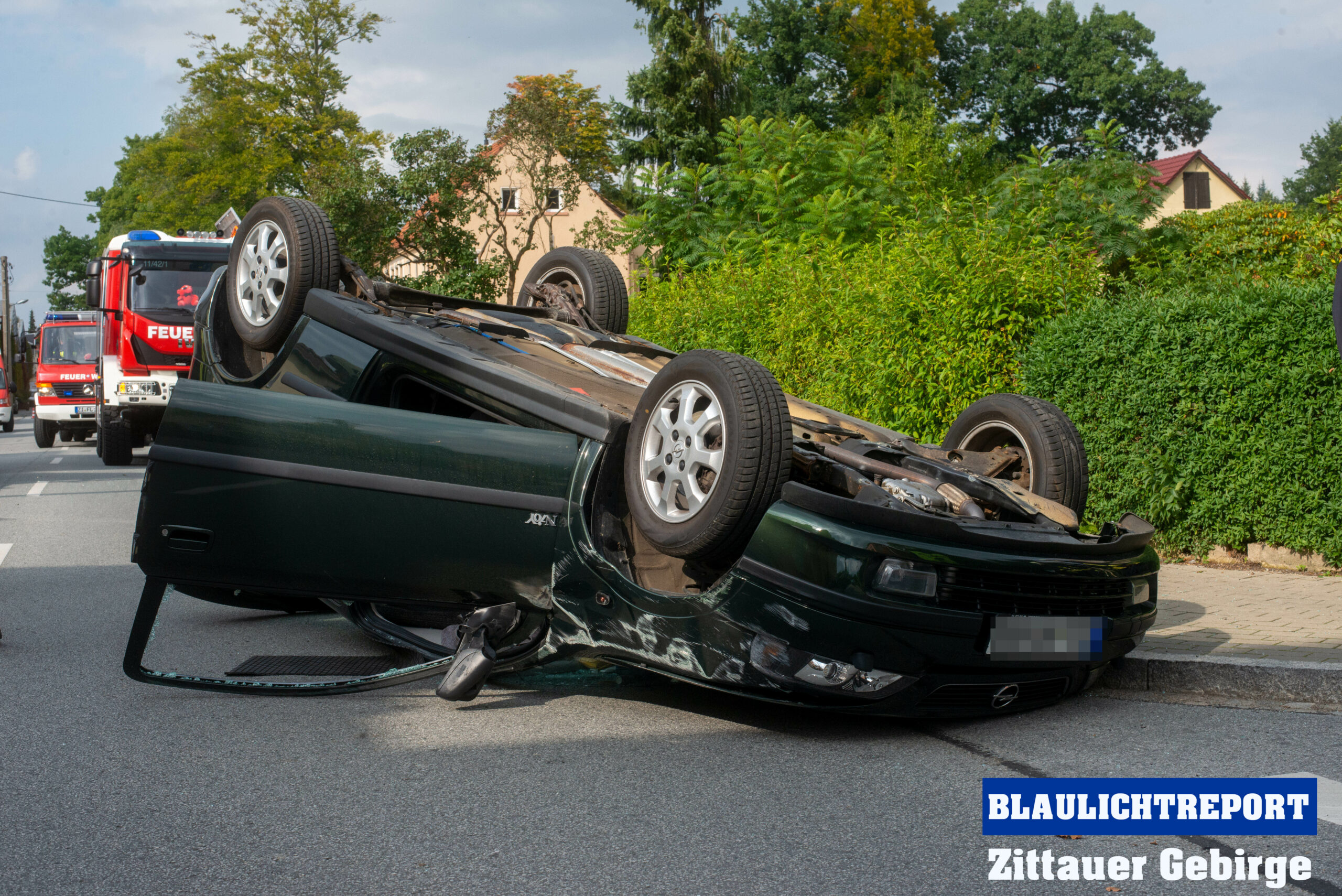 Leutersdorf– Mitsamt seinem Opel hat sich am Montagnachmittag ein Senior überschlagen.