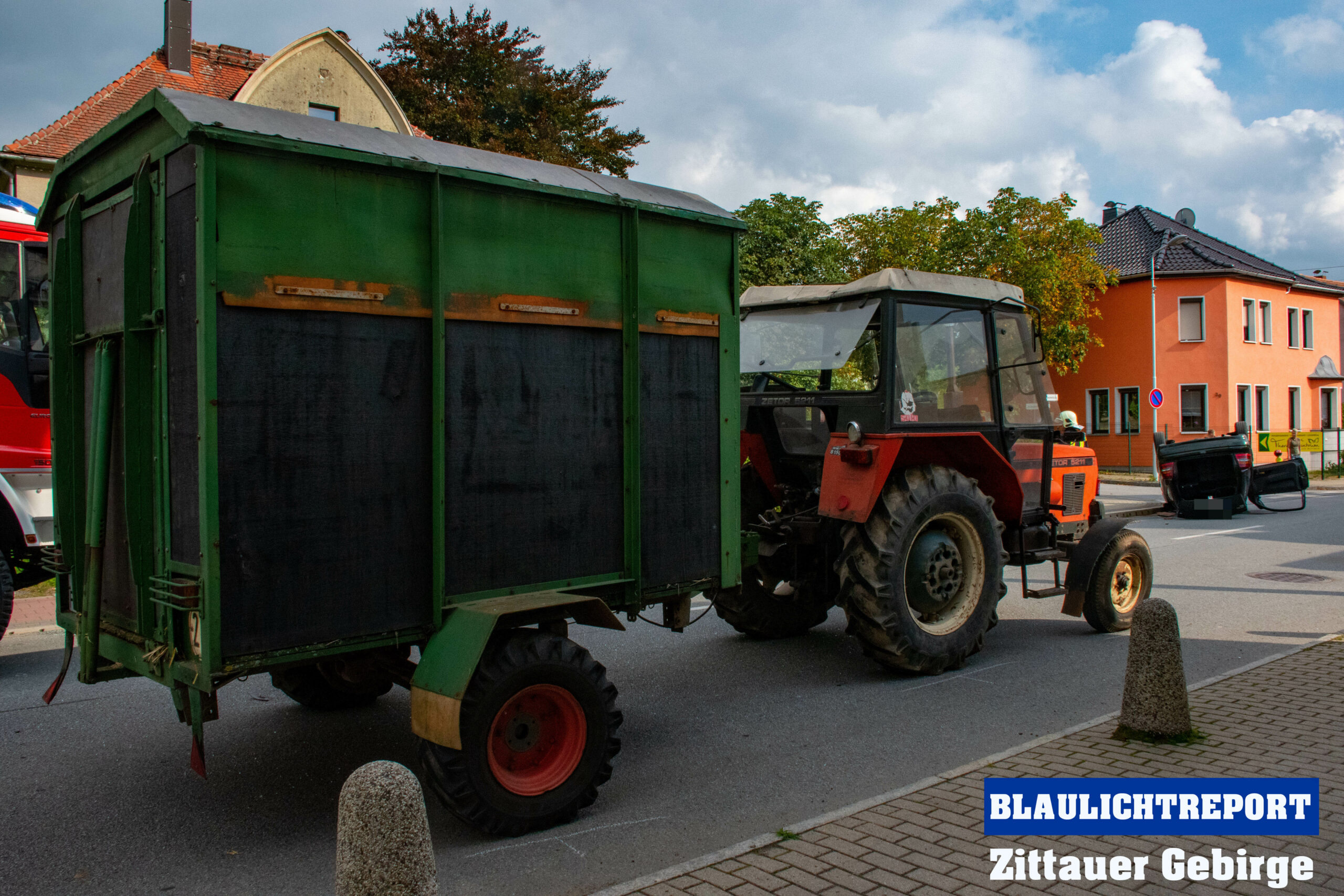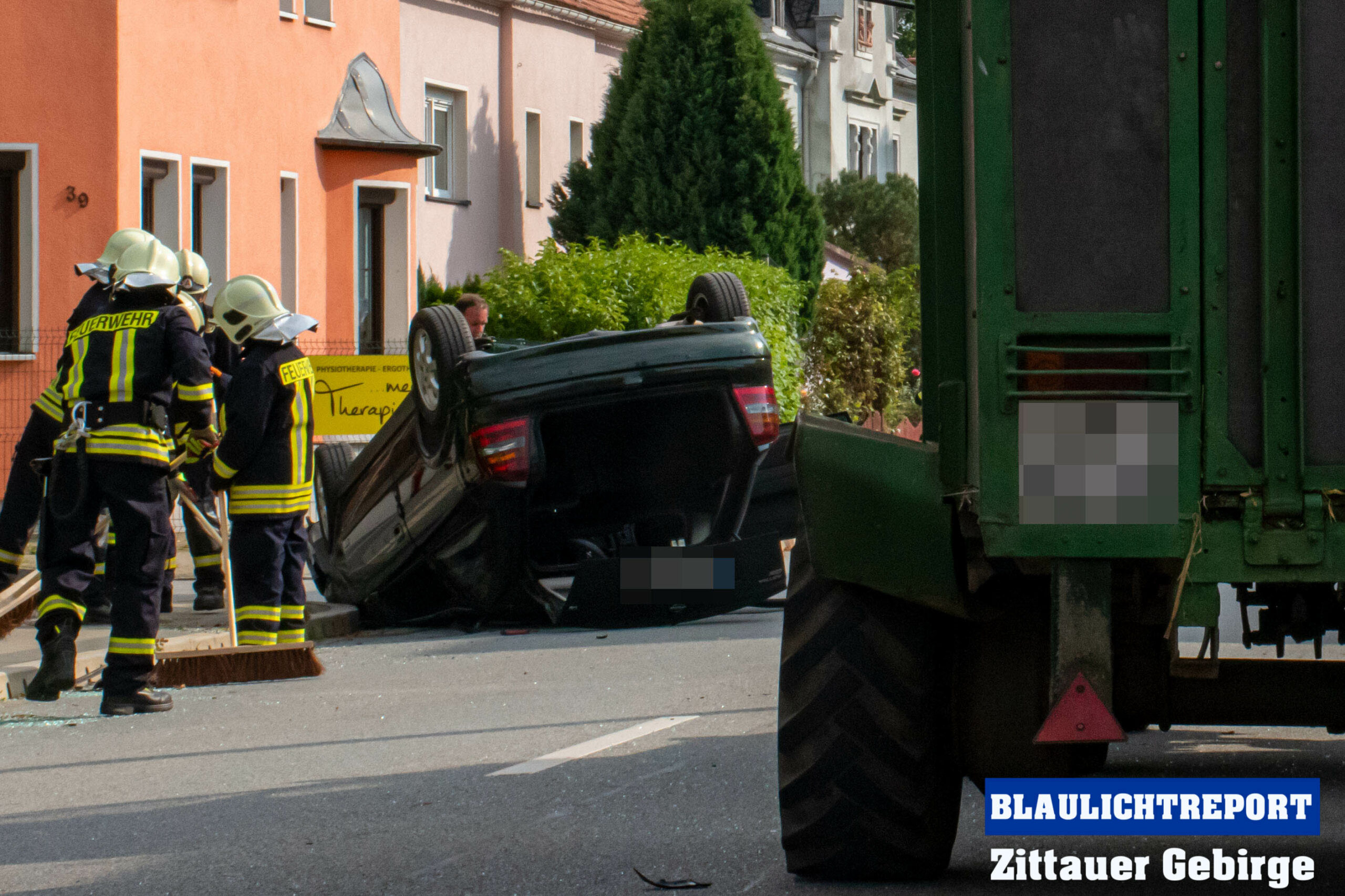 Der Senior war auf der Sachsenstr. in Richtung Spitzkunnersdorf unterwegs. Kurz vor der Einmündung zur Bahnhofstraße setzte er zum Überholen an und scherte nach links aus. Dabei kollidierte der Opel nach Angaben der Polizei mit der Achse des Anhängers eines vor ihm fahrenden Traktos. Daraufhin überschlug sich das Fahrzeug und blieb auf dem Dach liegen.
