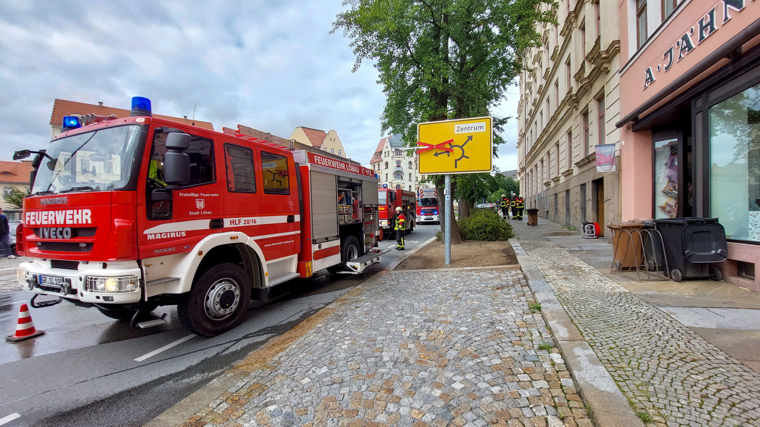 Am Montagnachmittag kam es am Löbauer Neumarkt zu einem Feuerwehreinsatz. Aus bislang ungeklärter Ursache kam es zum Brand von Mülltonnen im Keller eines Bürohauses. Schwarzer dichter Qualm drang beim Eintreffen der Feuerwehr aus dem Keller, Personen seien ersten Angaben nach nicht zu Schaden gekommen. Unter schwerem Atemschutz gingen die Kameraden mit einem C-Rohr zu Brandbekämpfung vor. Nach dem das Feuer gelöscht war, brachten die Kameraden die Mülltonnen ins Freie. Im Anschluss wurde das Objekt mittels Überdrucklüfter vom Rauch befreit, so dass die Beschäftigten nach den Einsatzmaßnahmen wieder ins Gebäude konten. Die Polizei regelte den Verkehr.