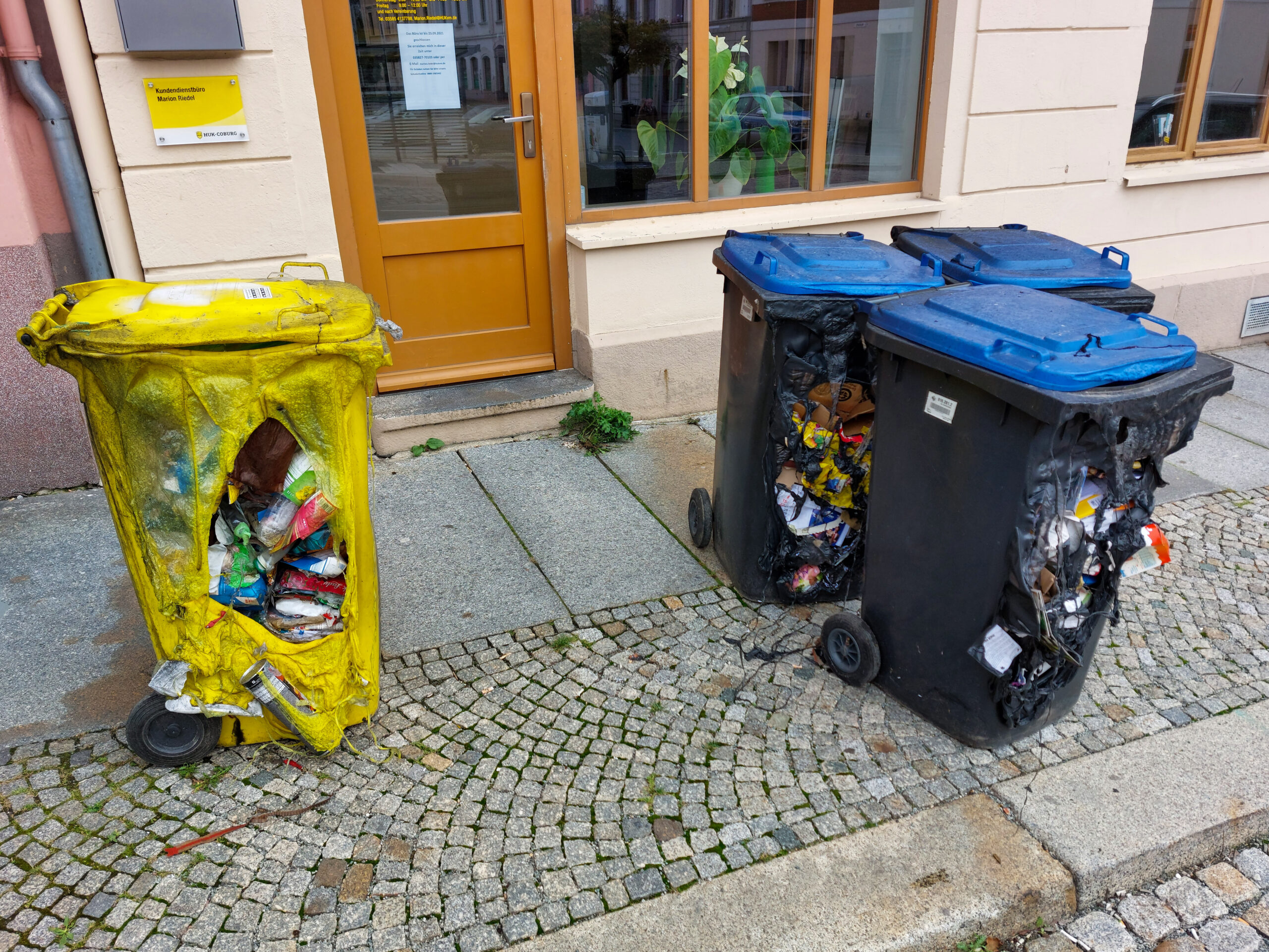 Löbau– Was war denn da los? Mülltonnen in Bürohaus fingen plötzlich Feuer – Brandstiftung?