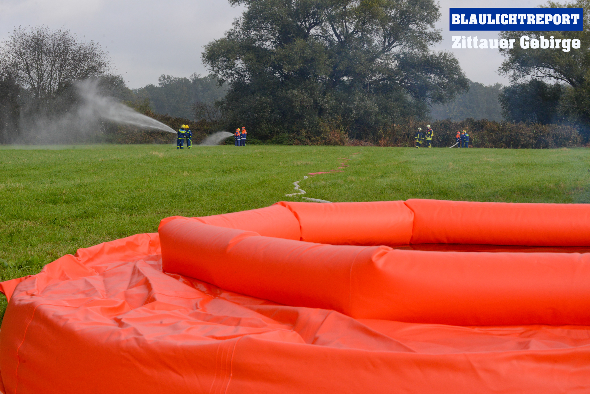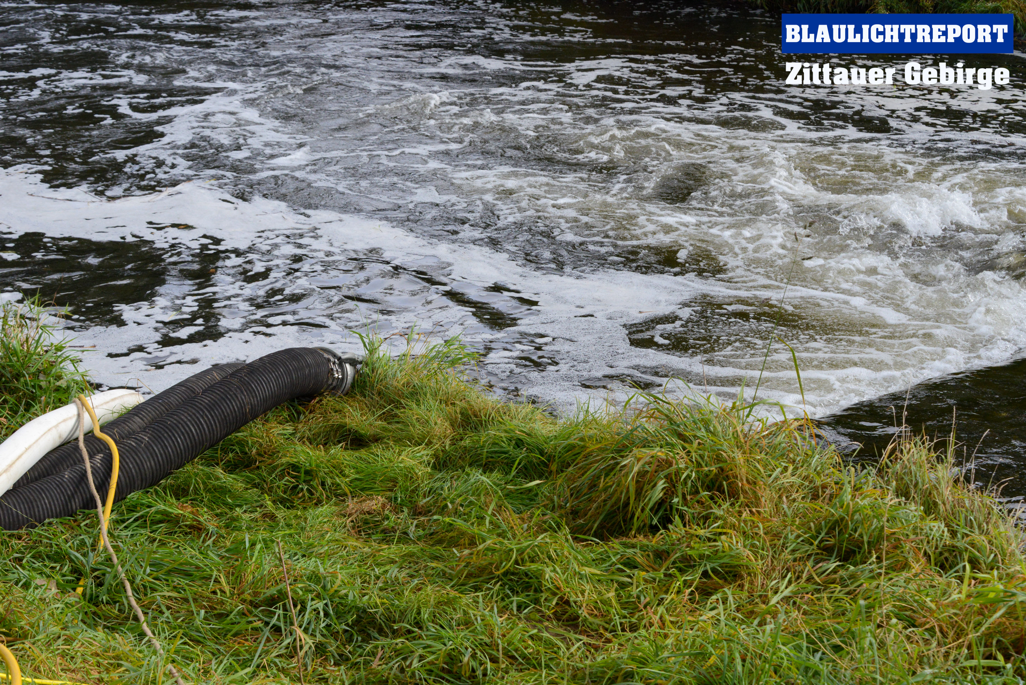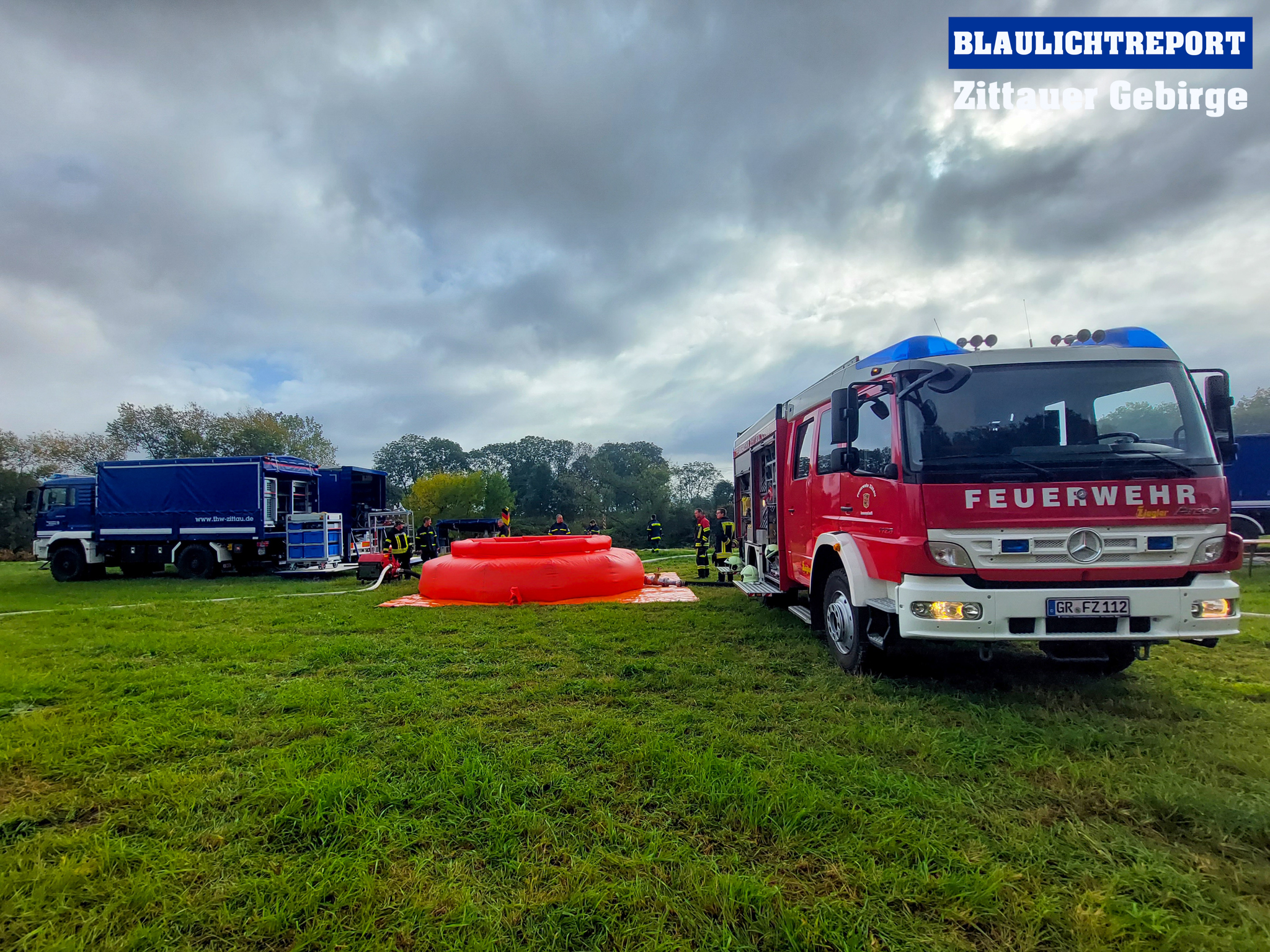 Hier setzte das THW die Pumpe Hannibal (5000L/min) ein und speiste das geförderte Wasser in einen 24m³ Faltbehälter.