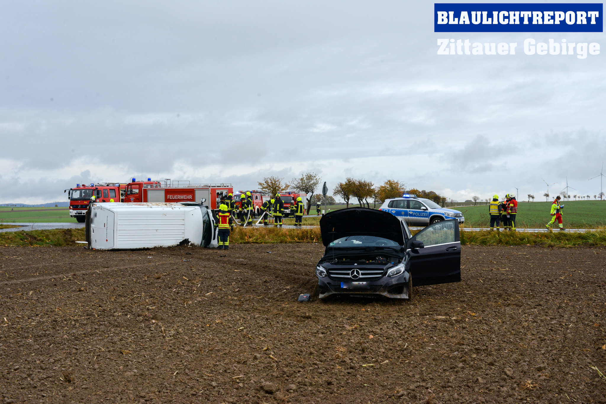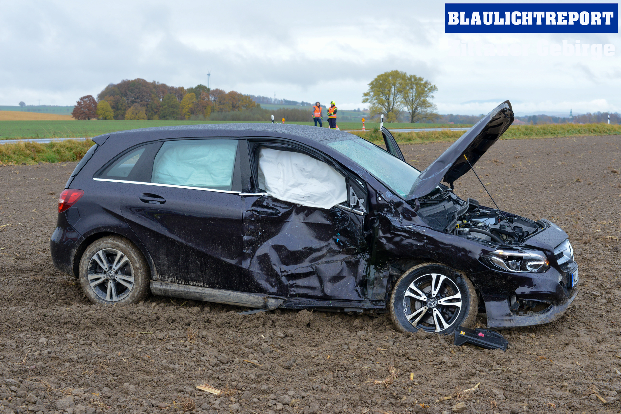 Wie die Polizei mitteilt, war ein 67- jähriger Mercedes-Fahrer in Richtung Lehdehäuser unterwegs und wollte die Hauptstraße in Richtung Buschschenkhäuser überqueren. Einen ankommenden Ford Transporter nahm er dabei offenbar nicht wahr, weshalb es auf der Kreuzung zum Crash beider Fahrzeuge kam. Beide Fahrzeuge wurden auf ein angrenzenden Acker geschleudert wo sie letztlich zum Stehen kamen. Der Transport landete auf der Seite.