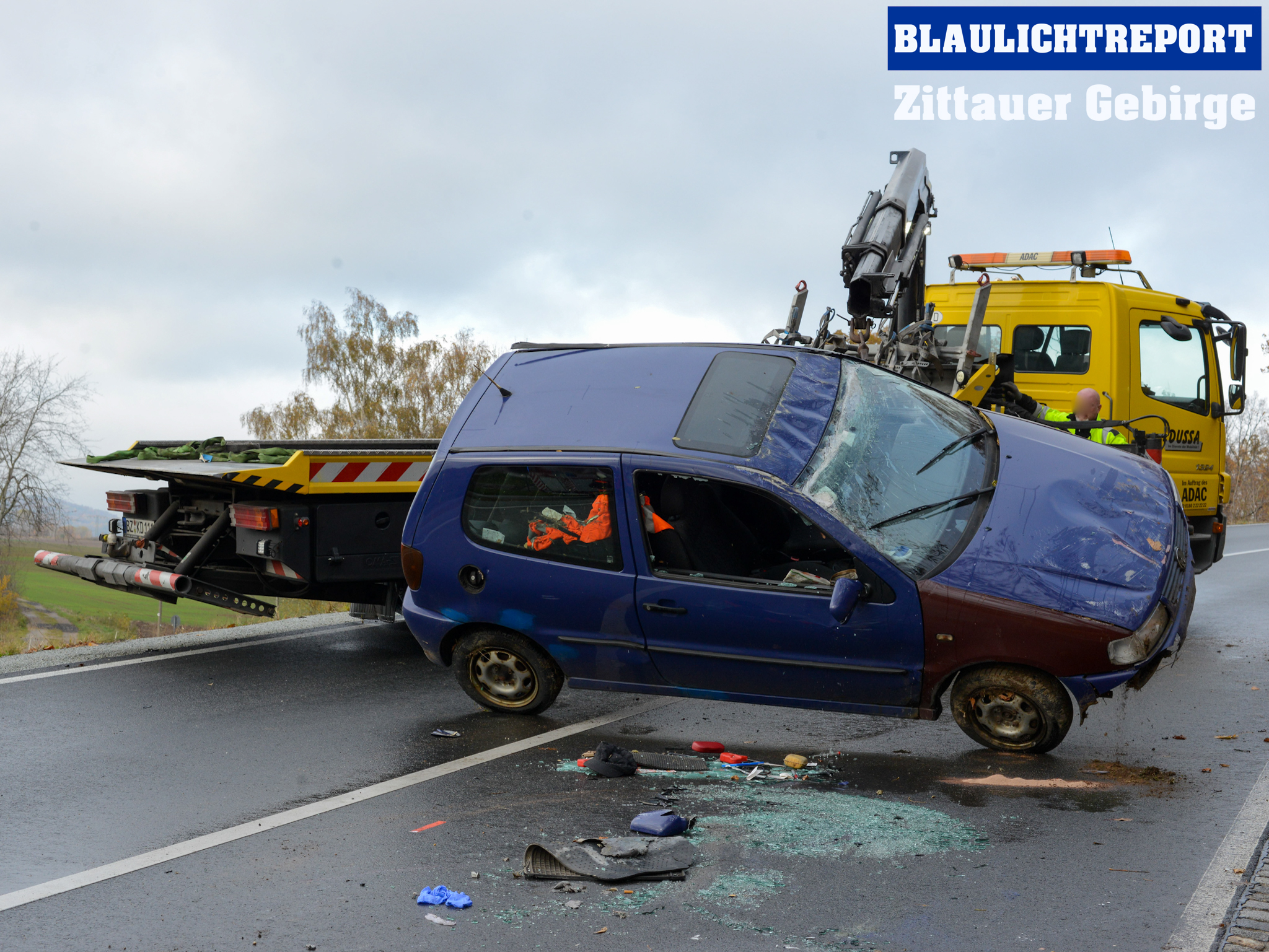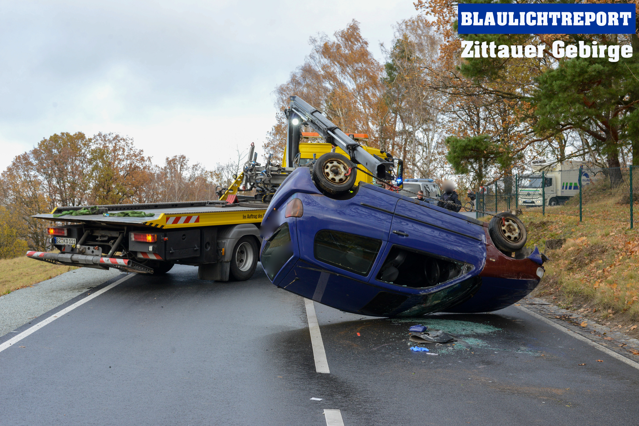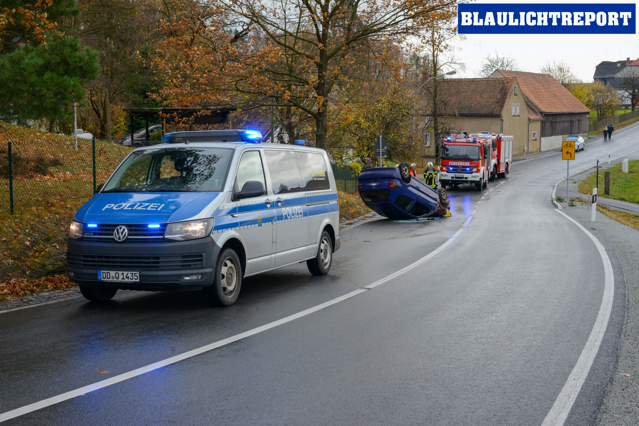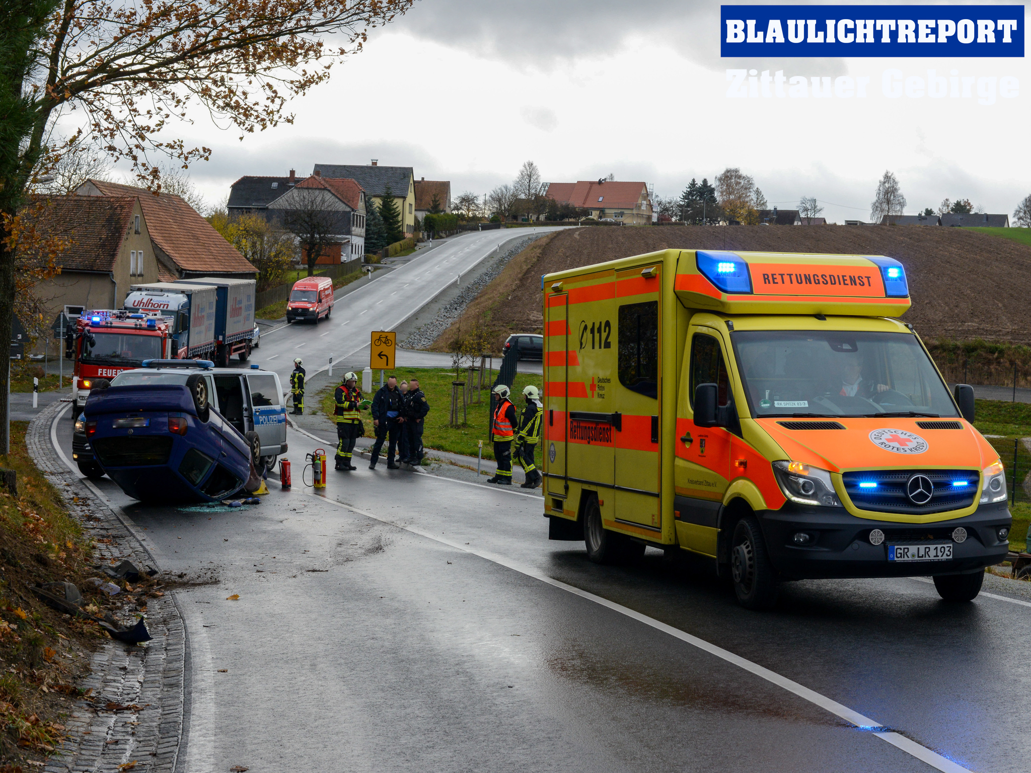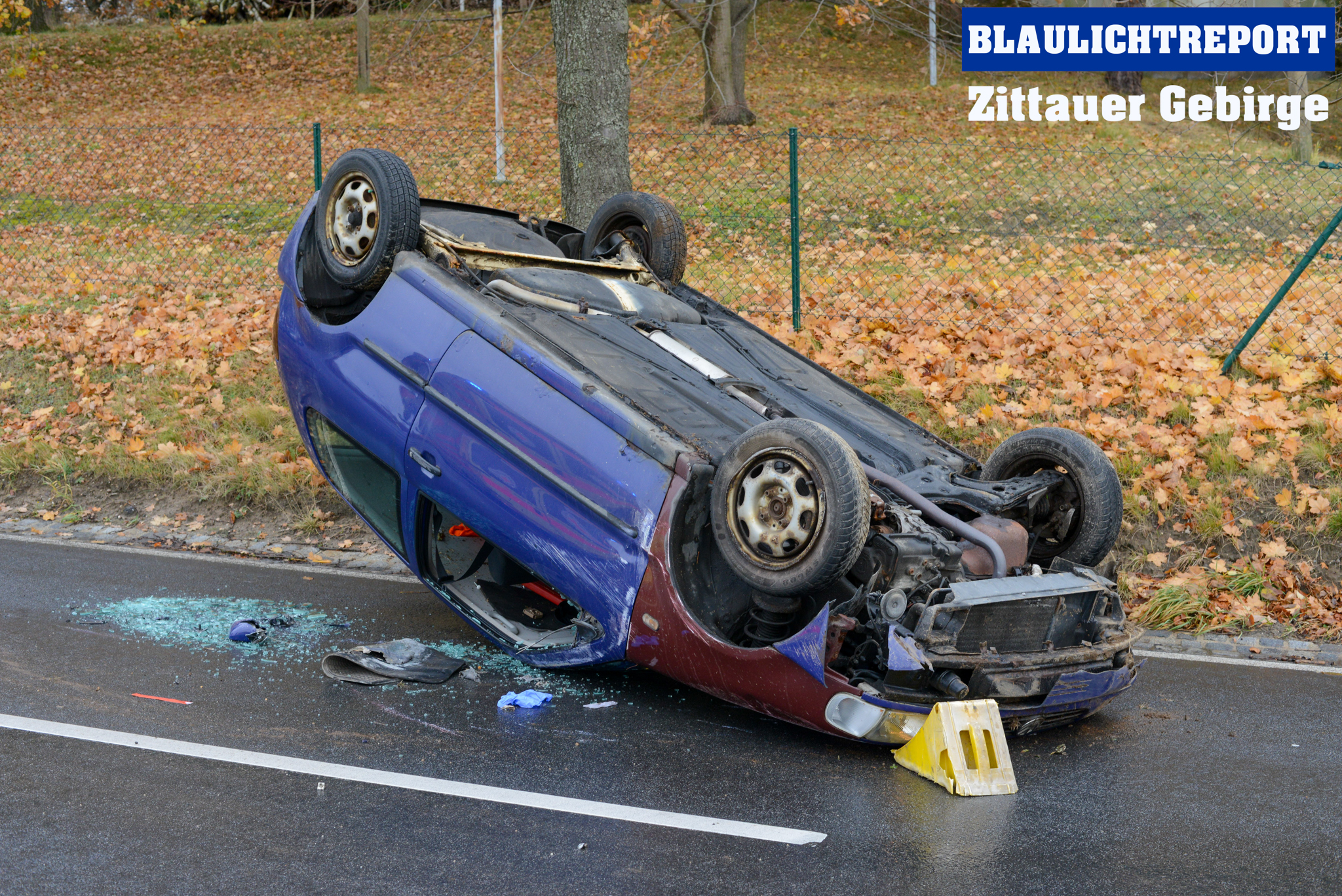 Am Montagvormittag ereignete sich auf der Großhennersdorfer Straße (S128) ein Unfall, bei dem ein Volkswagen auf dem Dach zum Liegen kam.