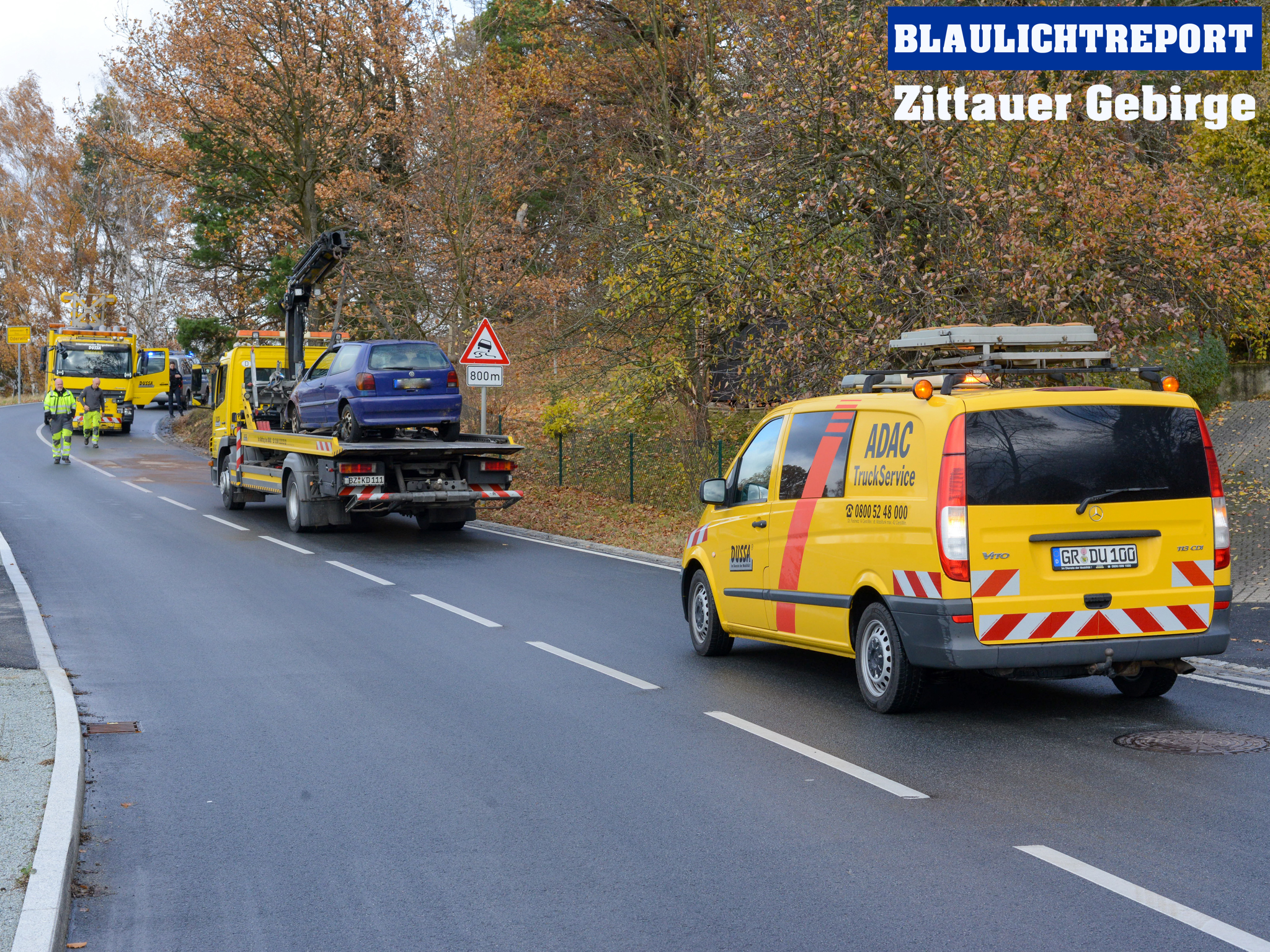 Für die Dauer der Rettungsmaßnahmen, für die Unfallaufnahme und die Bergung musste die Großhennersdorfer Straße teils voll gesperrt werden.