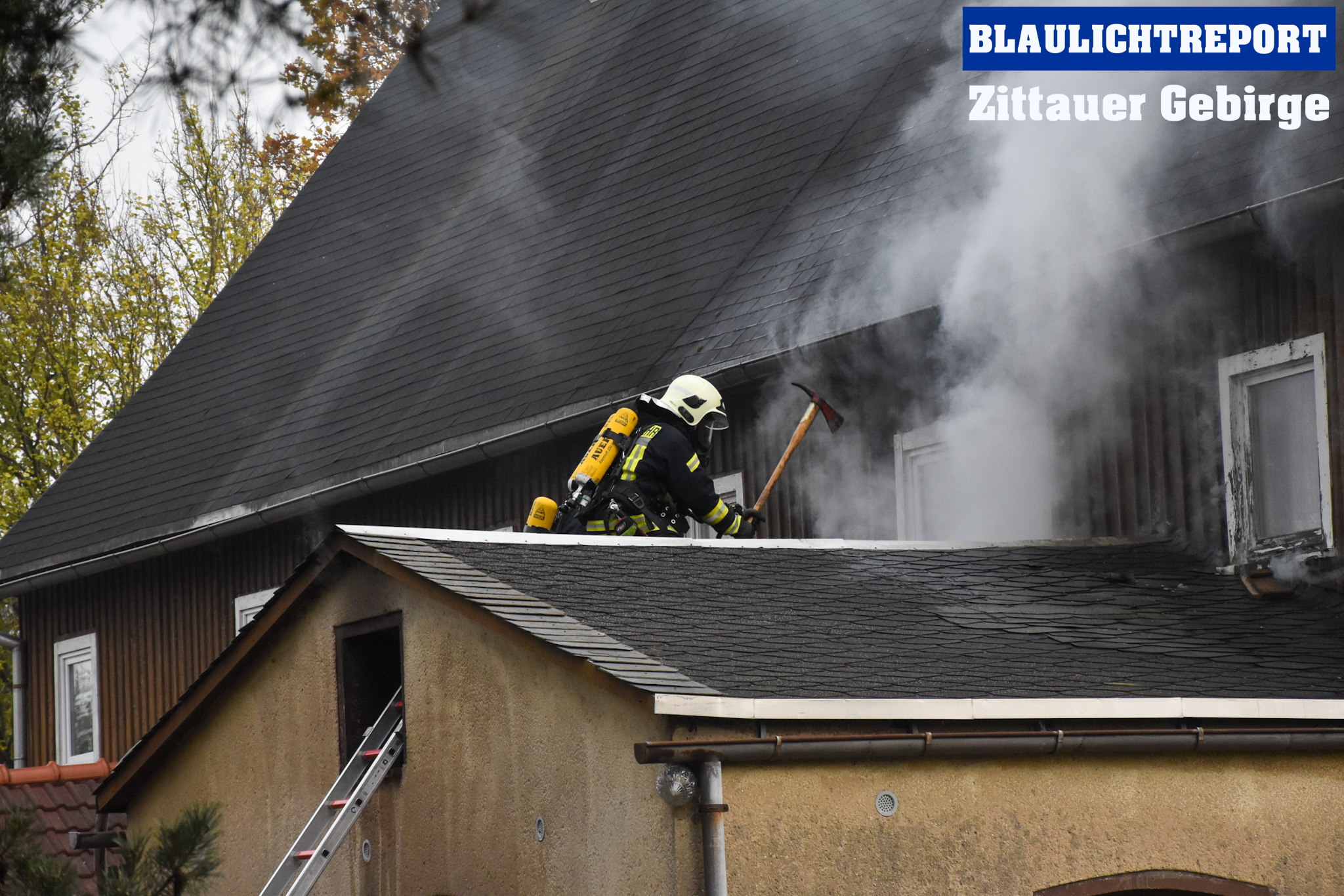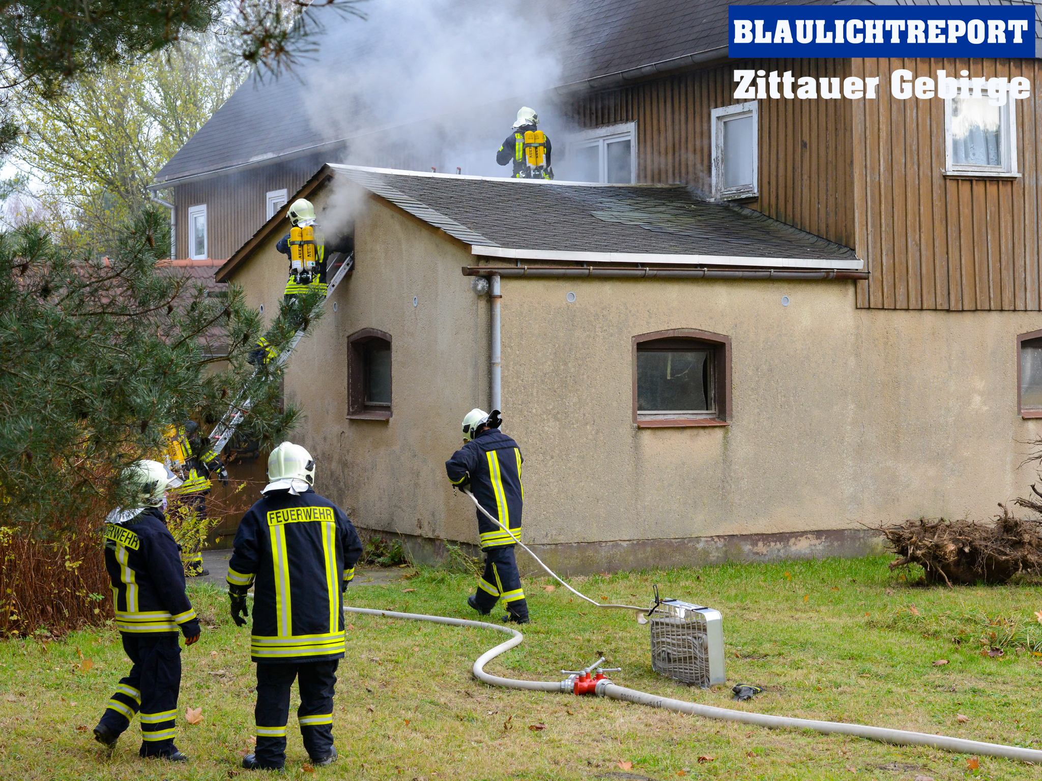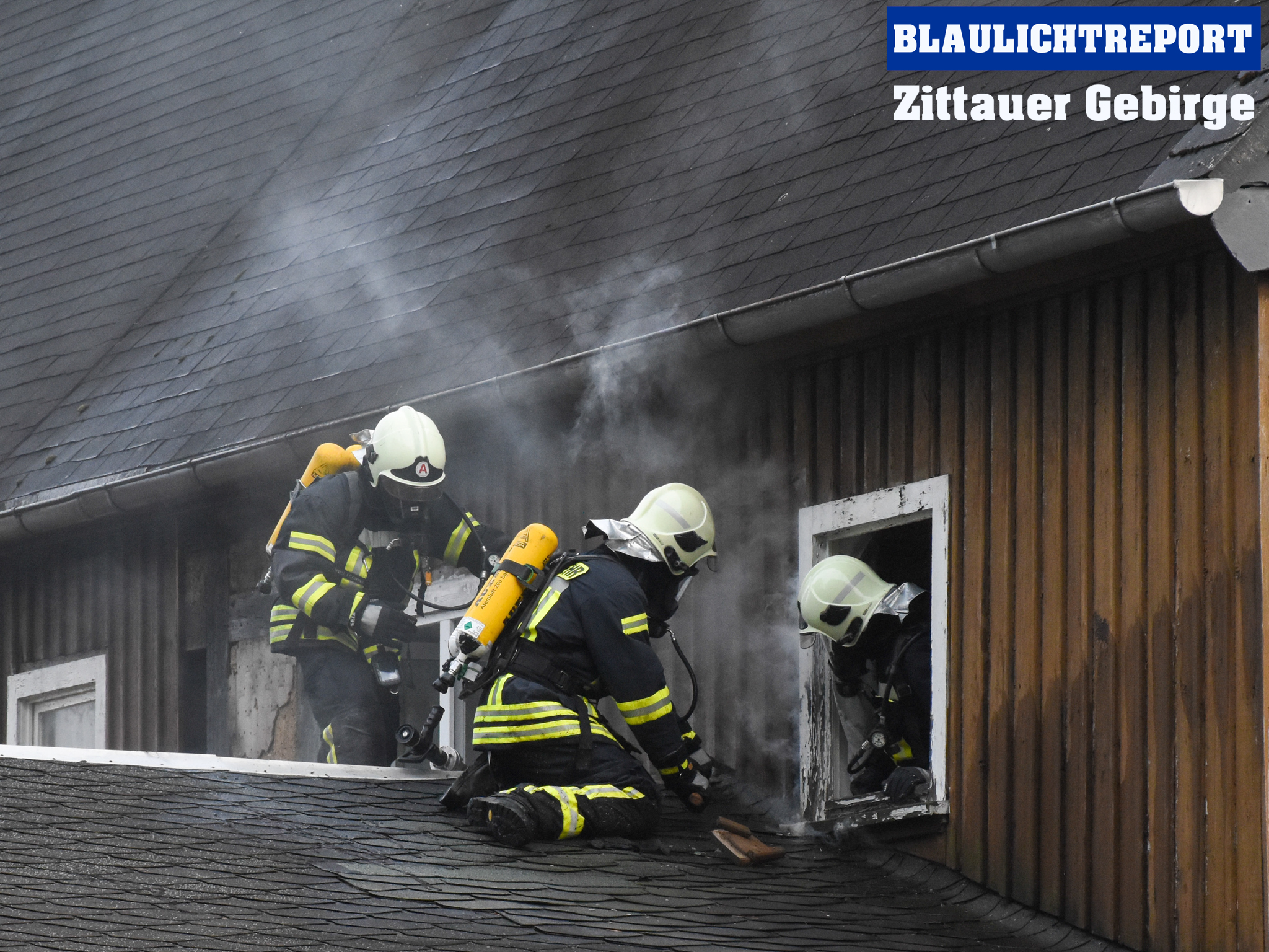 Die Gemeindefeuerwehr Leutersdorf wurde um 14:10 Uhr zu diesem Einsatz alarmiert, nachdem Zeugen auf das Feuer aufmerksam geworden waren. Beim Eintreffen des ersten Fahrzeugs haben sich die Flammen über die Fassade bis zum Dach ausgebreitet.