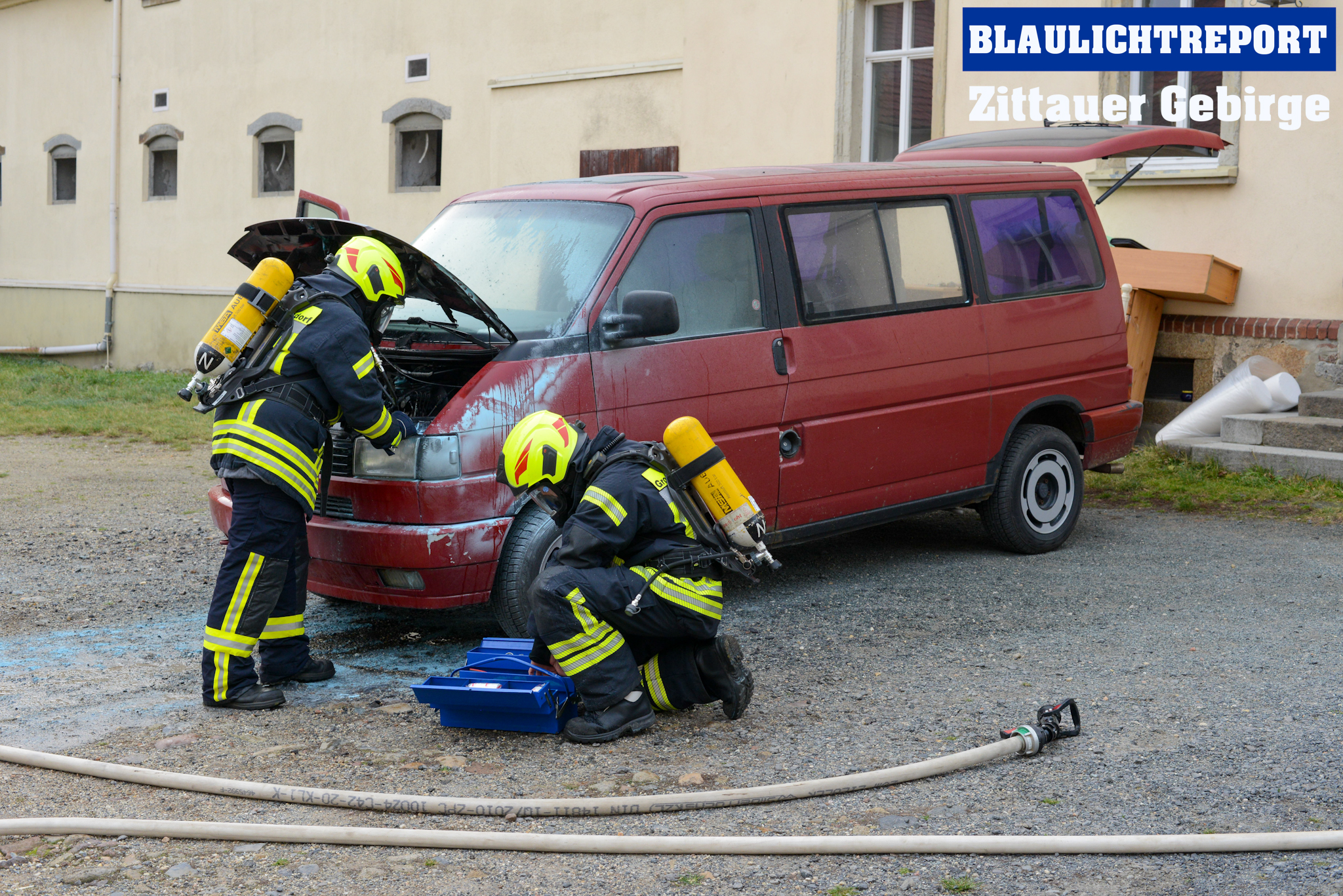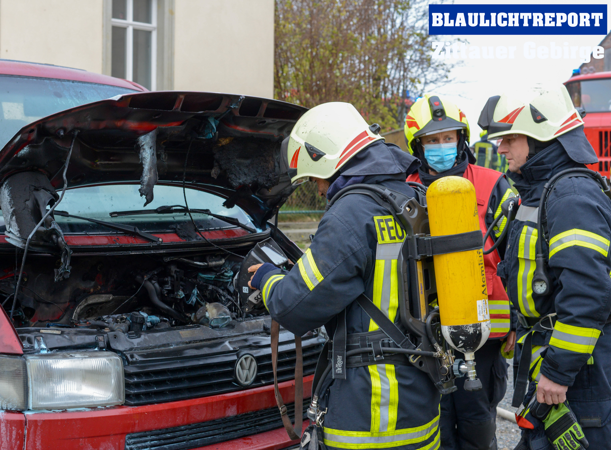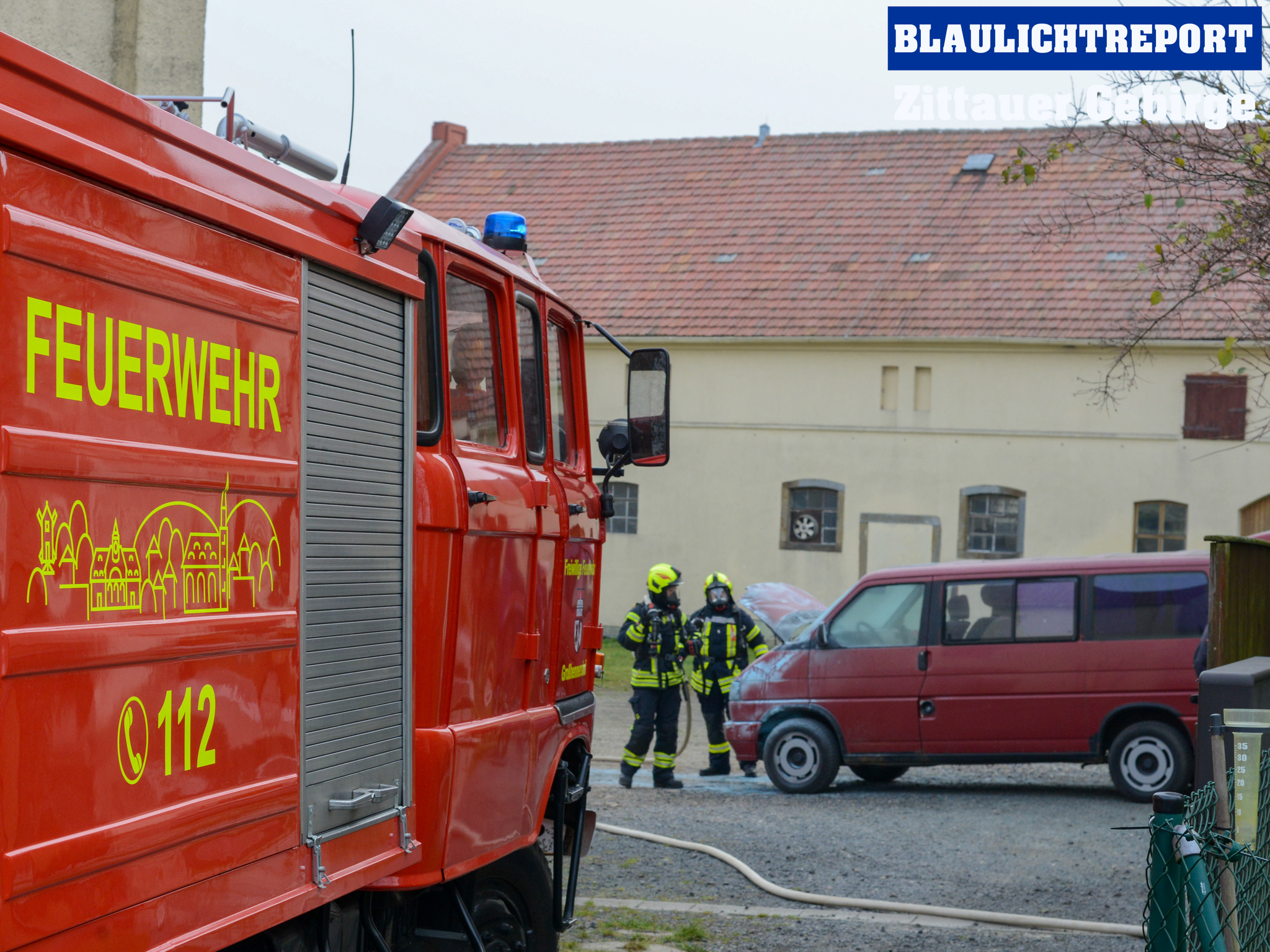 Ein Moment der Aufmerksamkeit und ein kontrolliertes aber auch besonnenes Eingriffen verhinderte am Samstag schlimmeres. Ein Kleinbus, der dicht an einem Gebäude im Vierseithof geparkt war, begann am Samstag im Motorraum zu brennen. Aufmerksam alarmierten zwei Herren die Feuerwehr und griffen zugleich selbst zum Feuerlöscher. Noch bevor die 13:23 Uhr alarmierte Feuerwehr den Einsatzort erreichte, konnten das Feuer weitesgehend gelöscht werden. Die Kameraden der Feuerwehr Großhennersdorf übernahmen unter schwerem Atemschutz die Restablöschung und klemmten die Batterie ab. Aus Herrnhut angeforderte Kräfte kontrollierten das Fahrzeug mit einer Wärmebildkamera ohne weitere Feststellungen. Insgesamt waren 20 Kameraden mit 3 Fahrzeugen im Einsatz. Die Ortsdurchfahrt war für ca 30 Minuten voll gesperrt.