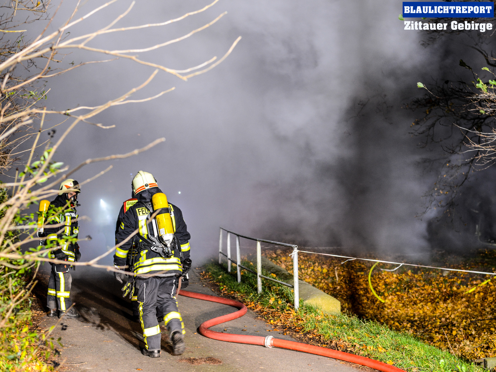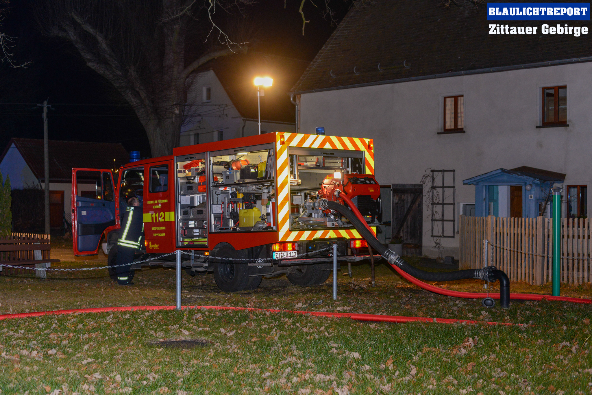 Kurz nach 20.30 Uhr wurde ein Anwohner von einer Detonation geweckt und wurde so auf das Geschehen aufmerksam und wählte den Notruf. 20.39 Uhr erfolgte Großalarm für die Feuerwehren um Neundorf.  An der Einsatzstelle eingetroffen bestätigte sich die Lage.  Unmittelbar begannen die ersten Kräfte mit einem Löschangriff im Bereich der Garage. Weitere Kameraden bauten parallel dazu zwei stabile Wasserversorgungen auf.  Ein Unterflurhydrant und eine Löschwasserzisterne wurden dazu genutzt.