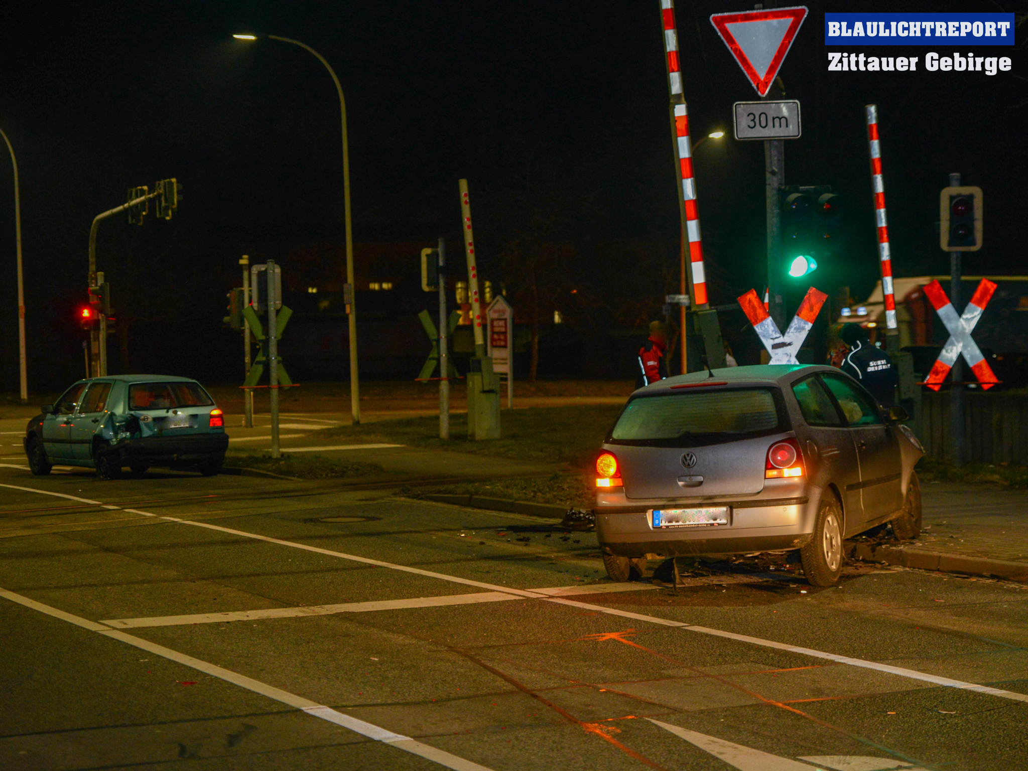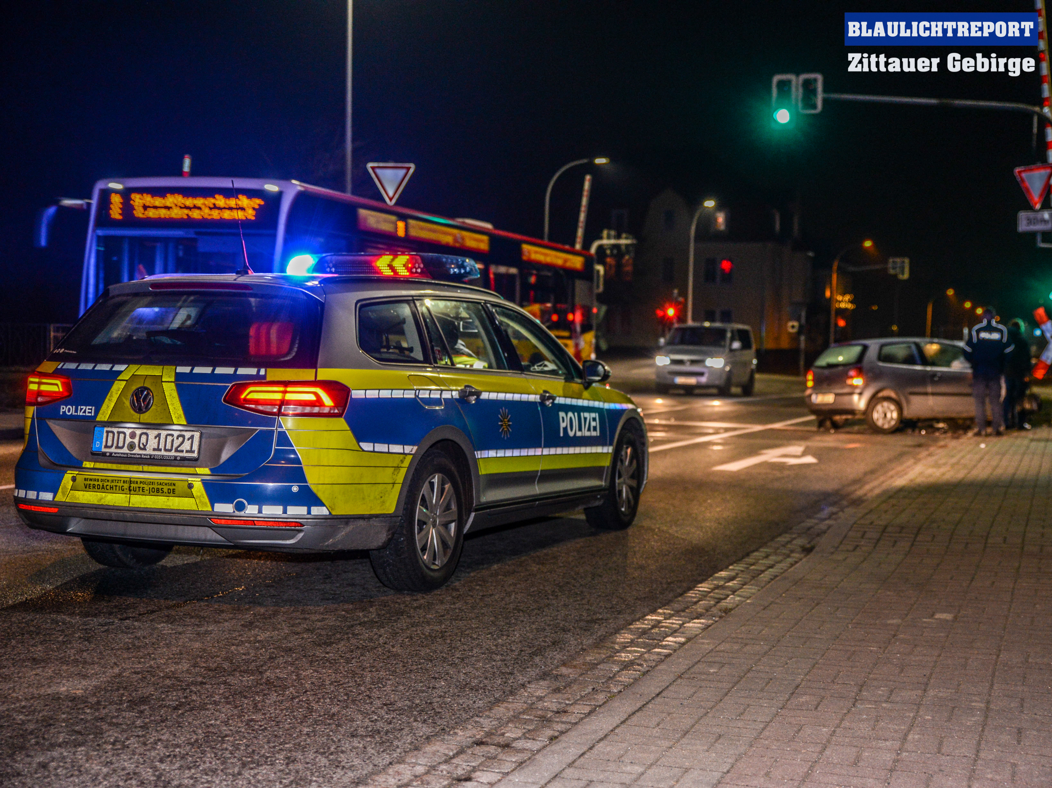 Ein Auffahrunfall unter erheblichen Alkoholeinfluss ereignete sich am Dienstagabend in Zittau. Ersten Erkenntnissen nach befuhr ein 24- jähriger mit seinem VW-Golf die Hochwaldstraße in Richtung Zentrum. An der Ampelkreuzung zur Schrammstraße musste er warten, da die Ampel Rot zeigte. Zur gleichen Zeit näherte sich eine 34- jährige ebenfalls mit einem VW in selber Fahrtrichtung der Ampelkreuzung. Die Polo-Fahrerin konnte ihr Fahrzeug jedoch nicht mehr rechtzeitig bremsen und fuhr auf den Golf auf.
