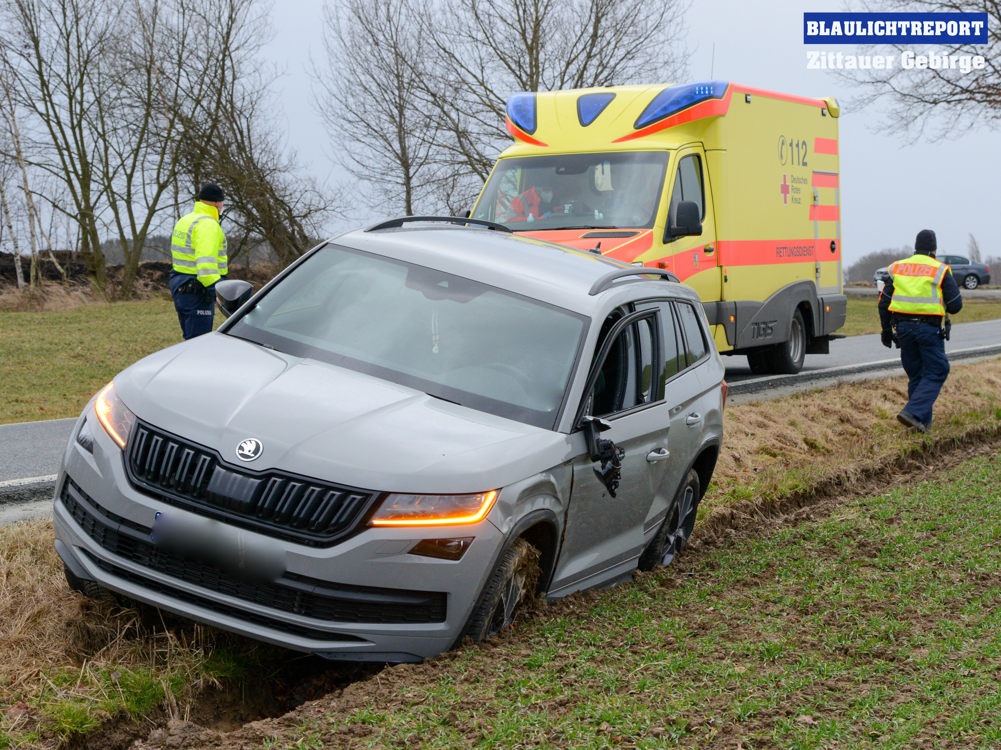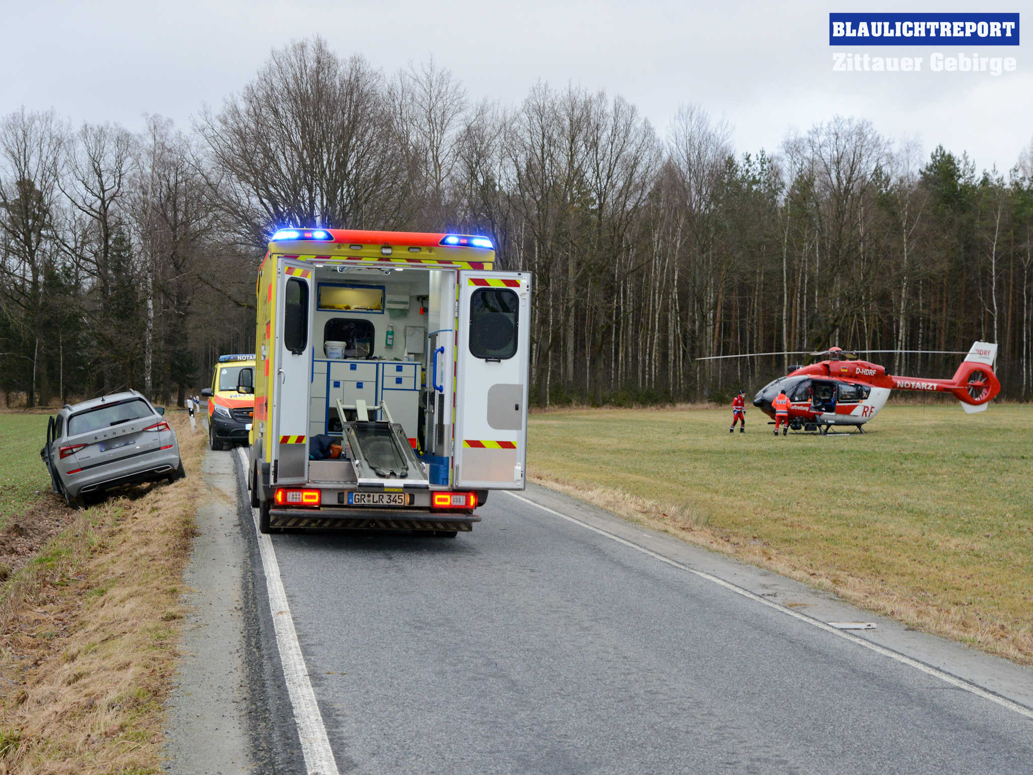 Unbestätigten Angaben nach ist der Fahrer in Richtung Dürrhennersdorf unterwegs gewesen, als er seitlich mit einem Baum kollidierte und in den Graben fuhr. Rettungskräfte wurden unter dem Stichwort „H2- PKW gegen Baum“ alarmiert und eilten zur Unfallstelle. Beim Eintreffen bestätigte sich die Lage nicht, was ein weiteres Handeln der Feuerwehr nicht nötig machte. Der Rettungsdienst versorgte den Patienten und übergab diesen an die Luftretter der DRF, Christoph 62. Dieser flog die verletzte Person in ein Klinikum.