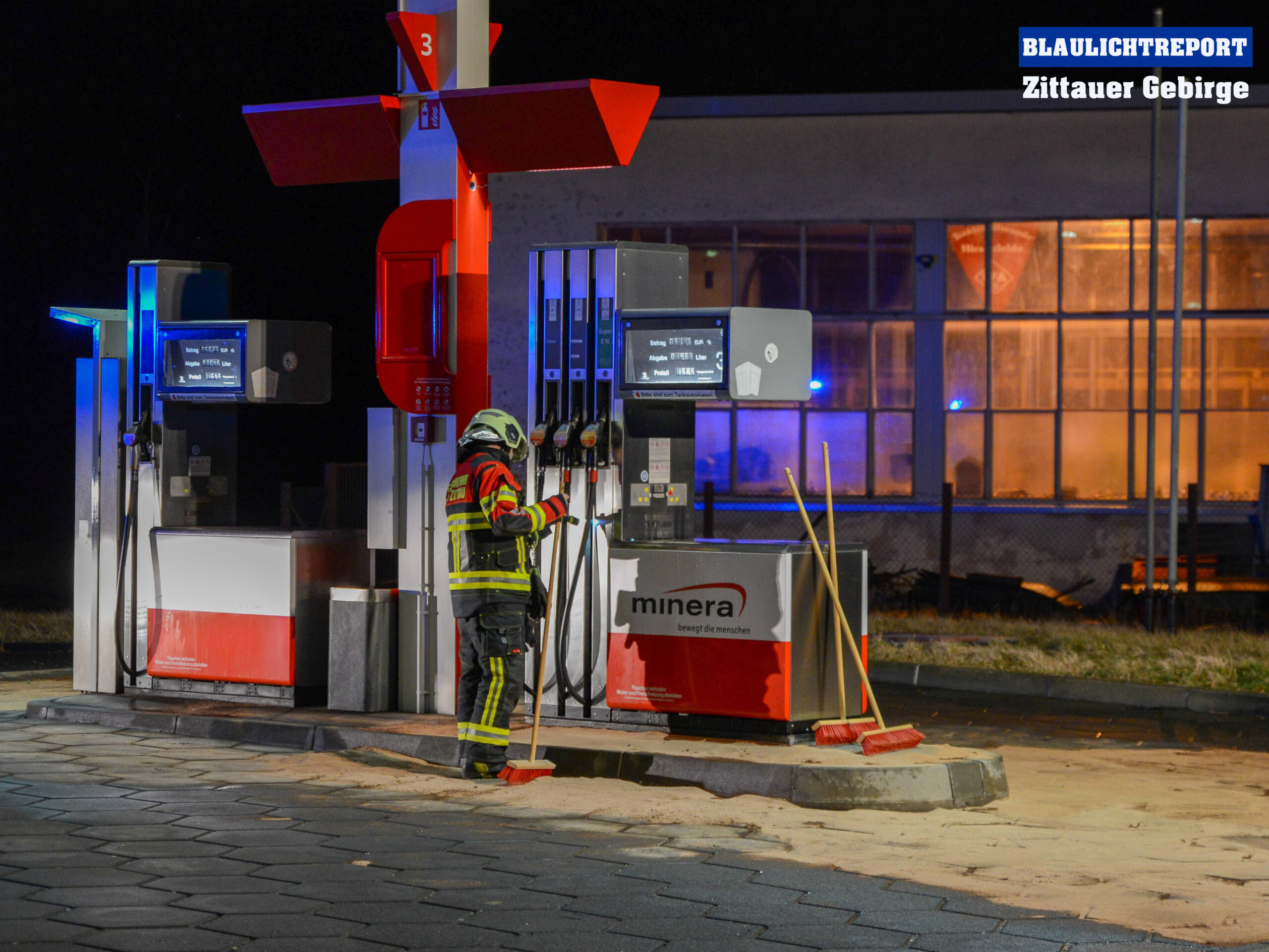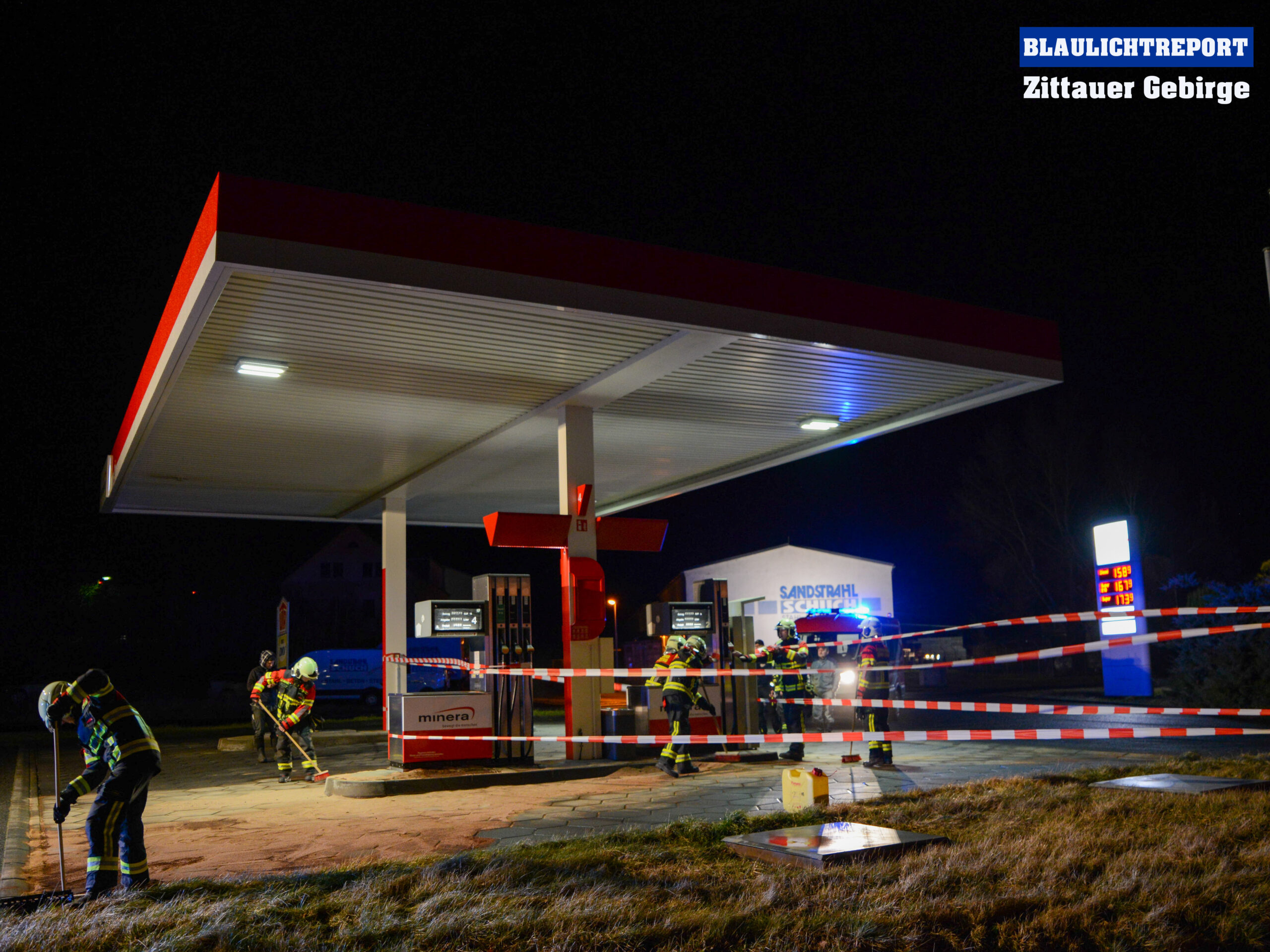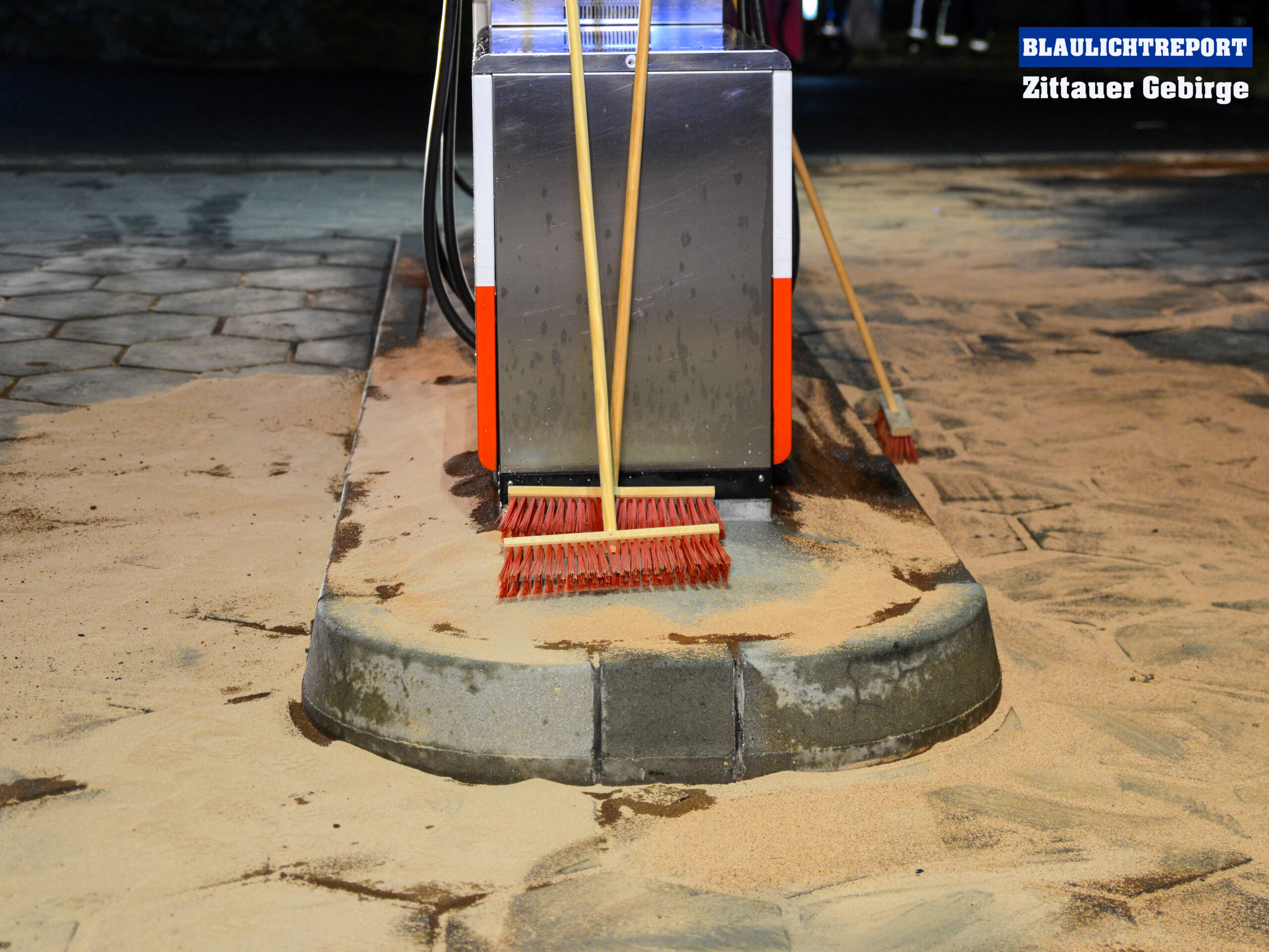 Die Feuerwehr rückte mit drei Fahrzeugen an, band den ausgetretenen Kraftstoff, sperrte das Tankstellengelände ab und schaltete diese stromlos.