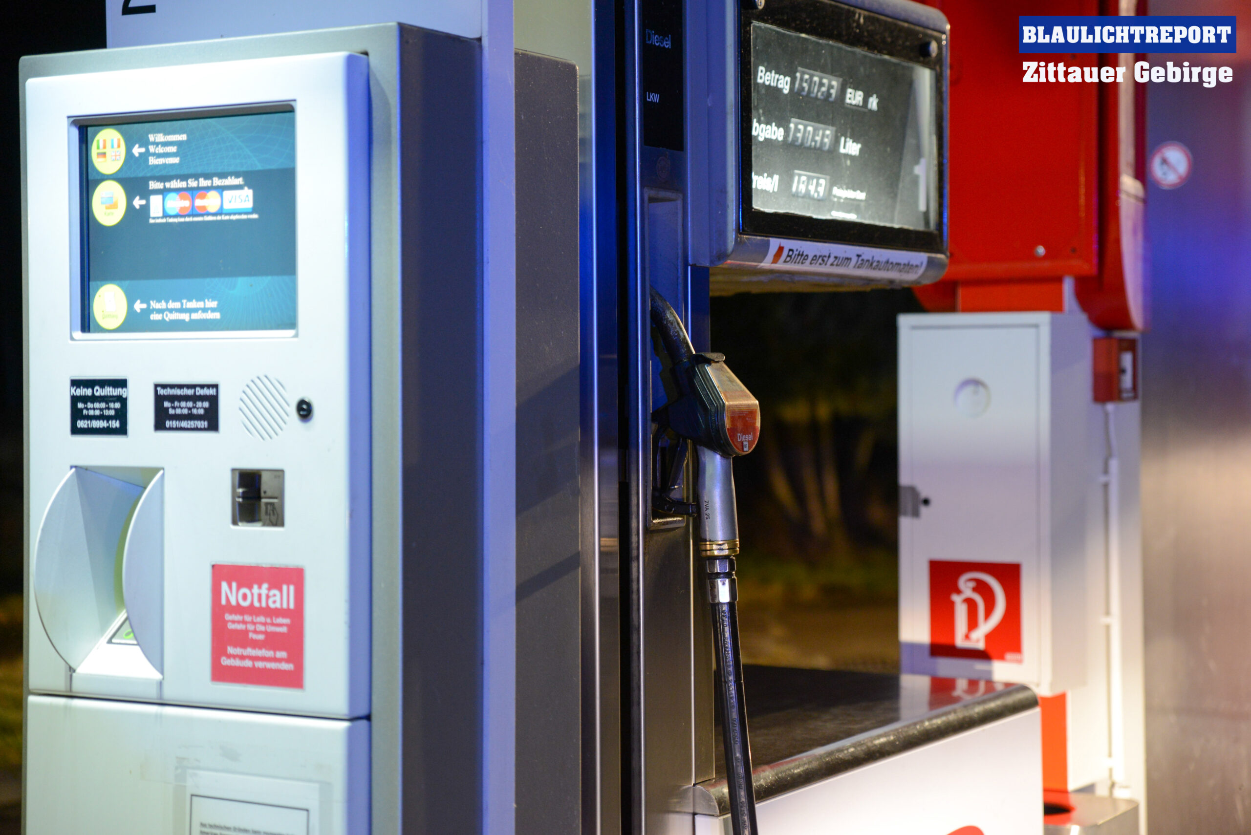 Hirschfelde – An einer Zapfsäule der Tankstelle an der Zittauer Straße ist am Sonntagabend kontinuierlich Kraftstoff ausgelaufen.