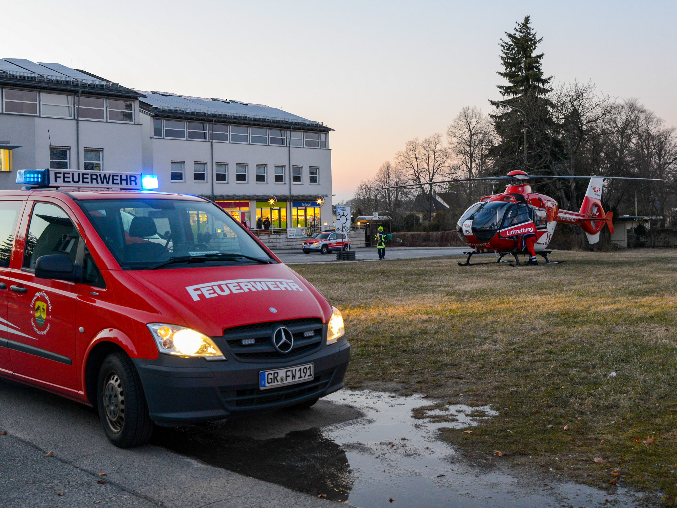 Im Einsatz waren 40 Kameraden der Feuerwehr mit 10 Fahrzeugen, der Rettungsdienst mit 2 RTW, einem NEF und die Luftrettung mit einem RTH (Christoph 114).