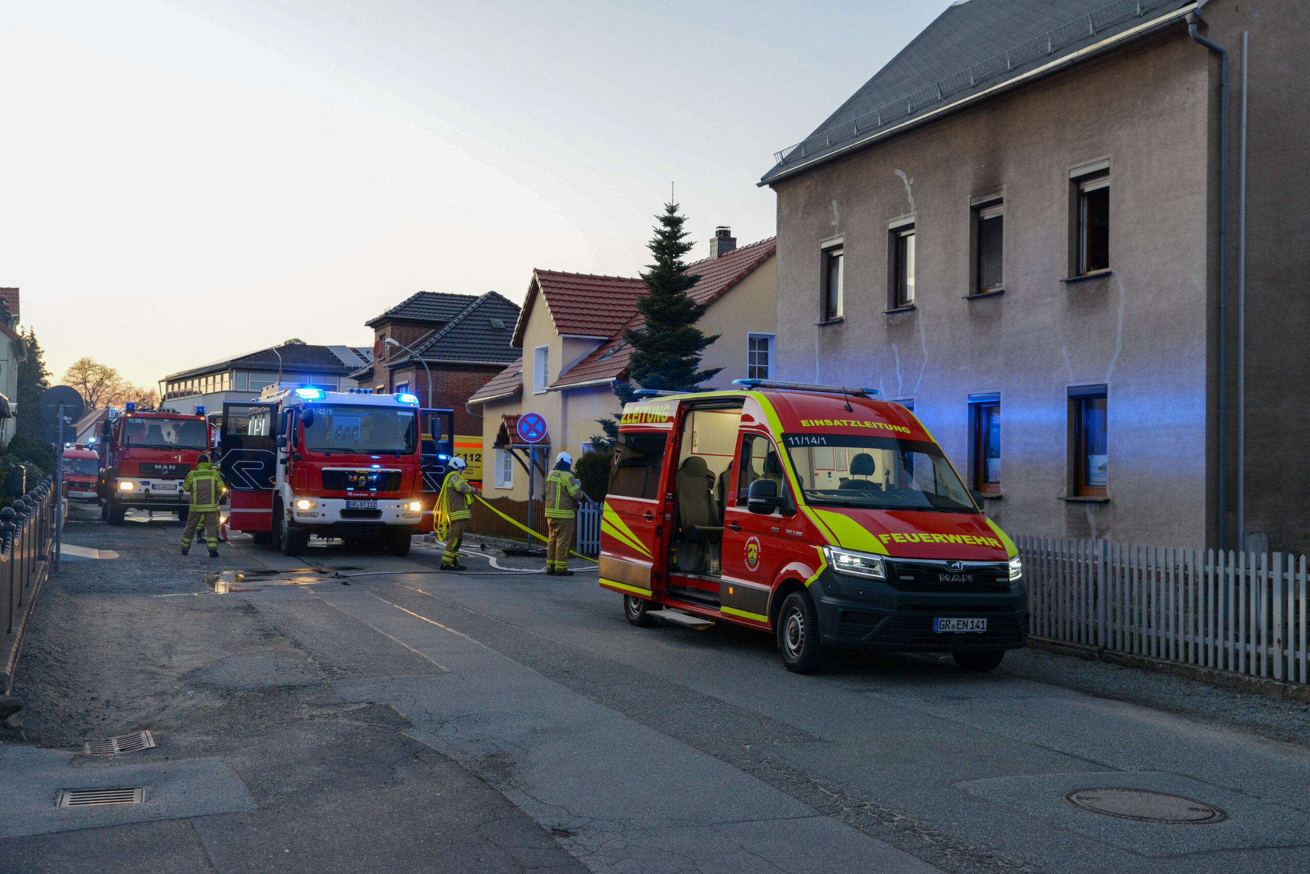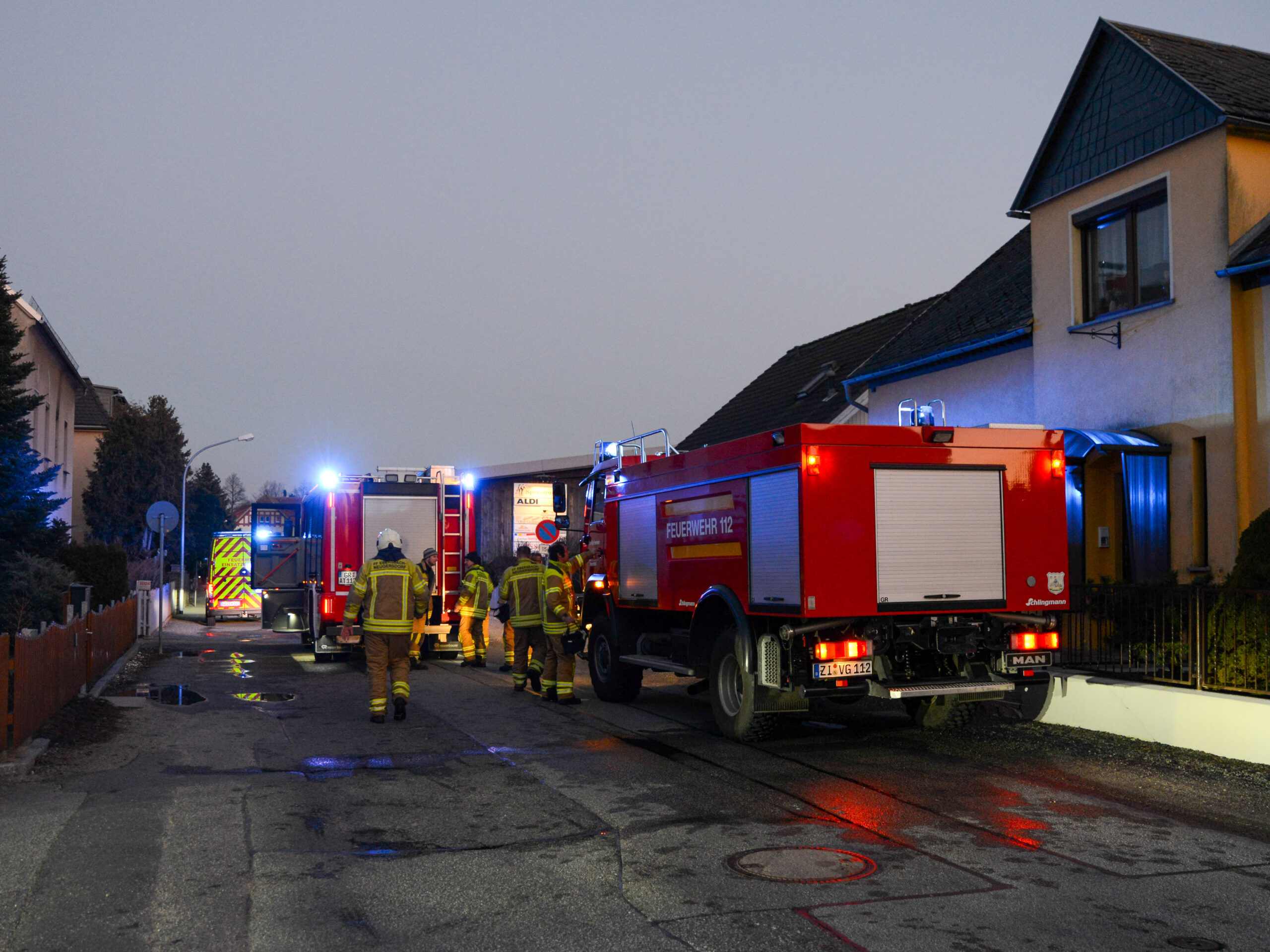 Es war 17:18 Uhr, als die Kameraden in die Spreequellstraße im Ortsteil Neugersdorf alarmiert wurde. Dort wurde ein Brand gemeldet, Personen sollten sich im Haus befinden. Beim Eintreffen der ersten Einsatzkräfte bestätigte sich die Lage und zwei Personen befanden sich noch im Gebäude. Unter schwerem Atemschutz rückten Kameraden zur Menschenrettung vor. Eine Person konnte im verrauchten Treppenhaus- und eine in der Küche feststgestellt werden. Beide wurden aus dem Haus gebracht und dem Rettungsdienst übergeben.