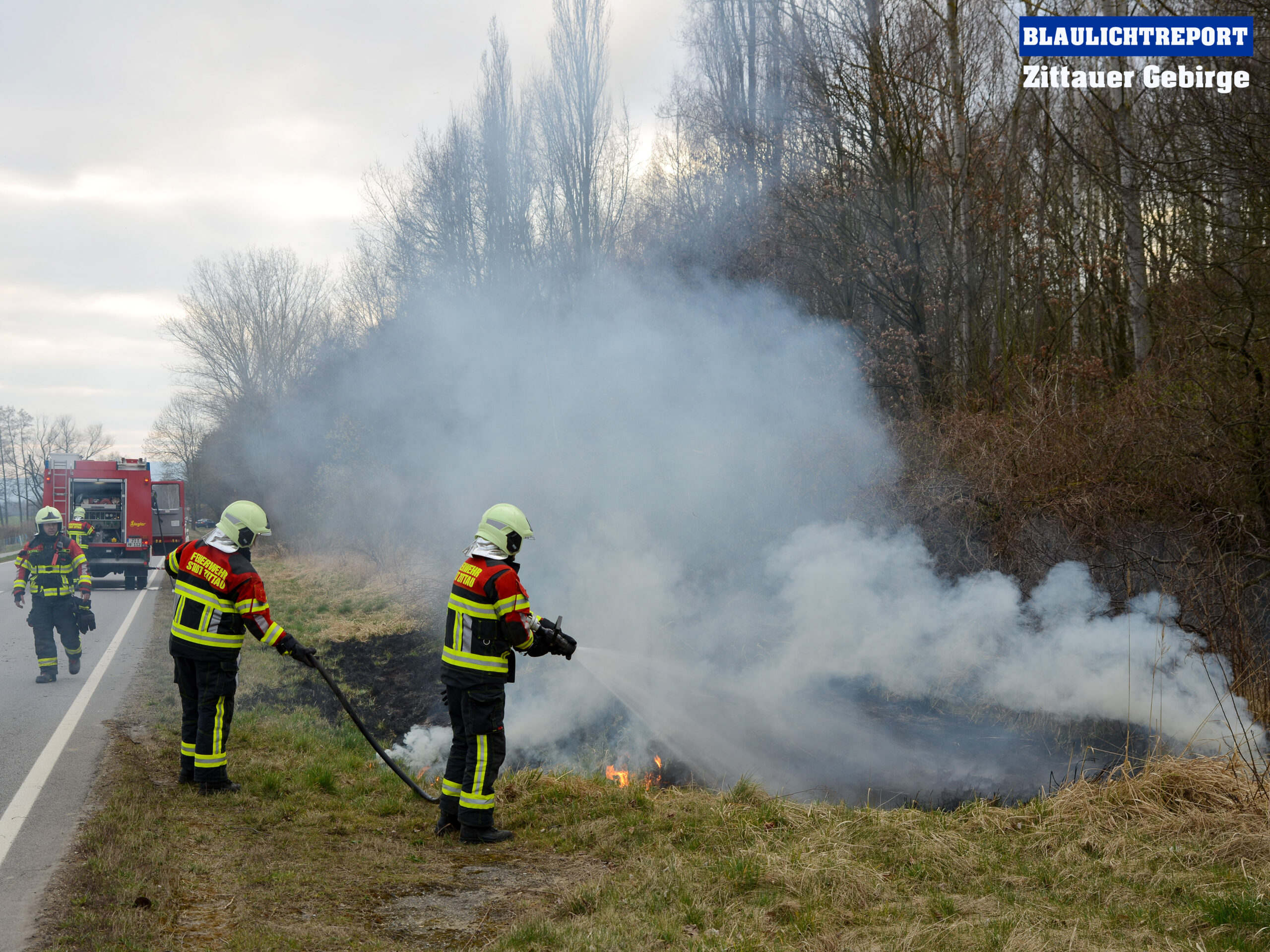 Hirschfelde – Am Nachmittag wurde die Feuerwehr Hirschfelde zu einem Ödlandbrand an der B99 in Richtung Zittau alarmiert. Am Straßenrand brannten ca 50m² Quadratmeter Ödland. Mittels Schnellangriff löschten die Kameraden das Feuer. Kurzzeitig wurde die Einsatzstelle vollständig gesperrt, bevor die Polizei den Verkehr an der wechselseitig vorbei leitete.