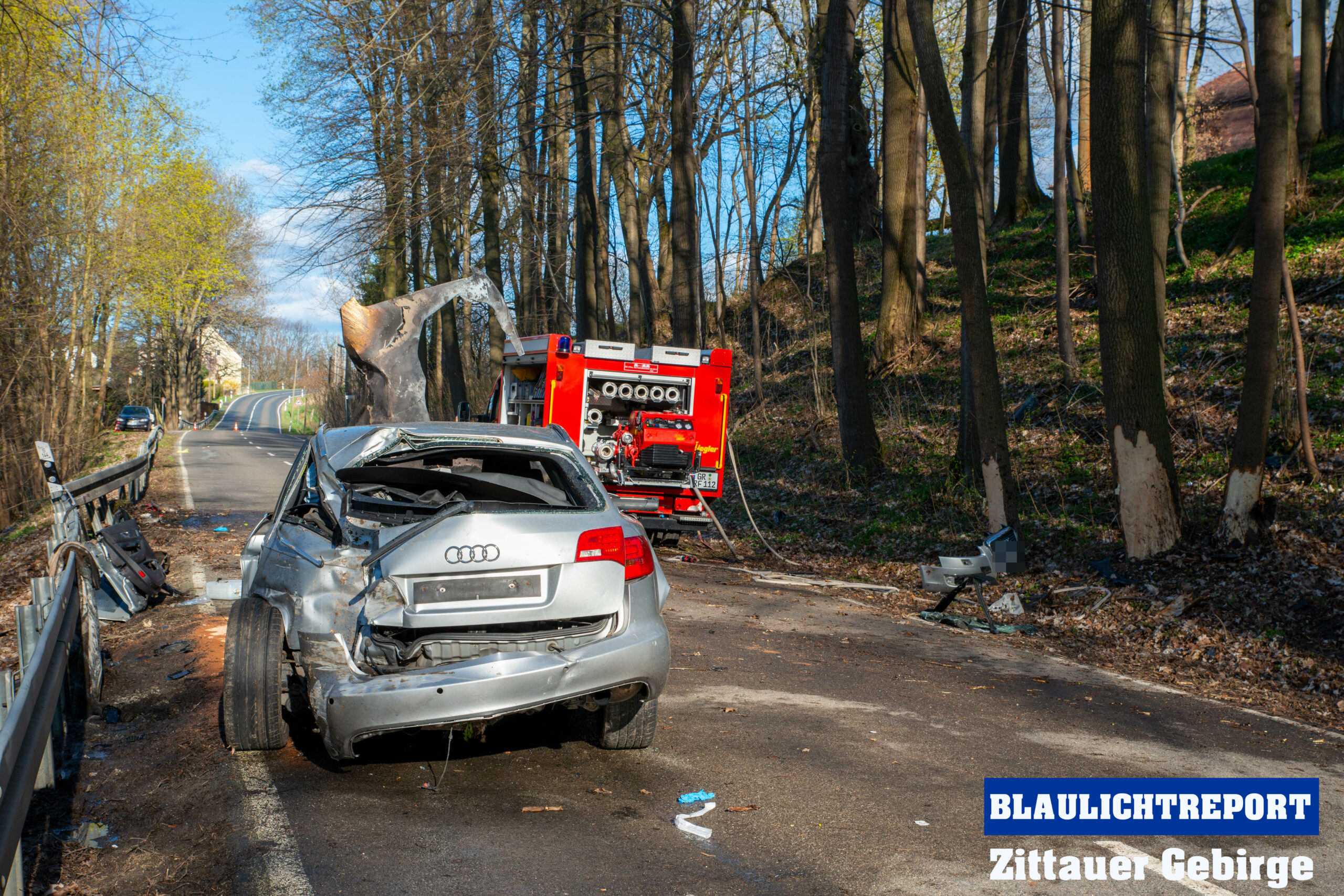 Am Samstagnachmittag befuhr ein 41- Jähriger mit seinem Audi die S144 aus Herrnhut kommend in Richtung Bernstadt. Auf der Strecke verlor er offenbar, aus bislang ungeklärter Ursache, die Kontrolle über das Fahrzeug. Er kam nach rechts von der Fahrbahn ab, kollidierte mit mehreren Bäumen, bevor er auf der Gegenfahrbahn in der Leitplanke einschlug und zum Stehen kam. Ersthelfer versuchten dem Man zur Hilfe zu kommen, konnten ihn aber nicht aus dem Fahrzeug befreien.