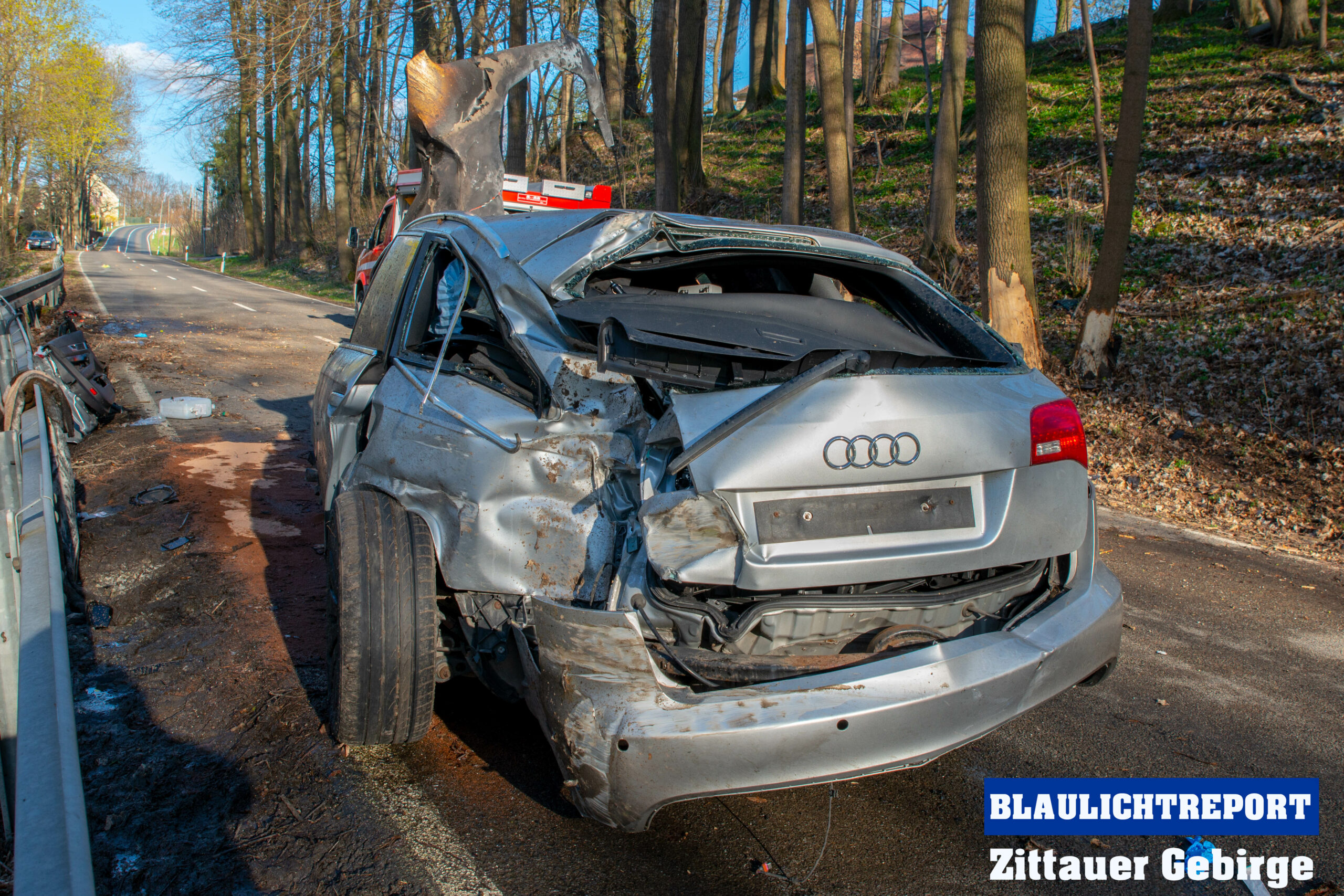 Rennersdorf – Am Samstagnachmittag kam es auf der S144 zu einem schweren Unfall, als ein 41-Jähriger in seinem Audi gegen mehrere Bäume kracht.