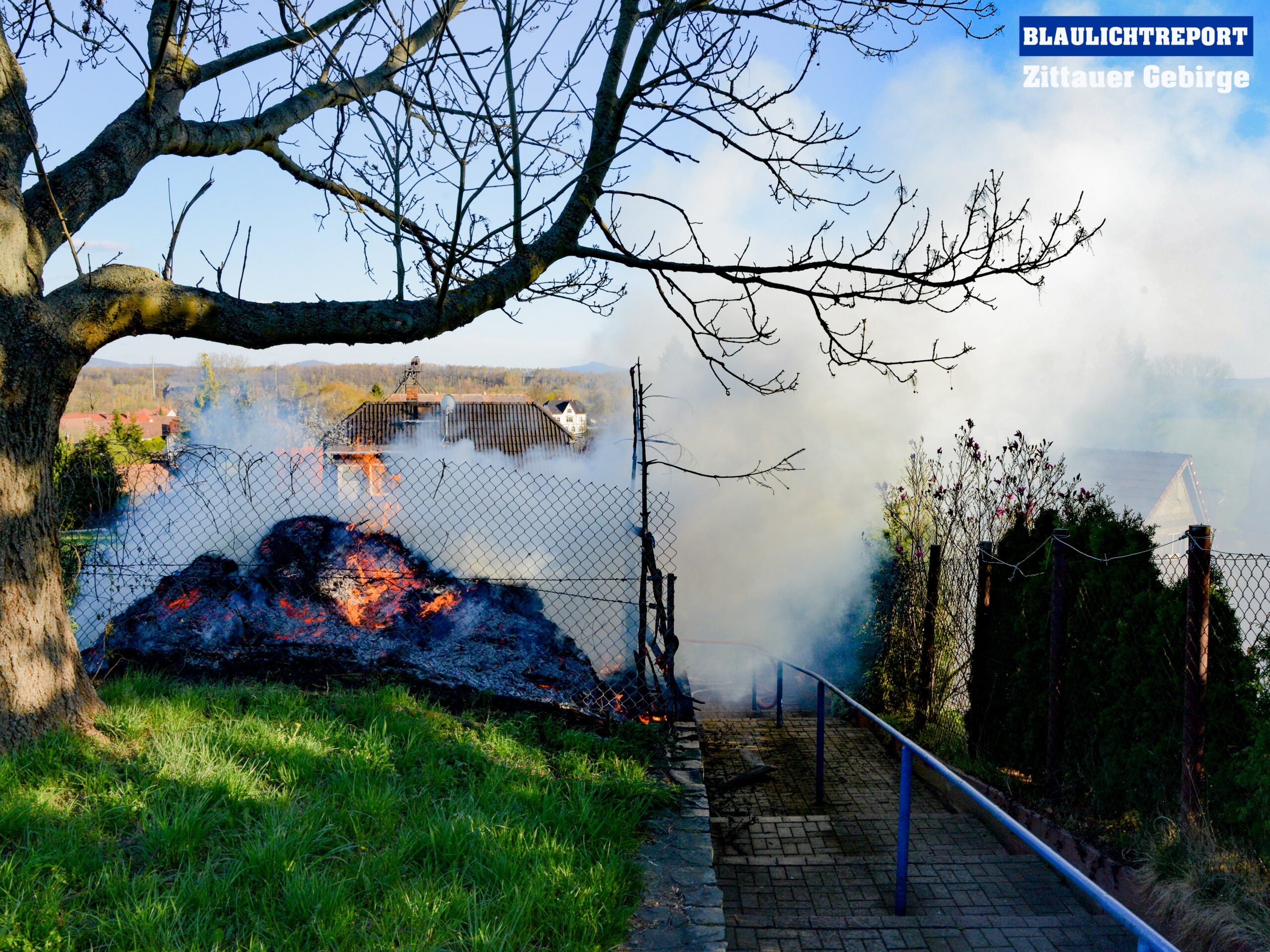 Bereits auf der Anfahrt war eine Rauchwolke zu sehen. Auf einem Grundstück an der August-Bebel-Straße geriet aus bislang ungeklärter Ursache ein Komposthaufen in Brand. Die Feuerwehr, die mit vier Fahrzeugen angerückt war, stellte die Wasserversorgung von einem Hydranten sicher und löschte den Brand mit 2 C-Rohren. Ein Übergreifen des Feuers auf eine gegenüberliegende Hecke konnte verhindert werden. Der Zaun am Grundstück war nicht mehr zu retten. Während der Restablöscharbeiten zogen die Kameraden den Haufen auseinander, um so auch an versteckte Glutnester zu kommen.