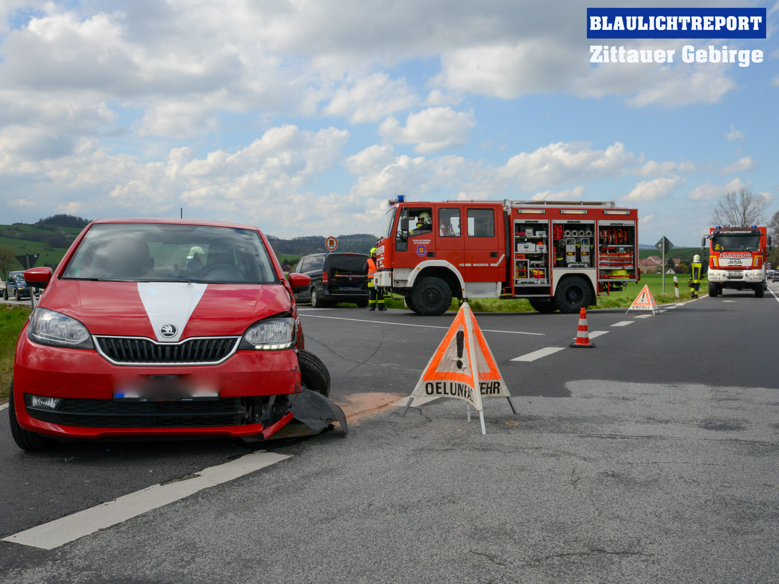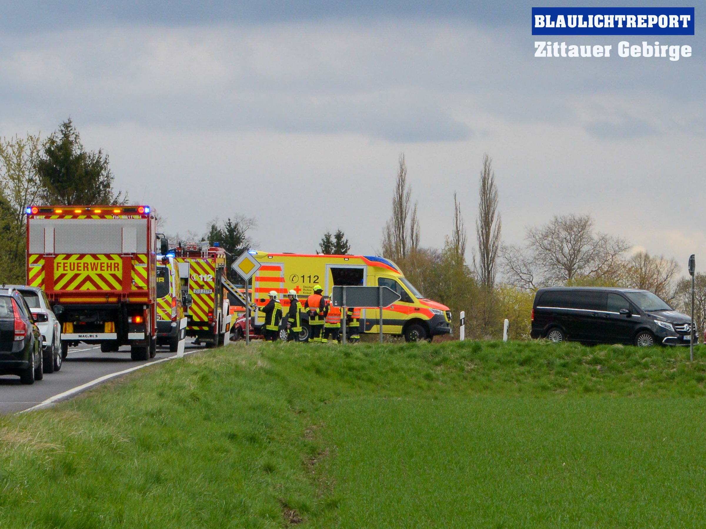 Die Feuerwehr Mittelherwigsdorf rückte an, um ausgelaufene Betriebsstoffe aufzunehmen und die Unfallstelle abzusichern.