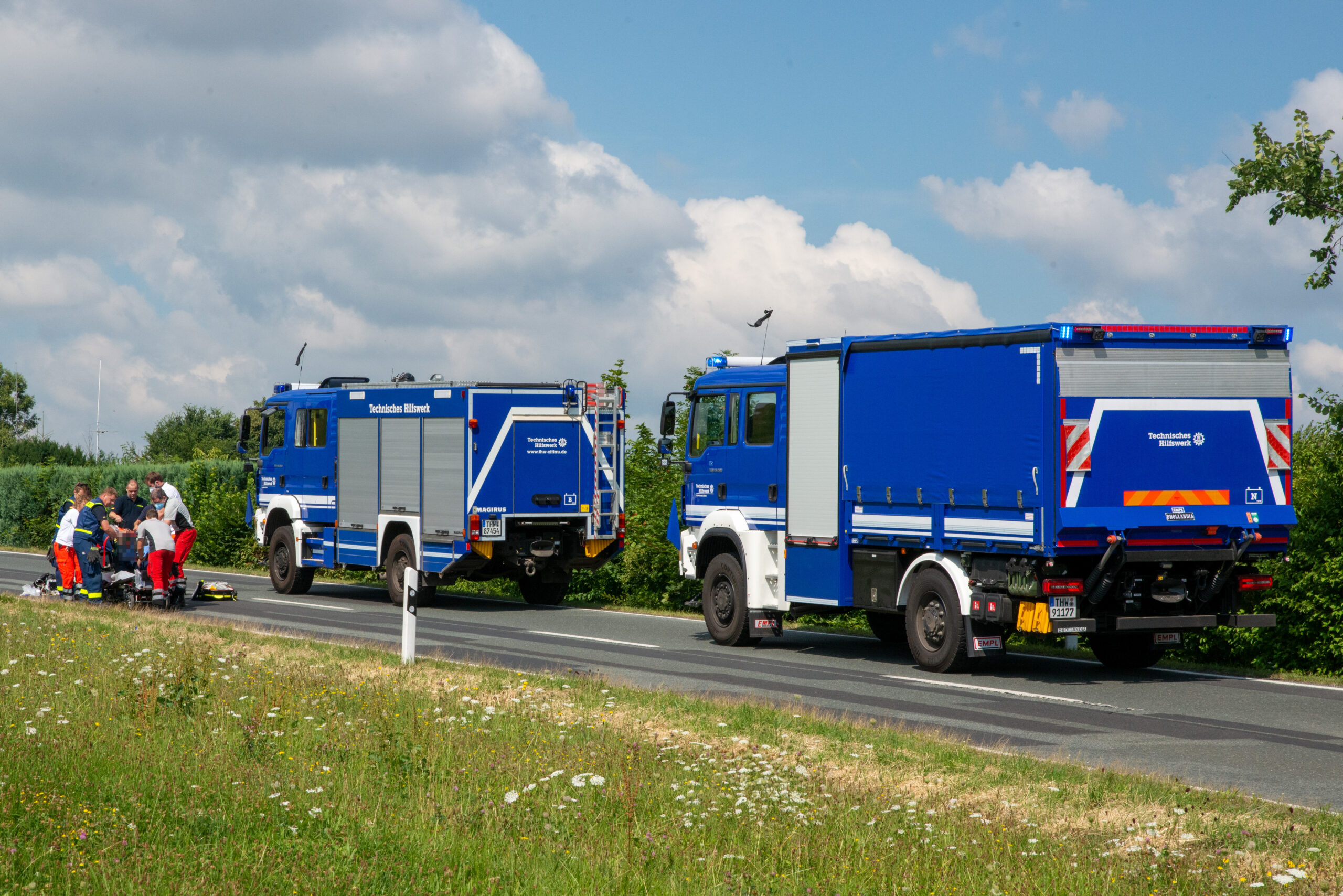 Ersthelfer kümmerten sich um den Verletzten. Auch der Ortsverband Zittau des Technischen Hilfswerks war zu der Zeit auf der Strecke unterwegs. Die Helferinnen und Helfer unterstützen vor Ort und sicherten die Unfallstelle mit ihren Fahrzeugen ab. Im Anschluss unterstützen sie den Rettungsdienst.