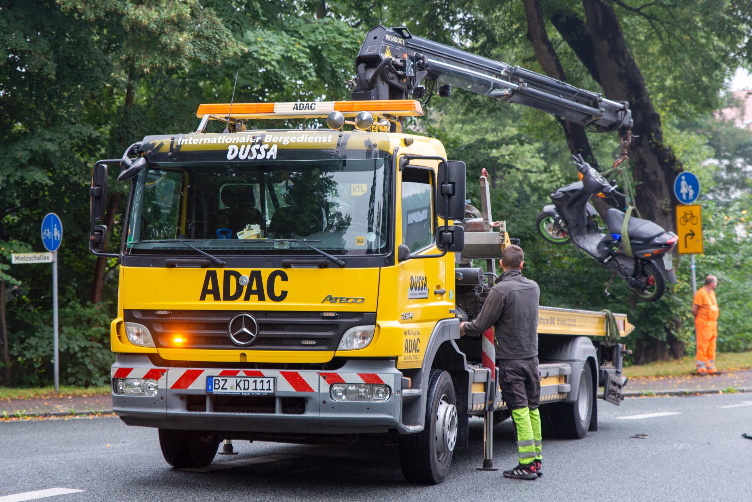 Am Mittwochmorgen hat ein LKW-Fahrer an der B99 einem Roller-Fahrer die Vorfahrt genommen, das teilte die Polizei am Nachmittag mit. Demnach befuhr der Kraftfahrer die Mietzschallee und beabsichtigte dann nach links auf die Bundesstraße 99 abzubiegen. Dabei übersah er offenbar den von links kommenden Roller-Fahrer. Da der stadtauswärts fahrende 45-Jährige Roller-Fahrer diese bemerkte, versuchte er abzubremsen und stürzte daraufhin. Der Roller geriet in der Folge unter den Tonnen schweren LKW. Der Mann wurde mit leichten Verletzungen in ein Krankenhaus gebracht. Wie die Polizei weiter mitteilt, entstand ein schaden von etwa 3.000€.