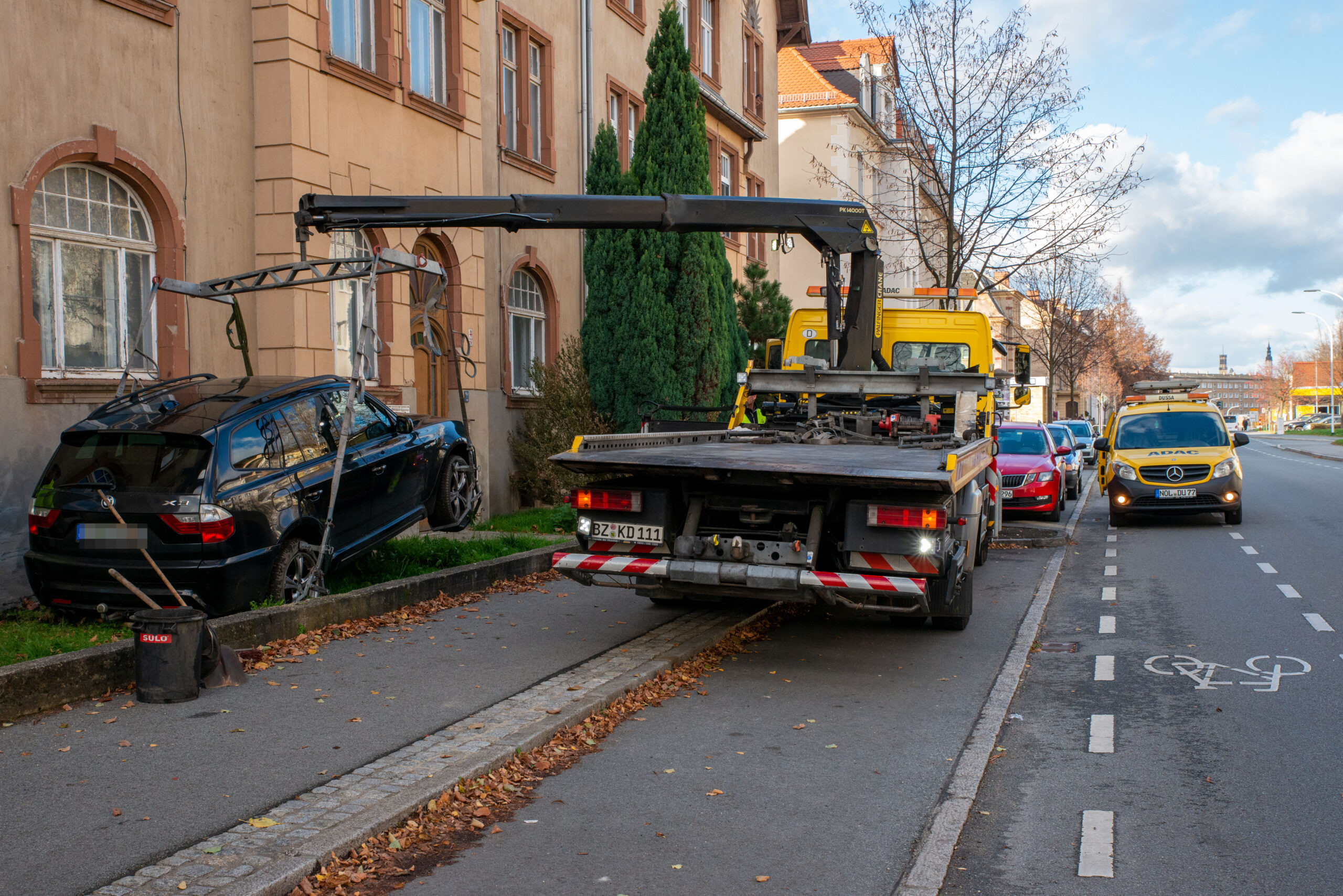 Nach ersten Erkenntnissen befuhr die Autofahrerin mit ihrem BMW X3 die Südstraße stadteinwärts. Aus ungeklärter Ursache kam sie mit ihren Wagen nach links von der Fahrbahn ab und kollidierte dabei mit einem geparkten Citroën, durchbrach ein Baumschutz und krachte anschließend gegen eine Hauswand. Anwohner schreckten durch den Knall auf und schauten nach der Ursache. Sie kamen der Fahrerin zur Hilfe und alarmierten Rettungskräfte. Sie wurde in ein Krankenhaus gebracht. Nach ersten Ermittlungen könnte ein medizinischer Notfall, den Kontrollverlust ausgelöst haben, so die Polizei.