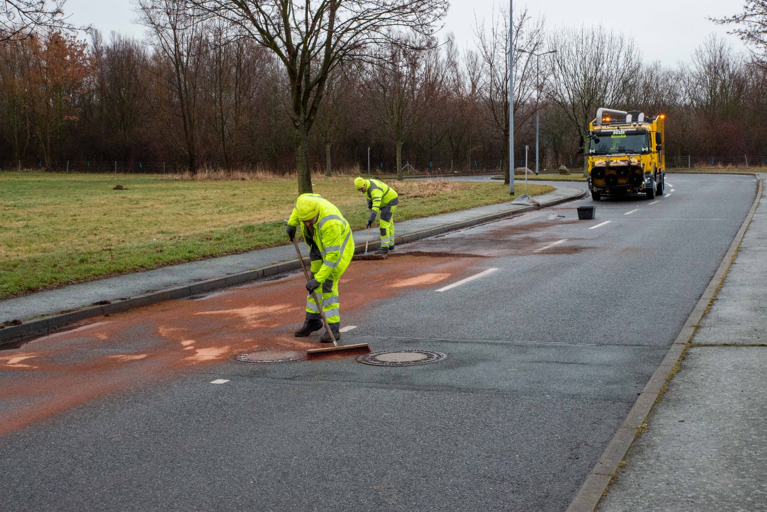 Durch den Diebstahl gelang Kraftstoff aus dem Tank und verteilte sich auf der Straße. Dort drohte er in die Kanalisation zu fließen und musste nach dem Abdichten des Gully von der Feuerwehr abgebunden und anschließend durch eine Spezialfirma beseitigt werden.