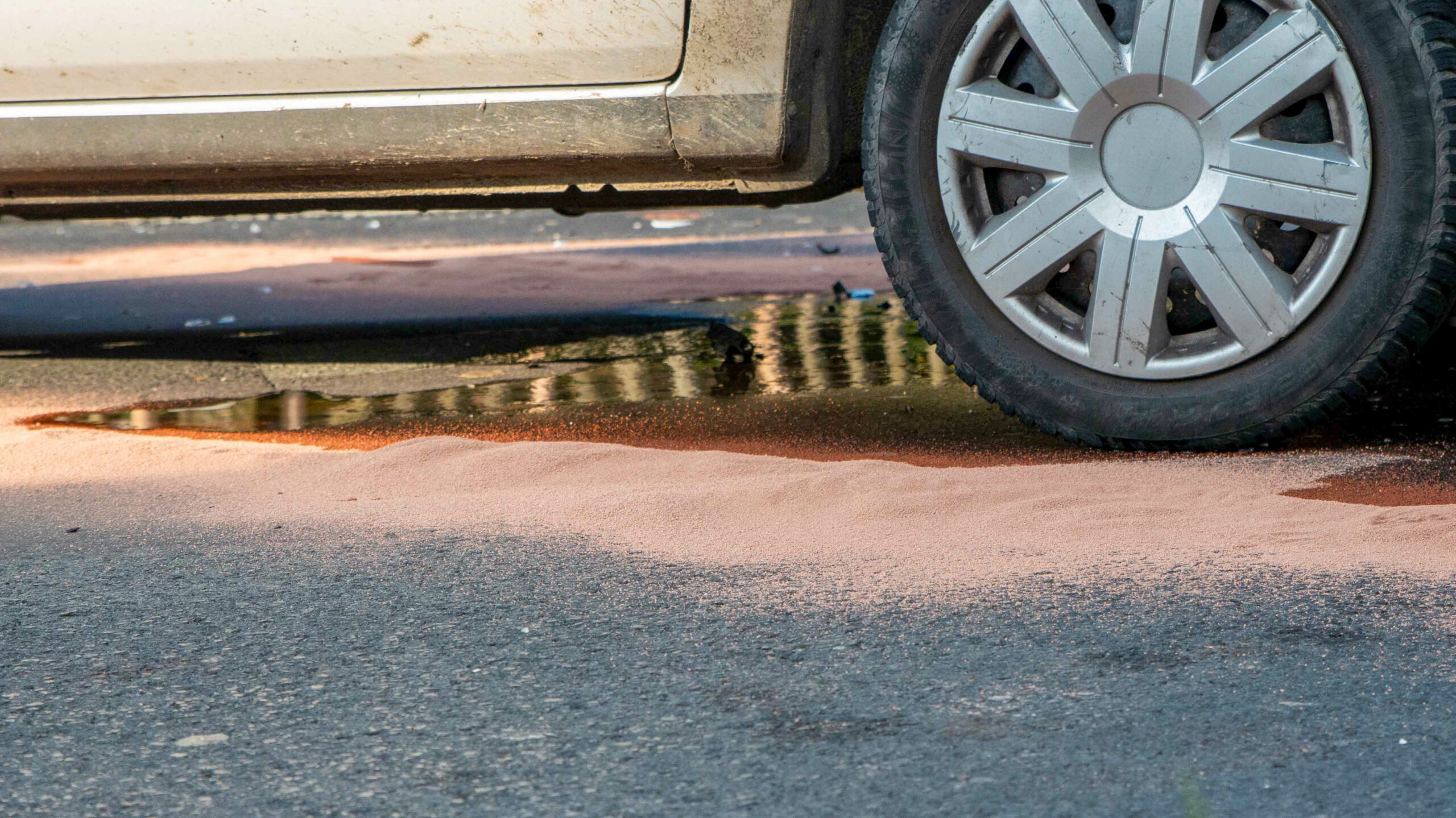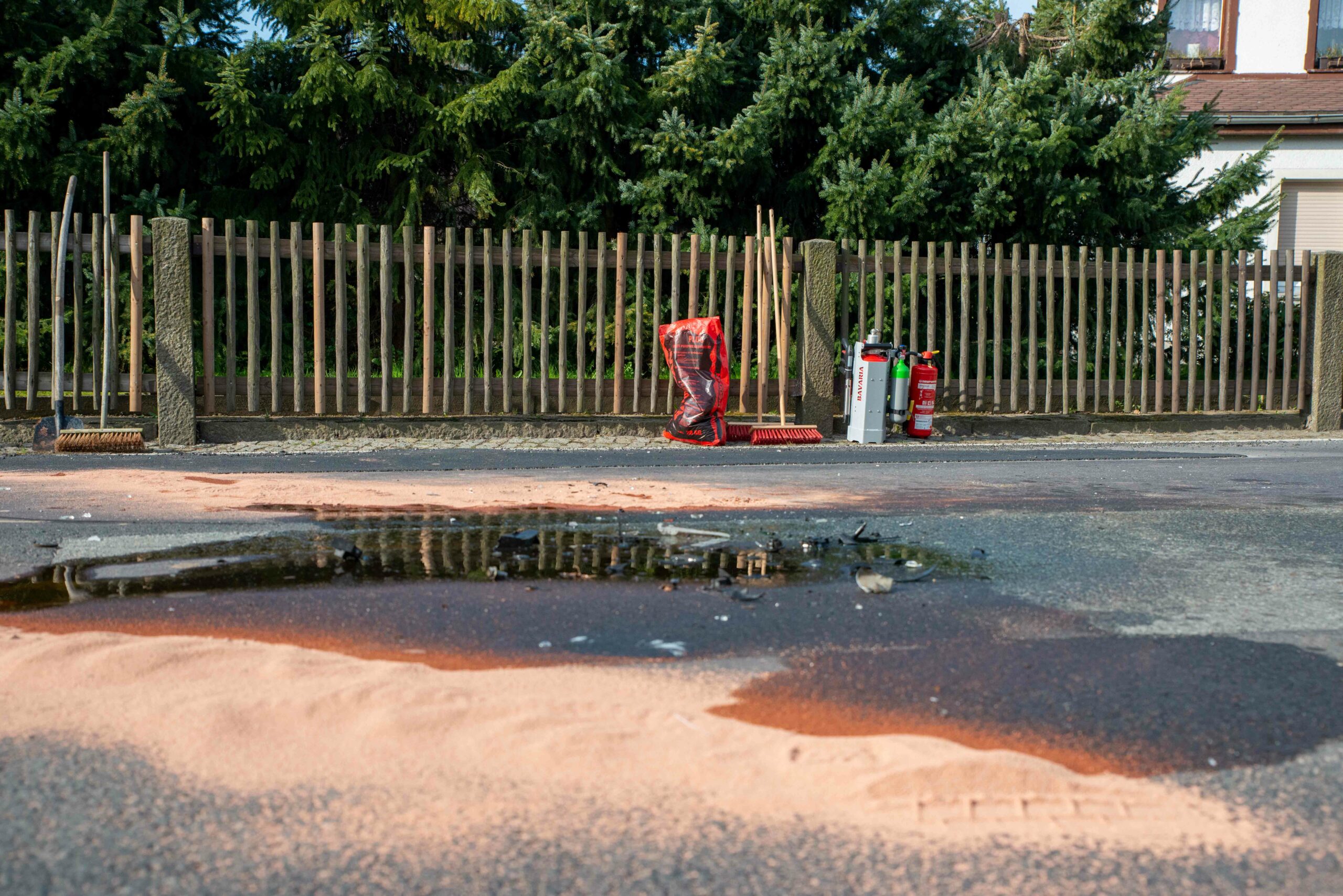 Die Bundesstraße 96 war für etwa drei Stunden voll gesperrt, da eine Fachfirma die Reinigung der Fahrbahn übernehmen musste.
