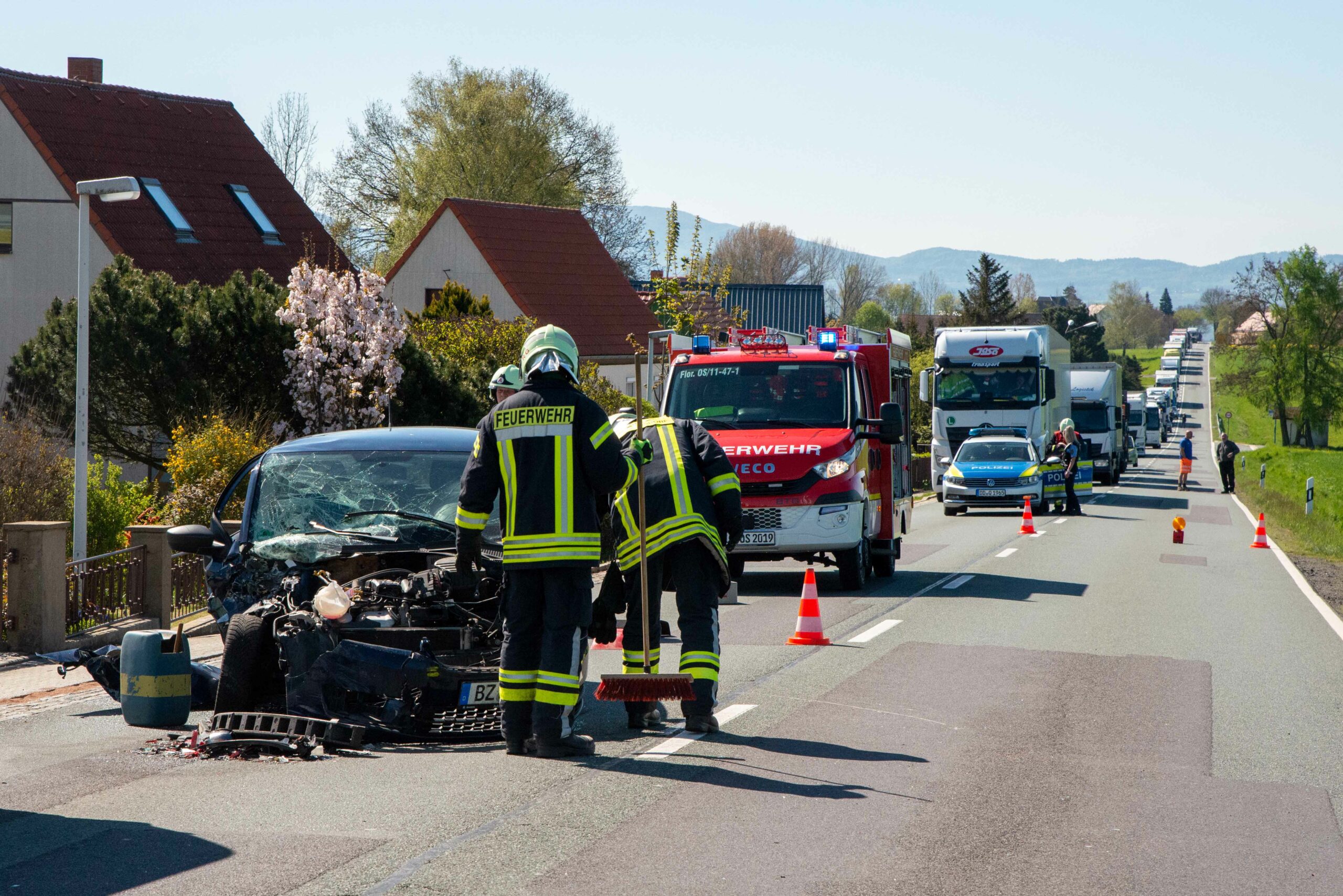 Oberseifersdorf – Bei einem Unfall auf der B178 ist am Dienstagvormittag eine Frau verletzt worden. Die Fahrerin des Skoda war auf der B178 (Löbauer Straße) in Richtung Großhennersdorf unterwegs. Der Fahrer des Transporters eines Paketunternehmens hielt derweil in selber Richtung auf der Straße, um ein Paket zuzustellen. Die Skoda-Fahrerin hatte dies offenbar nicht wahrgenommen und krachte ungebremst auf das Heck des Sprinters. Dabei wurde sie verletzt und kam in ein Klinikum. Die B178 war für knapp zwei Stunden voll gesperrt. Eine Fachfirma wird für die Reinigung der Unfallstelle übernehmen. Die Feuerwehr Oberseifersdorf rückte mit einem Fahrzeug an. Die Kameraden banden die ausgelaufenen Betriebsstoffe, stellten den Brandschutz sicher und sicherten die Unfallsstellte.
