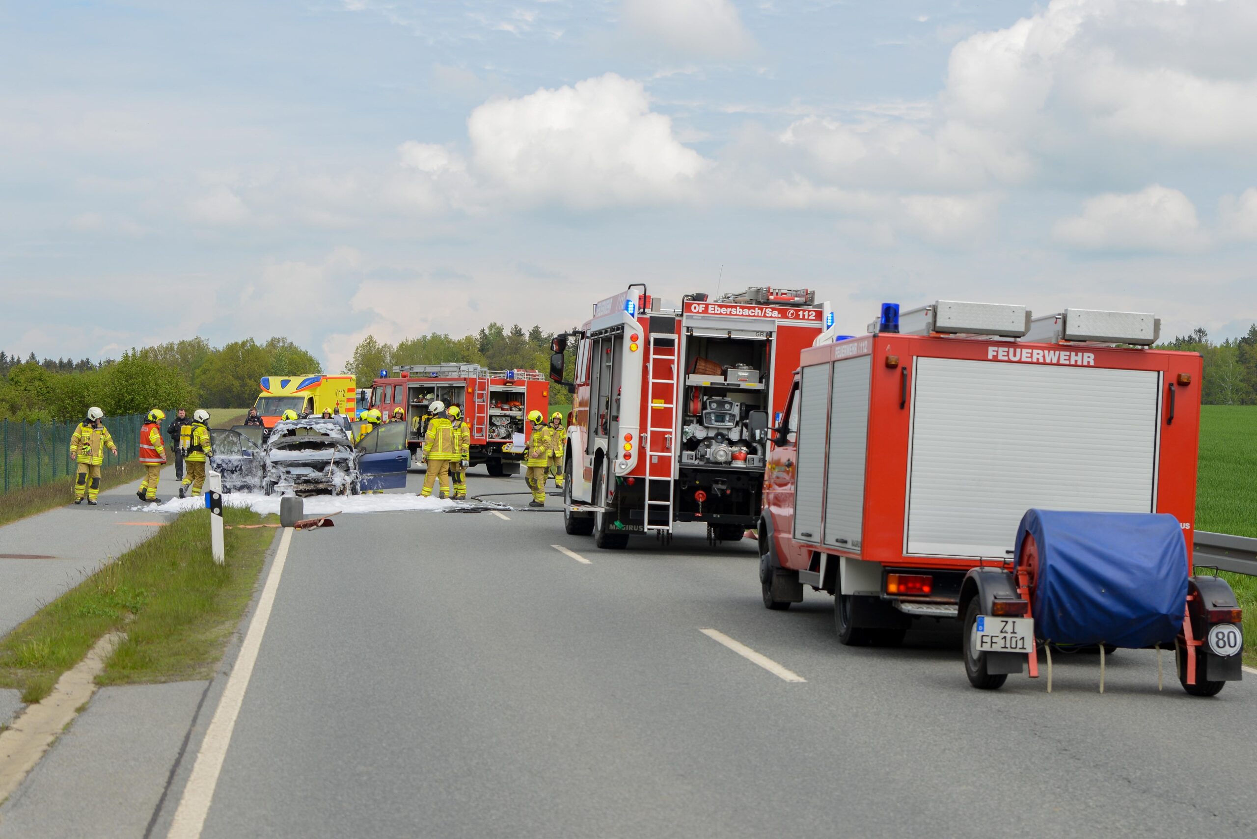 Ebersbach – Der Wagen eines Mannes ist am Sonntagmittag während der Fahrt in Flammen aufgegangen.
