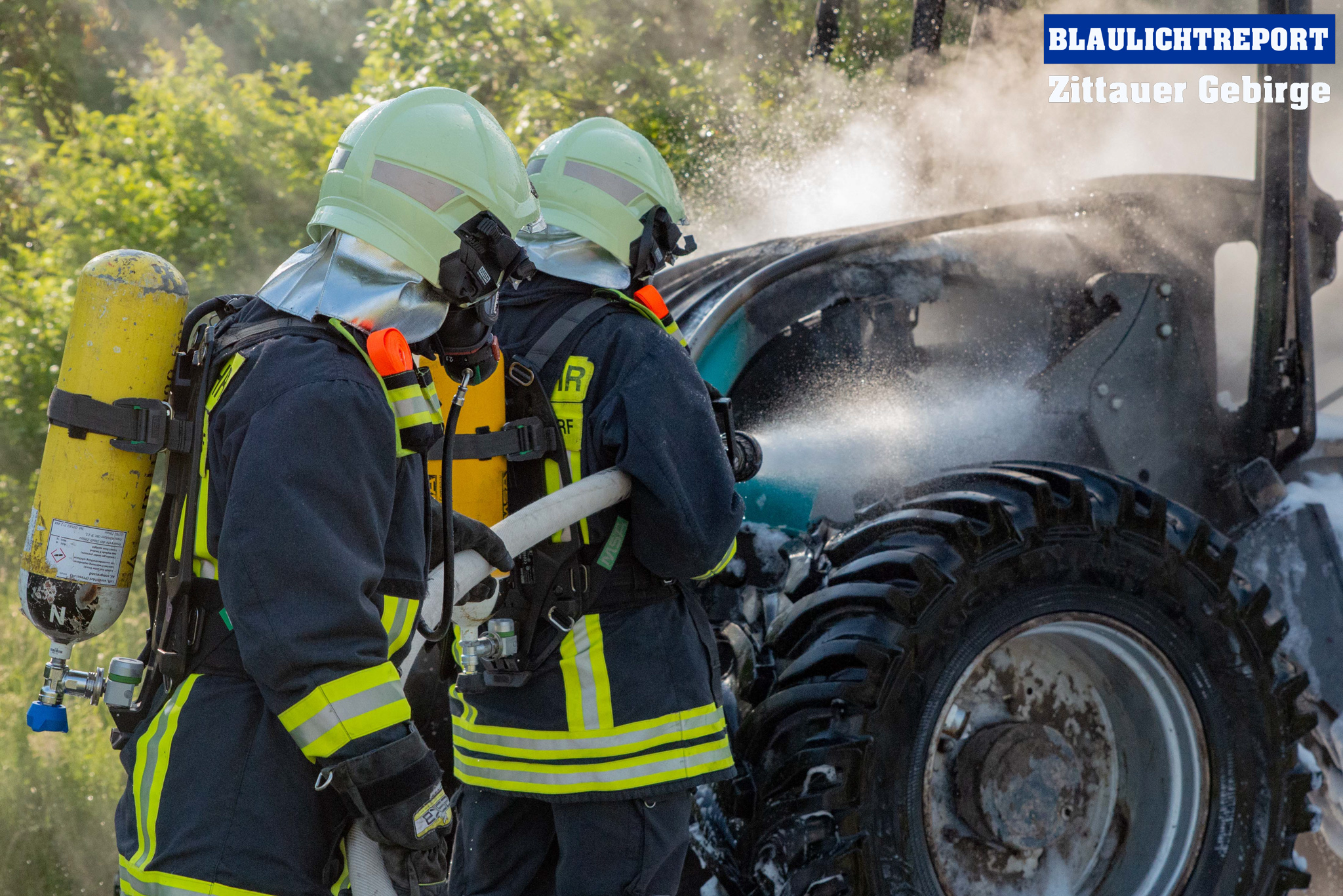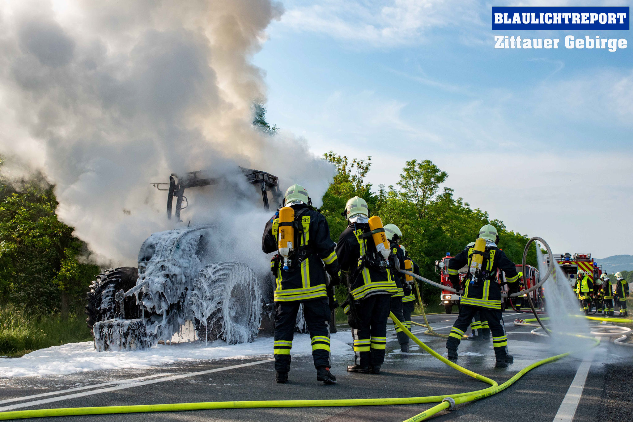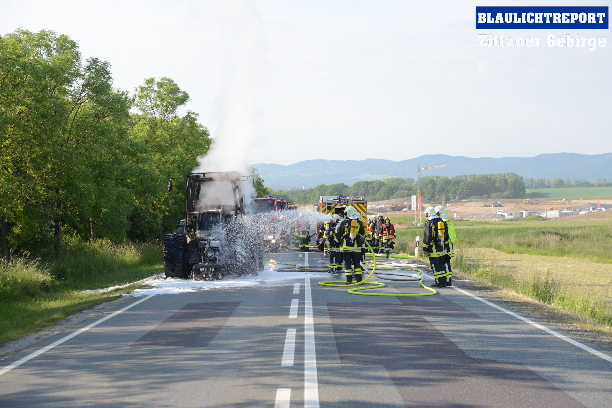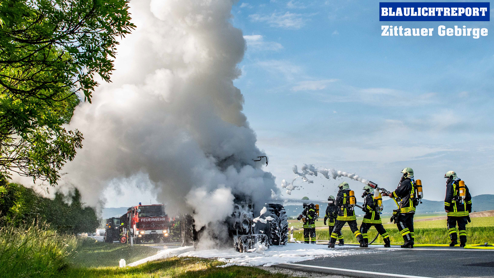 Oberseifersdorf – Am Montagmorgen ist ein Traktor auf der Bundesstraße 178 bei Oberseifersdorf in Flammen aufgegangen. Kurz vor 7.30 erhielt die Leitstelle Ostsachsen einen Notruf, bei dem der Vollbrand eines Treckers auf der Bundesstraße 178 mitgeteilt wurde. Unter dem Stichwort B2 alarmierte die Leitstelle die Ortswehren Oberseifersdorf, Eckartsberg und Mittelherwigsdorf zur Einsatzstelle. Die Rauchsäule war weit zu sehen – Anfahrt auf Sicht. Der Fahrer des Treckers, der in Richtung Großhennersdorf unterwegs war, hatte diesen abgestellt und sich in Sicherheit gebracht, als er den Brand bemerkte. Die Einsatzkräfte gingen unter schwerem Atemschutz mit einem C-Rohr und zwei Schaumrohren zu Brandbekämpfung vor. Die Bundesstraße musste für den gesamten Einsatz voll gesperrt werden.