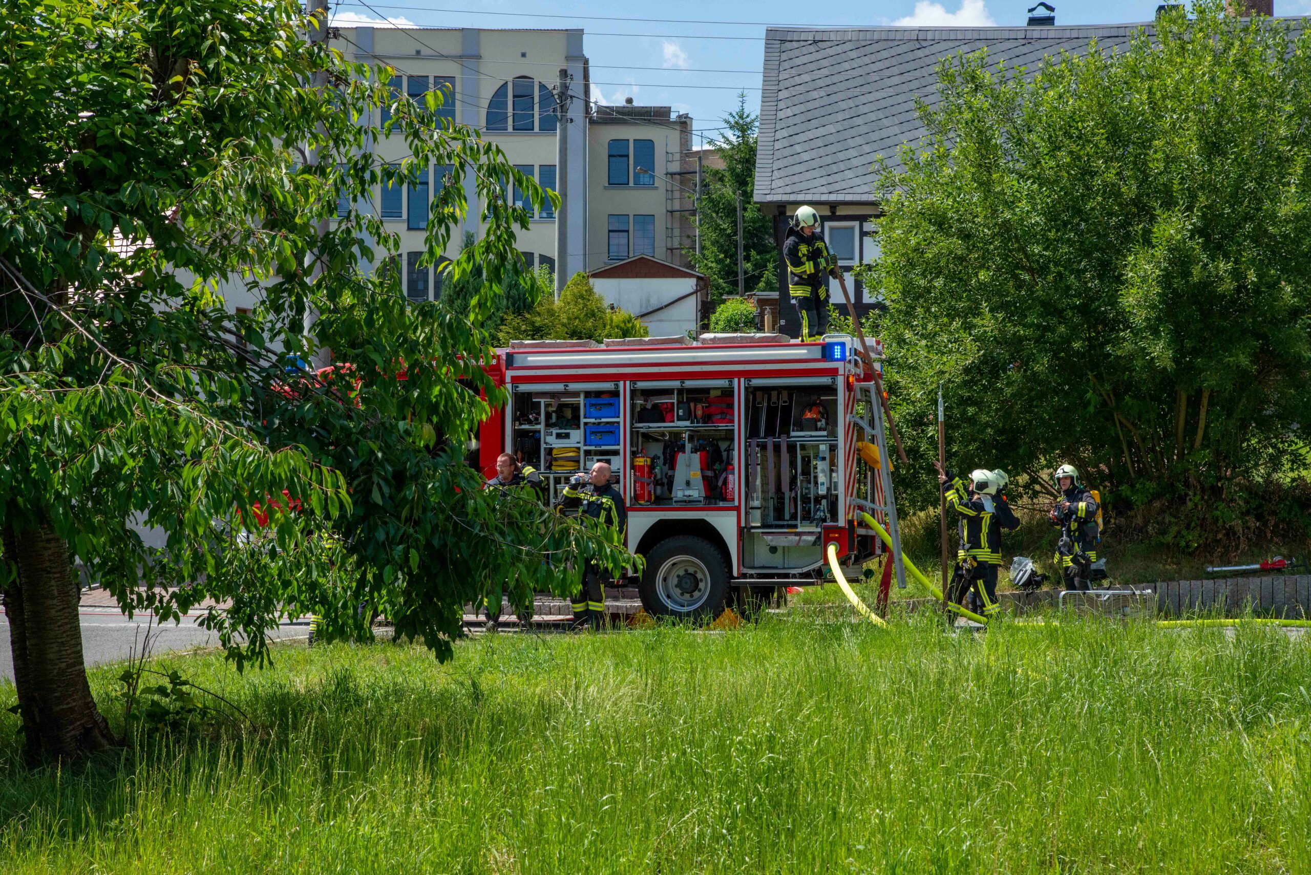 Insgesamt kamen 10 Atemschutzgeräteträger zum Einsatz. Der Gerätewagen Atemschutz der Feuerwehr Zittau war wegen der unklaren Lage angefordert- und in Bereitstellung gebracht worden, um im Bedarfsfall auf weitere Ressourcen zurückgreifen zu können.