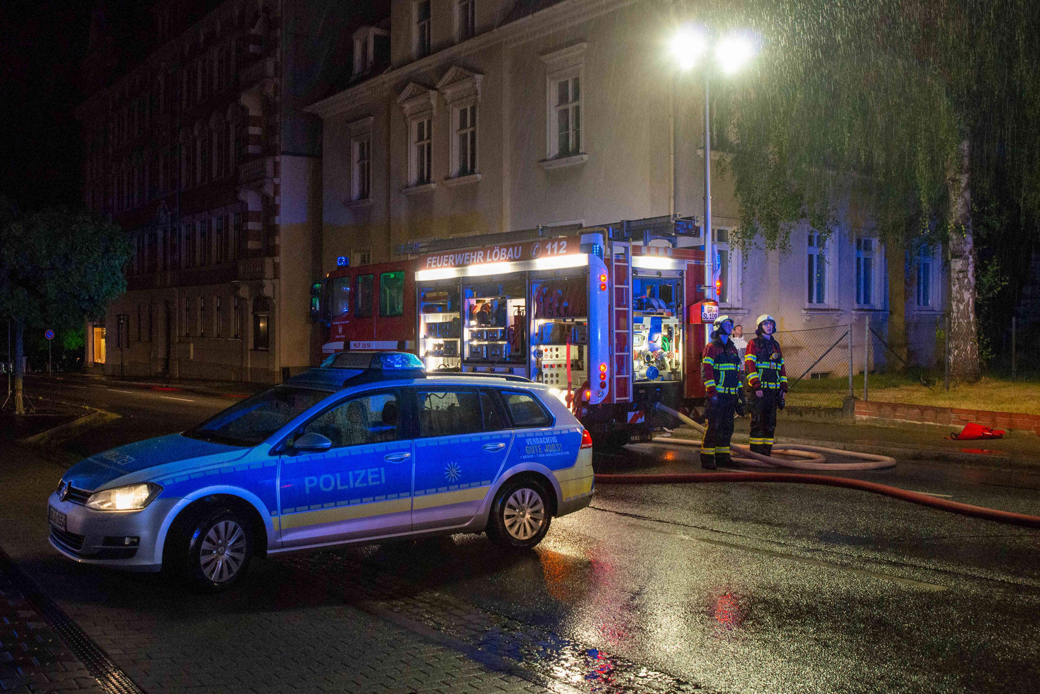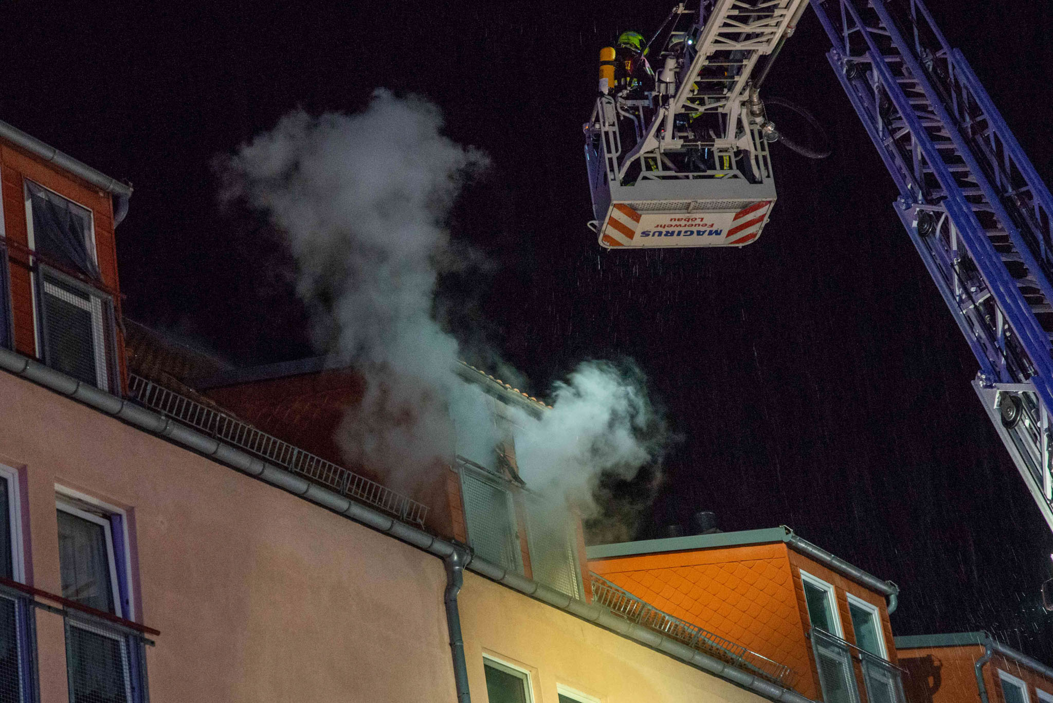 Löbau – Am späten Mittwochabend sind Feuerwehr, Rettungsdienst und Polizei zu einem Brand in einem Gebäude in der Löbauer Sachsenstraße alarmiert worden. Aus bislang ungeklärter Ursache kam es dort zu einem Brand in einer Wohnung eines Mehrfamilienhauses an der Sachsenstraße, indem sich eine 36- jährige und ein 70- Jähriger aufhielten. Beim Eintreffen der ersten Einsatzkräfte konnte aus dem Fenster der Wohnung im Dachbereich eine starke Rauchentwicklung wahrgenommen werden. Im Verlauf der Einsatzmaßnahmen kam es zu einer Durchzündung, die dazu führte, dass Flammen aus dem Fenster schlugen. Wie die Polizei mitteilte, wurden 21 Bewohner evakuiert und zwei verletzt. Durch den Brand und die Löscharbeiten ist das Haus zunächst nicht bewohnbar. 17 Personen kamen zunächst in der Messehalle unter. Der Brand und die Nachlöscharbeiten, für die das Dach stellenweise geöffnet werden musste, waren gegen 01.30 Uhr beendet. Ein Brandursachenermittler wird im Laude des Donnerstags zum Einsatz kommen. Neben 71 Kameraden aus fünf Ortswehren kam die Schnelleinsatzgruppe (SEG) des DRK mit 11 Kameraden zum Einsatz.