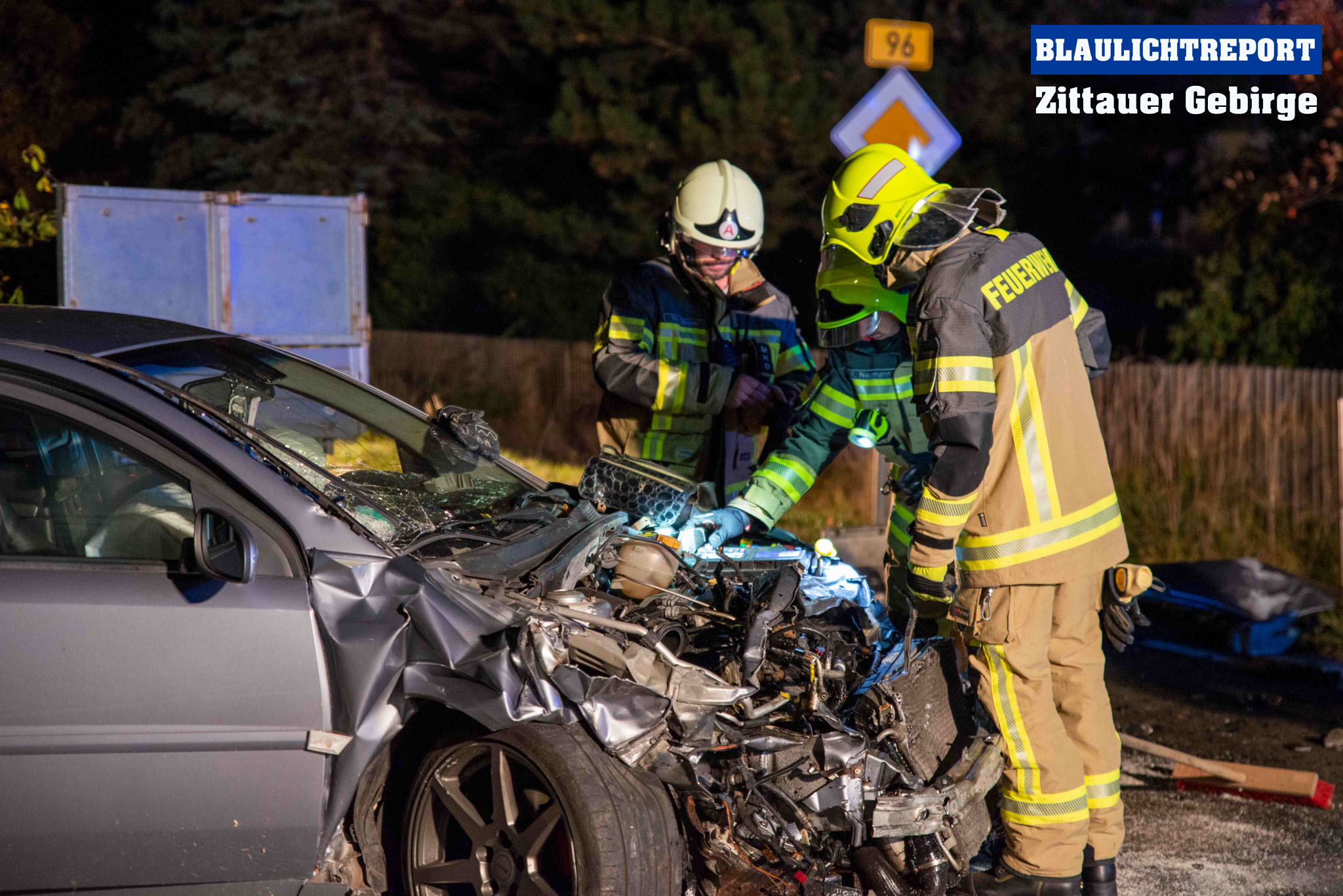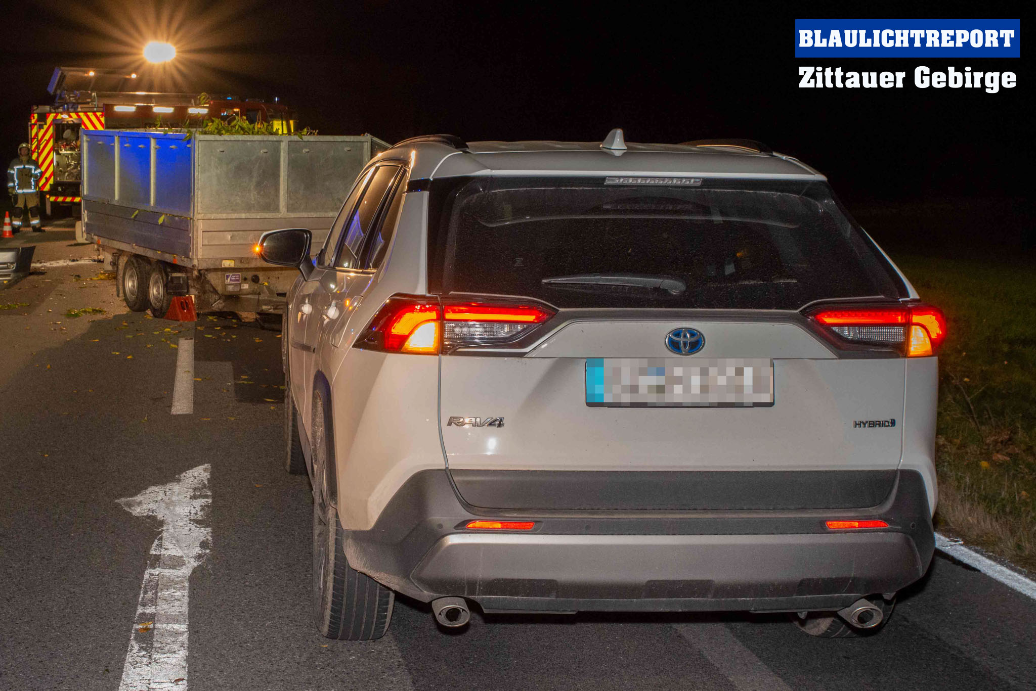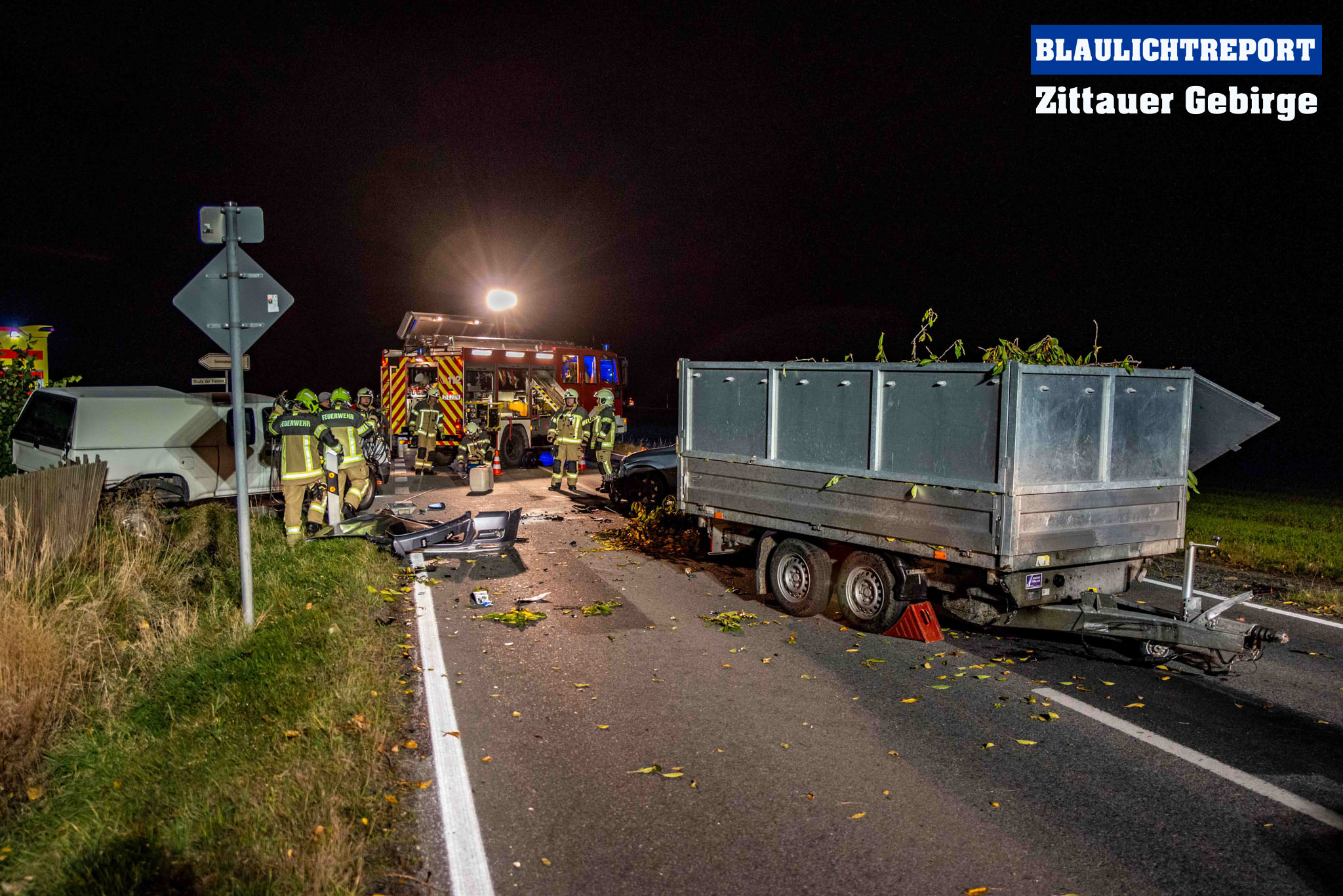 Mittelherwigsdorf – Am späten Donnerstagnachmittag ereignete sich auf der Bundesstraße 96 in Mittelherwigsdorf ein Verkehrsunfall, bei dem insgesamt 3 Fahrzeuge beteiligt gewesen sind. Wie die Polizei bereits mitteilte, fuhr der 36- jähriger Fahrer eines Toyotas mit seinem Fahrzeuggespann auf der Bundesstraße in Richtung Zittau. Im Verlauf beabsichtigte er nach links in die Straße der Pioniere einzubiegen. Hierbei missachtete er offenbar den Vorrang eines entgegenkommenden Opel. In der Folge krachte der Opel in das Fahrzeuggespann, welches durch die Kollision auseinandergerissen wurde. Während der Anhänger nach einer Kollision mit einem dritten Fahrzeug auf der Bundesstraße zum Stehen kam, landete das Zugfahrzeug im Zaun eines Grundstücks. Feuerwehr, Polizei und Rettungsdienst eilten zum Unfallort. Während sich der Rettungsdienst um die Insassen kümmerte, sicherten die Feuerwehr die Unfallstelle, stellte den Brandschutz sicher, leuchtete die Unfallstelle aus und nahm ausgetretene Betriebsstoffe auf. Im Verlauf unterstützten die Kameraden bei der Beladung der verlorenen Ladung und der Beseitigung der Trümmerteile von der Fahrbahn. Die Bundesstraße 96 war für etwa 2 Stunden voll gesperrt. Den entstandenen Schaden beziffert die Polizei vorerst mit 50.000€.