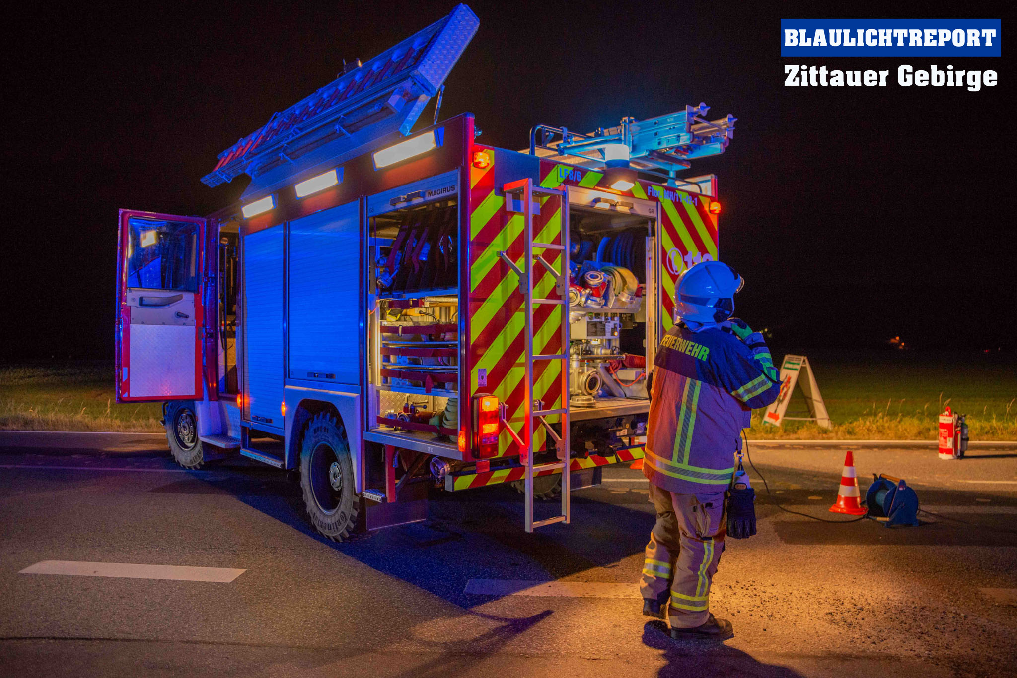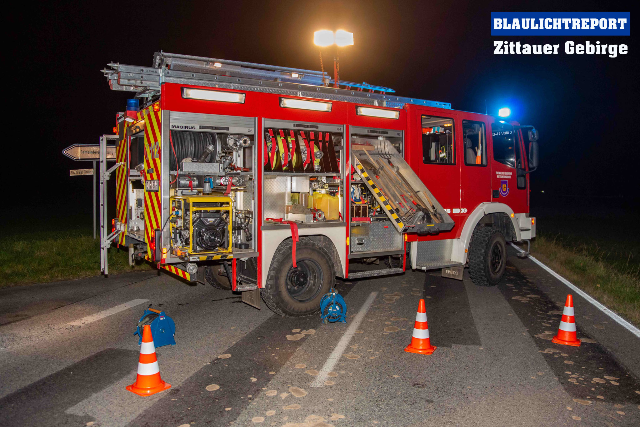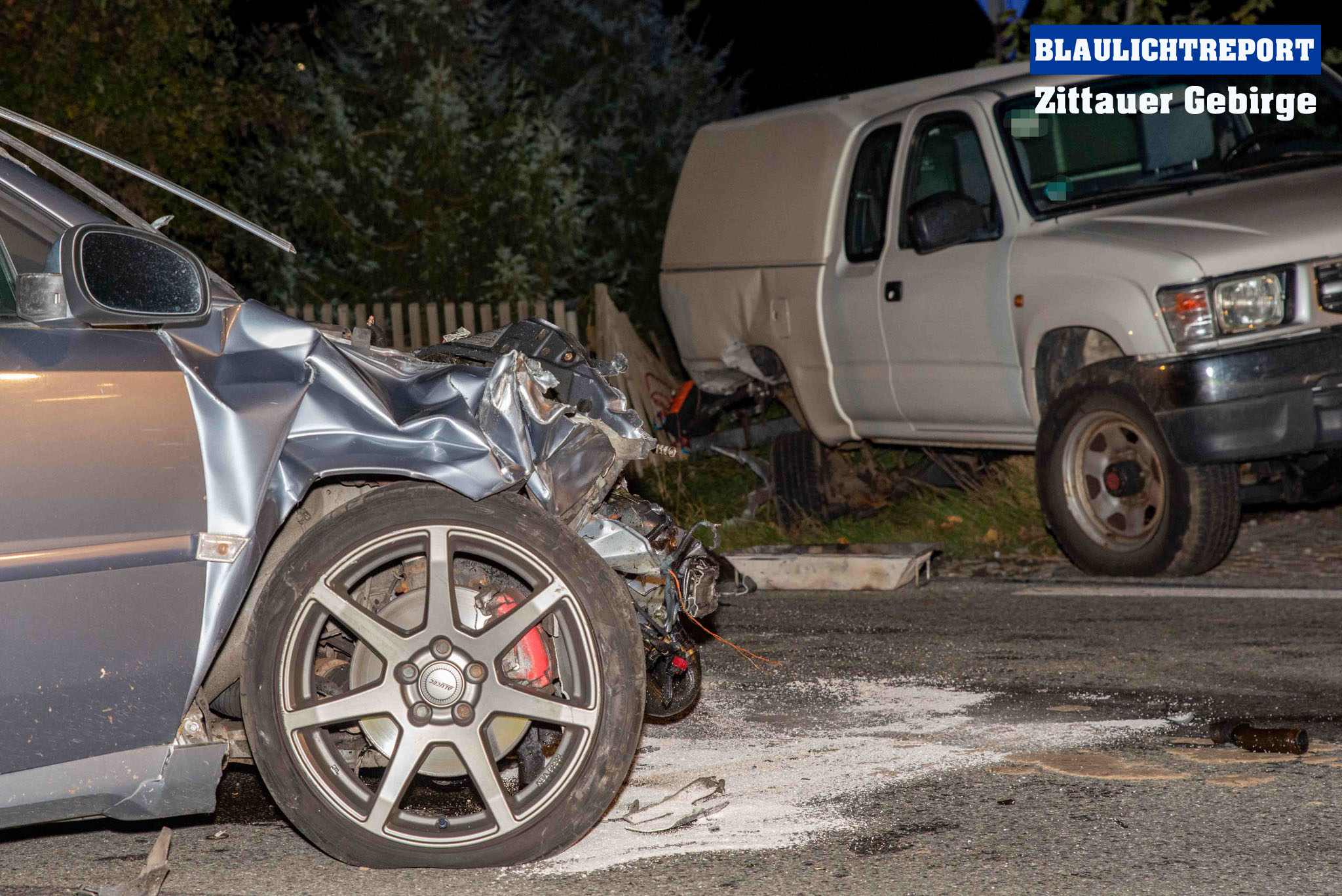 Mittelherwigsdorf – Am späten Donnerstagnachmittag ereignete sich auf der Bundesstraße 96 in Mittelherwigsdorf ein Verkehrsunfall, bei dem insgesamt 3 Fahrzeuge beteiligt gewesen sind. Wie die Polizei bereits mitteilte, fuhr der 36- jähriger Fahrer eines Toyotas mit seinem Fahrzeuggespann auf der Bundesstraße in Richtung Zittau. Im Verlauf beabsichtigte er nach links in die Straße der Pioniere einzubiegen. Hierbei missachtete er offenbar den Vorrang eines entgegenkommenden Opel. In der Folge krachte der Opel in das Fahrzeuggespann, welches durch die Kollision auseinandergerissen wurde. Während der Anhänger nach einer Kollision mit einem dritten Fahrzeug auf der Bundesstraße zum Stehen kam, landete das Zugfahrzeug im Zaun eines Grundstücks. Feuerwehr, Polizei und Rettungsdienst eilten zum Unfallort. Während sich der Rettungsdienst um die Insassen kümmerte, sicherten die Feuerwehr die Unfallstelle, stellte den Brandschutz sicher, leuchtete die Unfallstelle aus und nahm ausgetretene Betriebsstoffe auf. Im Verlauf unterstützten die Kameraden bei der Beladung der verlorenen Ladung und der Beseitigung der Trümmerteile von der Fahrbahn. Die Bundesstraße 96 war für etwa 2 Stunden voll gesperrt. Den entstandenen Schaden beziffert die Polizei vorerst mit 50.000€.