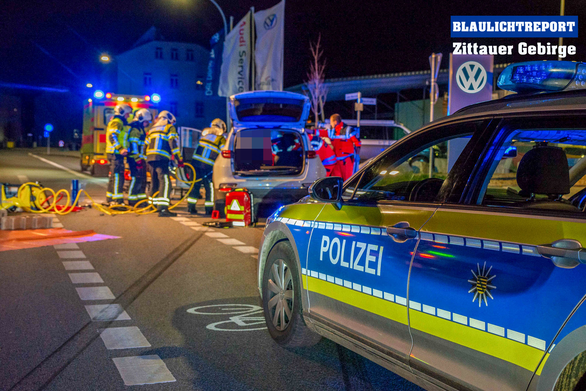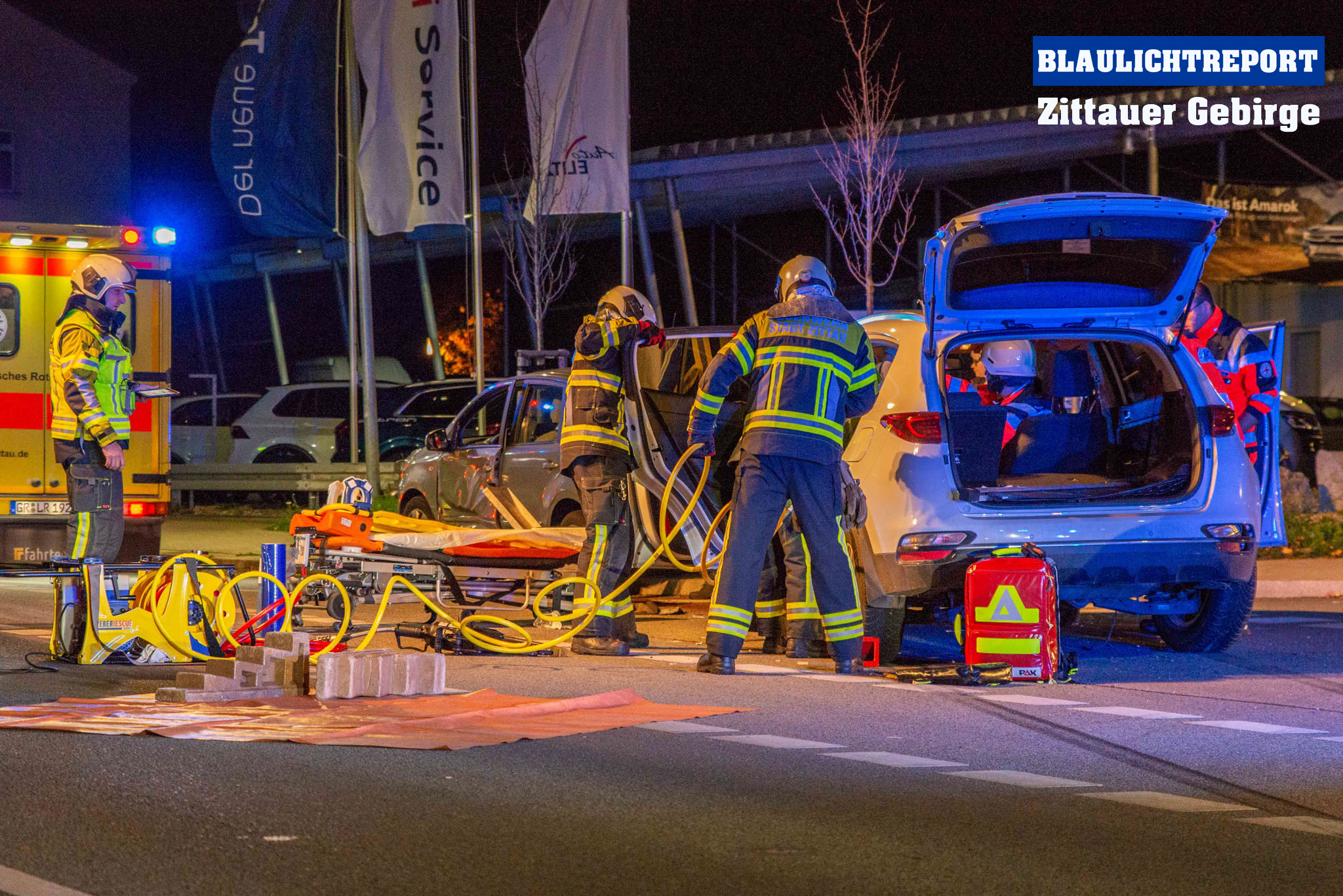 Zittau – Zu einem schweren Verkehrsunfall ist es am Dienstagabend in Zittau auf der Bundesstraße 96 gekommen. Wie die Polizei mitteilt, wollte ein 81- jähriger Ford-Fahrer auf der Äußeren Weberstraße fahrend, von der rechten Spur der Doppelspurigen Einbahnstraße nach links in die Tongasse einbiegen. Die auf der linken Spur fahrenden Fahrzeuge übersah er dabei offenbar und kollidierte in der Folge mit diesen. Feuerwehr, Rettungsdienst und Polizei eilten zur Unfallstelle. Wie der Einsatzleiter der Feuerwehr mitteilte, entschied man sich im Verlauf der Einsatzmaßnahmen, den 38- jährigen Kia-Fahrer aus medizinischen Gründen per technischer Rettung aus dem Fahrzeug zu befreien. Dieser kam, wie die Polizei mitteilte, schwer verletzt in ein Klinikum. Auch der 63- jährige Lenker aus dem Nissan kam zur ambulanten Behandlung mit dem Rettungsdienst in ein Klinikum. Für die Dauer der Rettungsmaßnahmen bis hin zur Unfallaufnahme und Bergung der Fahrzeuge musste die Bundesstraße voll gesperrt werden.