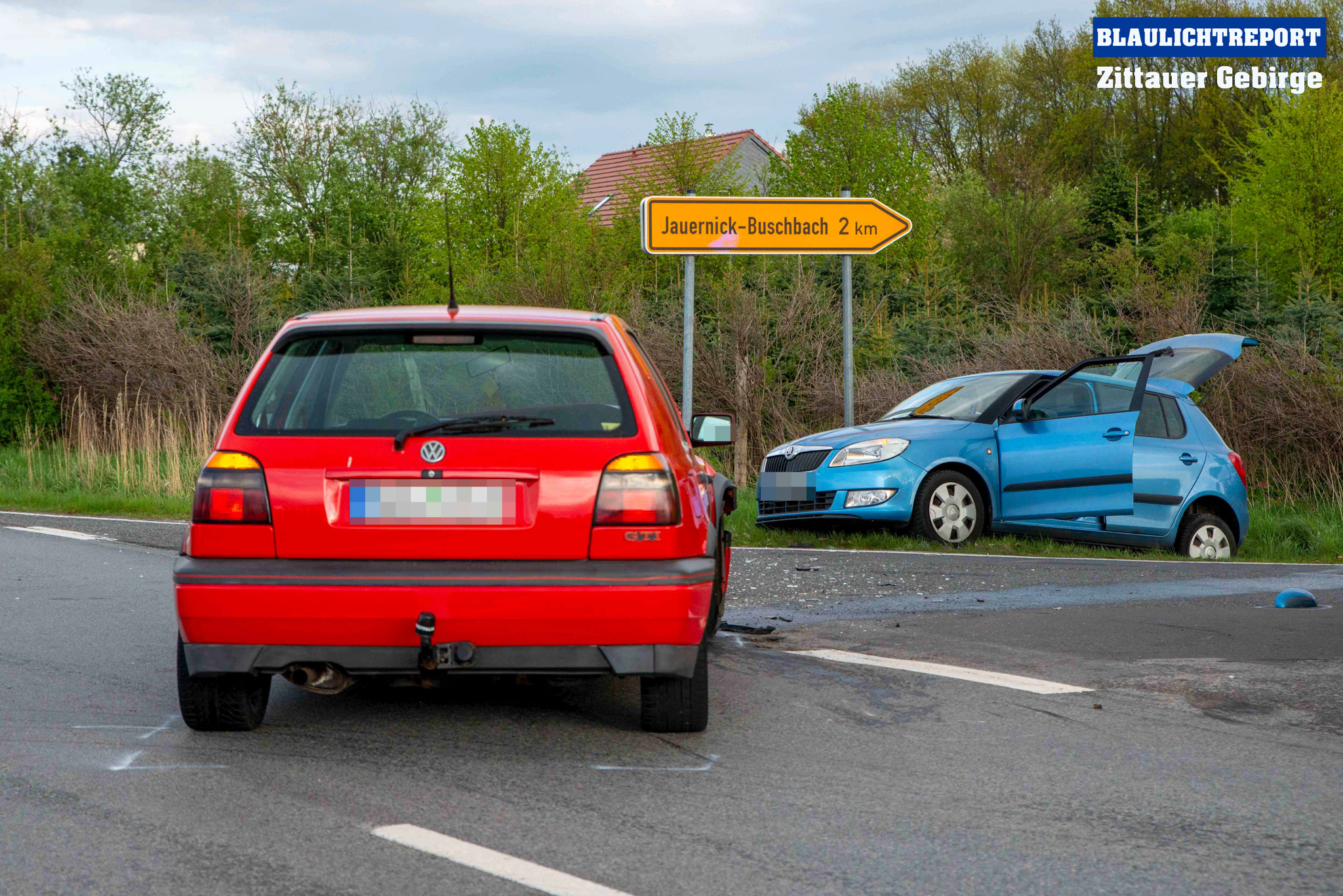 Ersten Erkenntnissen nach befuhr eine VW-Fahrerin die K8403 und hielt zunächst an der Kreuzung zur S111 an. Als sie ihre Fahrt fortsetzen wollte, übersah sie offenbar einen Skoda, der auf der Staatsstraße aus Reichenbach in Richtung Görlitz unterwegs war. Folglich stießen beide Fahrzeuge im Kreuzungsbereich zusammen, wobei der Skoda von der Fahrbahn geschleudert wurde. Die Feuerwehren aus Pfaffendorf und Jauernick-Buschbach rückten an. Die Kameraden sicherten die Unfallstelle, stellten den Brandschutz sicher und nahmen ausgetretene Betriebsstoffe auf.