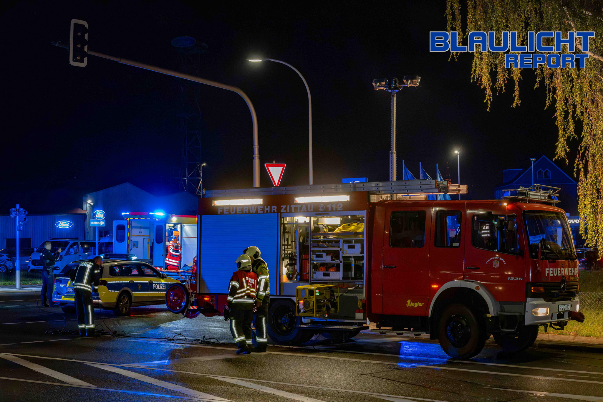 Es war kurz vor 23:00 Uhr, als mehrere Fahrzeuge die Bundesstraße 96 stadteinwärts in Richtung Zentrum befuhren. Wie die Polizei auf Nachfrage mitteilte, versuchte der Fahrer des VW eine Skoda-Fahrerin zu einem Autorennen anzuregen. Obwohl diese, wie erste Befragungen ergeben haben, nicht darauf Einstieg, hinderte das den Fahranfänger offenbar nicht, seine Fahrt auf vermutlich halsbrecherische Art in Richtung Zentrum durchzuführen. Auf der Äußeren Weberstraße endete die Fahrt dann an der Kreuzung Goldbachstraße, nachdem der Fahrer die Kontrolle über sein Fahrzeug verlor. Er kam von der Straße ab, kollidierte mit einer Lichtzeichenanlage, durchbrach eine Grundstücksumfriedung und überschlug sich mehrfach. Die Insassen des Skoda mussten alles mit ansehen. Unmittelbar nach dem Unfall wurde der Notruf abgesetzt, weshalb ein Rettungswagen und der Notarzt zum Ort des Geschehens eilten. Unter Berücksichtigung aller Umstände entschied sich der Rettungsdienst, die Feuerwehr zur patientengerechten Rettung hinzuzuziehen. Einsatzkräfte der hauptamtlichen Wachbereitschaft sowie der Freiwilligen Feuerwehr Innenstadt kamen hier zum Einsatz. In enger Abstimmung mit dem Rettungsdienst und dem Notarzt wurde der 18-jährige Fahrer aus dem Fahrzeug unter Einsatz von schwerem Rettungsgerät befreit. Für die Rettungsmaßnahmen war die Kreuzung voll gesperrt. Im weiteren Verlauf war die Straße stadteinwärts halbseitig befahrbar. Die Kreuzung blieb für die gesamte Dauer voll gesperrt. Die Polizei beziffert den Schaden vorerst mit etwa 25.000€.