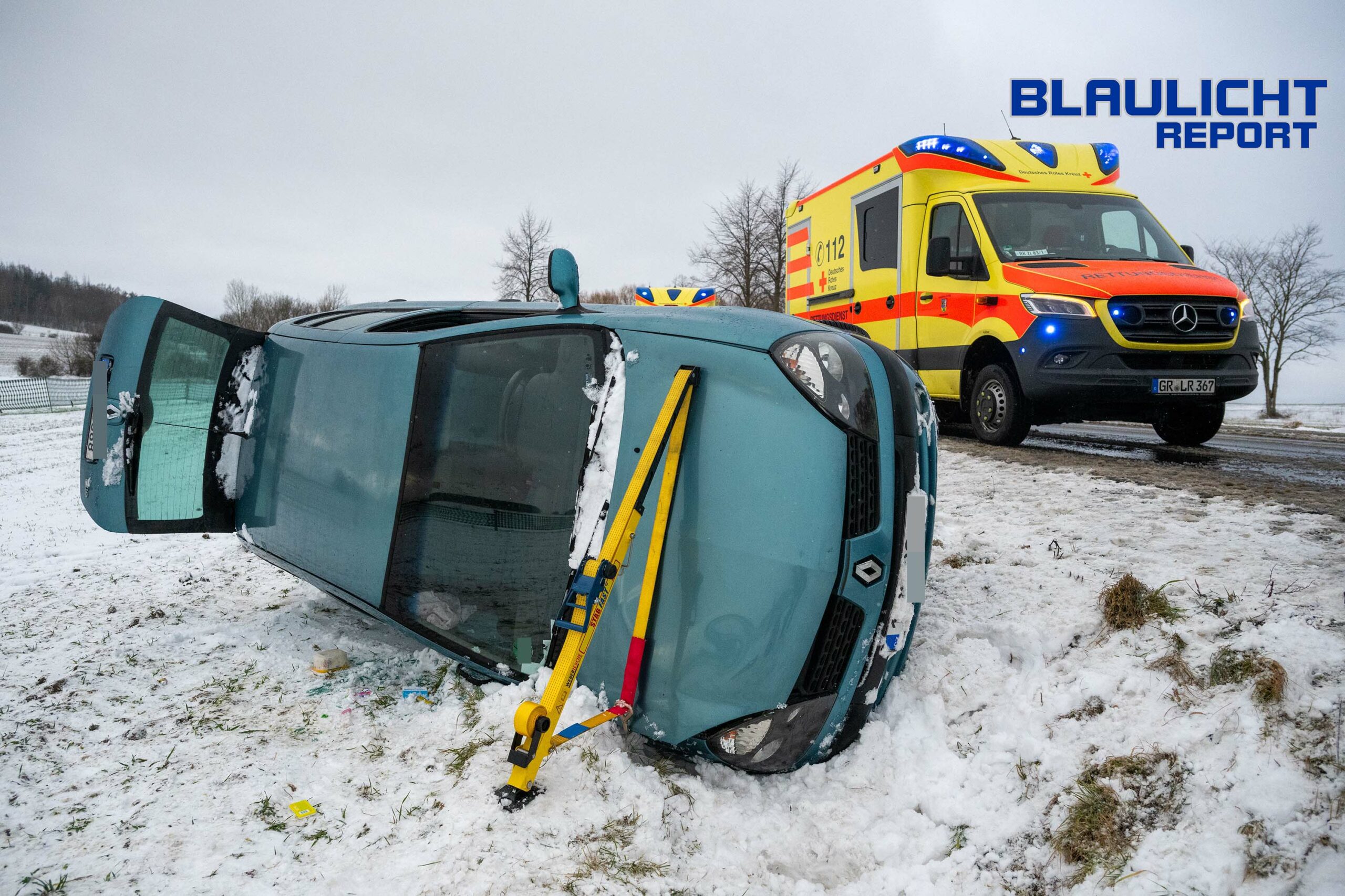 Bertsdorf-Hörnitz – Am Samstagvormittag ereignete sich auf der S 137 zwischen Großschönau und Bertsdorf ein Verkehrsunfall. Der 24-jährige Fahrer eines in Tschechien zugelassenen Renault befuhr die Straße in Richtung Zittau und kam ausgangs einer Linkskurve nach rechts von der Fahrbahn ab und blieb auf der Seite liegen. Es war gegen 10:15 Uhr, als der Rettungsdienst die Feuerwehren aus Bertsdorf-Hörnitz, Zittau und Großschönau sowie die Polizei und ein Rettungshubschrauber zum Unfallort alarmiert worden sind. Vor Ort eingetroffen, bestätigte sich die Lage insofern, dass es einen Verkehrsunfall gab, bei welchem das Fahrzeug auf der Seite zum Liegen gekommen ist und dieses nicht durch alle Personen selbstständig verlassen werden konnten. Dies war nicht der Deformierung des Fahrzeuges, sondern der Saitenlage geschuldet. Nachdem das Fahrzeug gegen Umfallen gesichert wurde, konnten die Insassen aus diesem befreit werden. Für die Dauer der Rettungsmaßnahmen kam es zur Vollsperrung der Ortsverbindungsstraße.