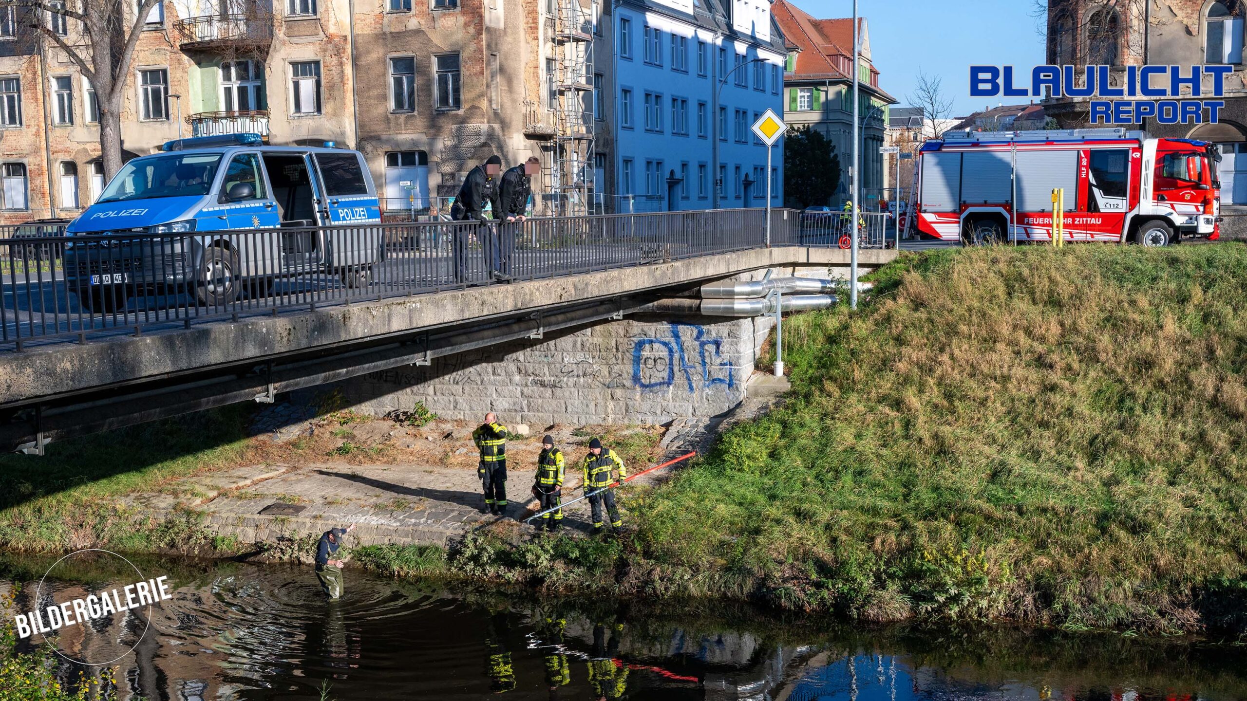 Mit einer Wathose und einer ordentlichen Portion Mut gegenüber kühlen Temperaturen stieg ein Feuerwehrmann in die Mandau, um die beiden Ausreißer einzufangen. Das Verkehrsschild wurde nach erfolgreicher Rettung direkt wieder aufgestellt – vermutlich erleichtert, endlich wieder festen Boden unter dem Bodenblech zu haben. Das Fahrrad hingegen musste erst von einer großzügigen Algen-Frisur befreit werden, bevor es zur Eigentumssicherung mitgenommen wurde.