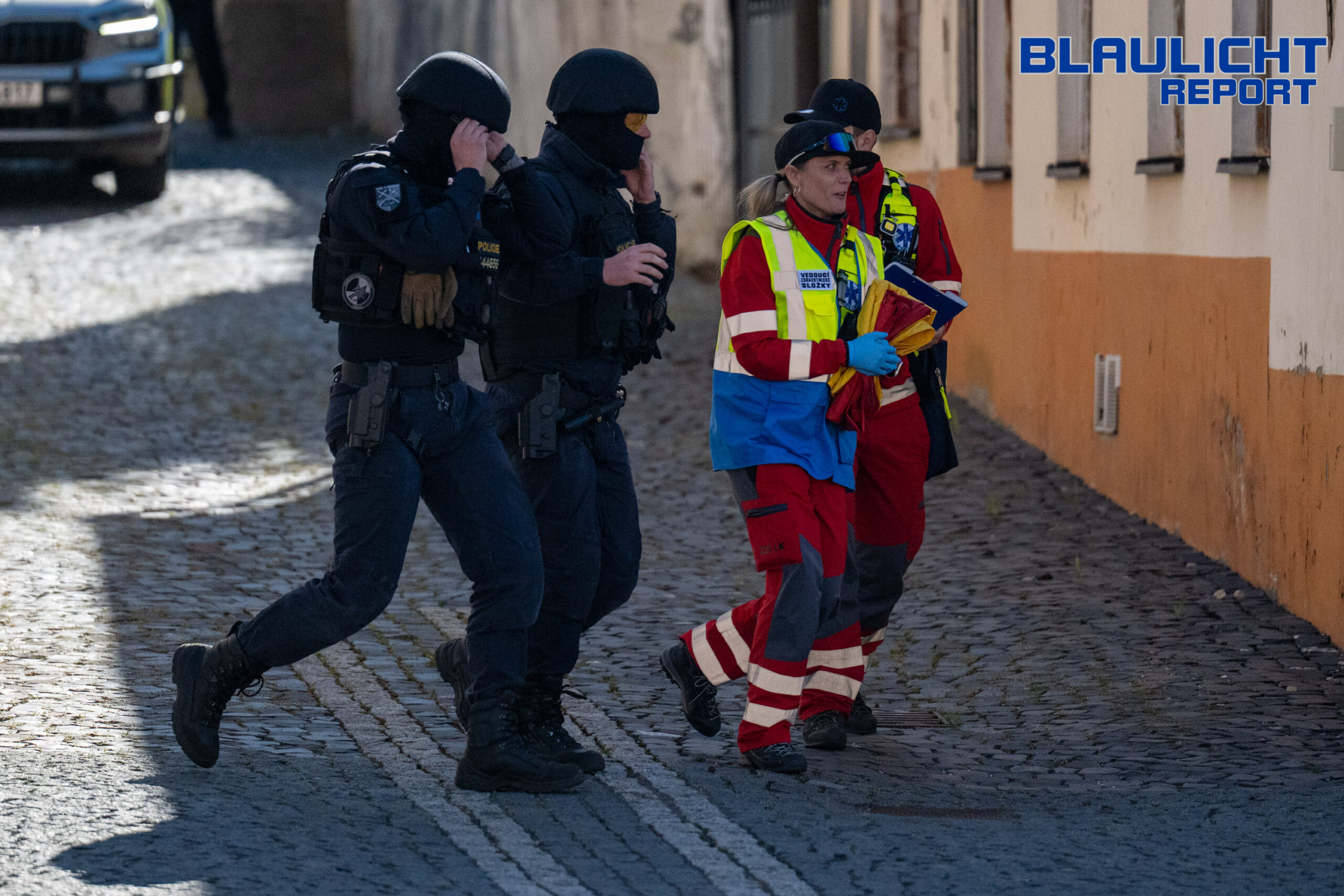 Simuliert wurde ein Amoklauf im Stadtamt. Einsatzkräfte rückten unter hohem Zeitdruck in das Gebäude vor, sicherten die Lage und begannen mit der Evakuierung verletzter Personen. Ziel der Übung war es, das koordinierte Vorgehen in einer Extremsituation zu trainieren und Abläufe unter möglichst realistischen Bedingungen zu erproben.
